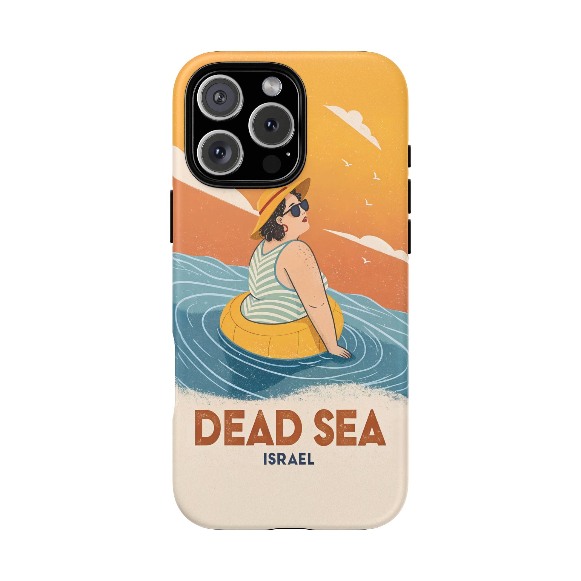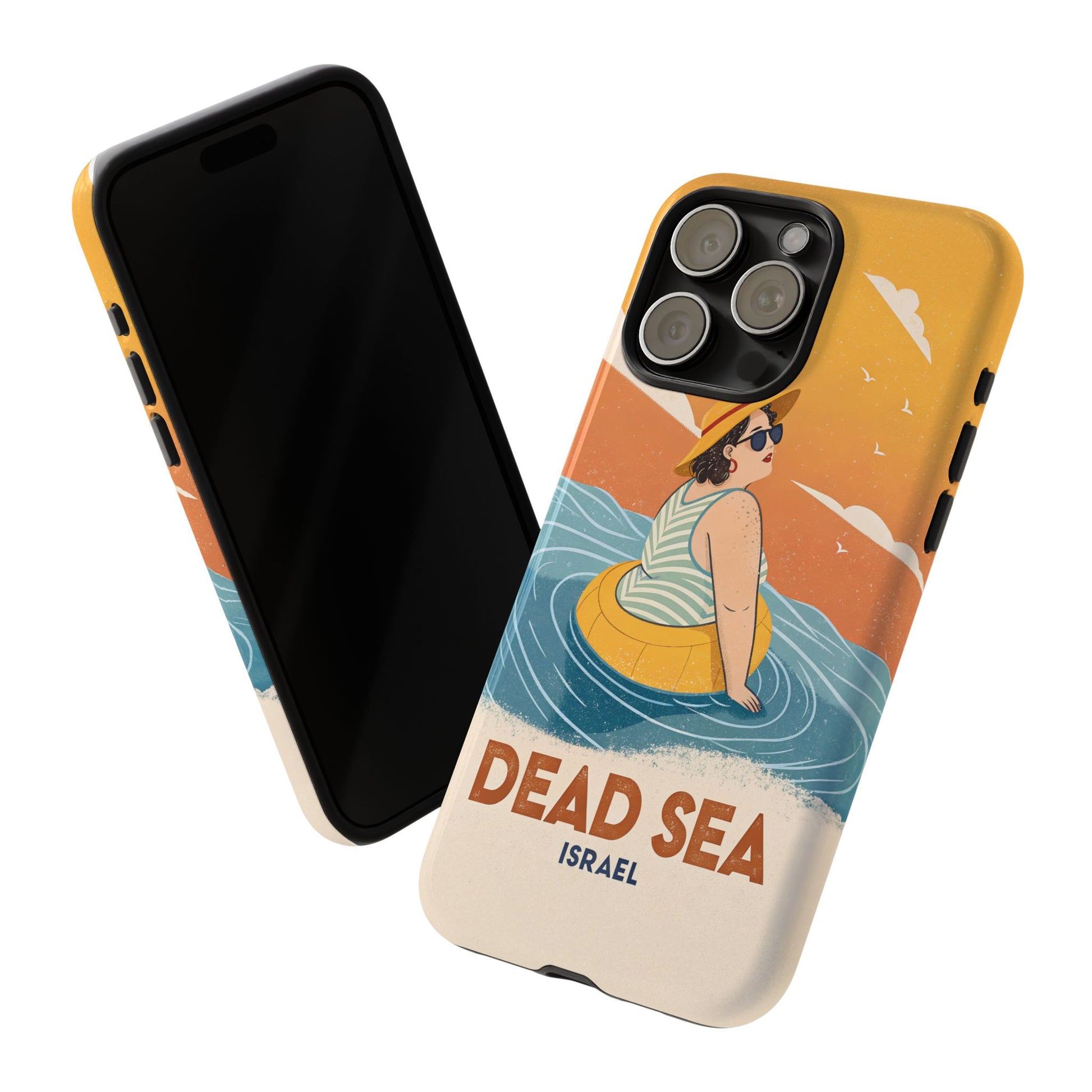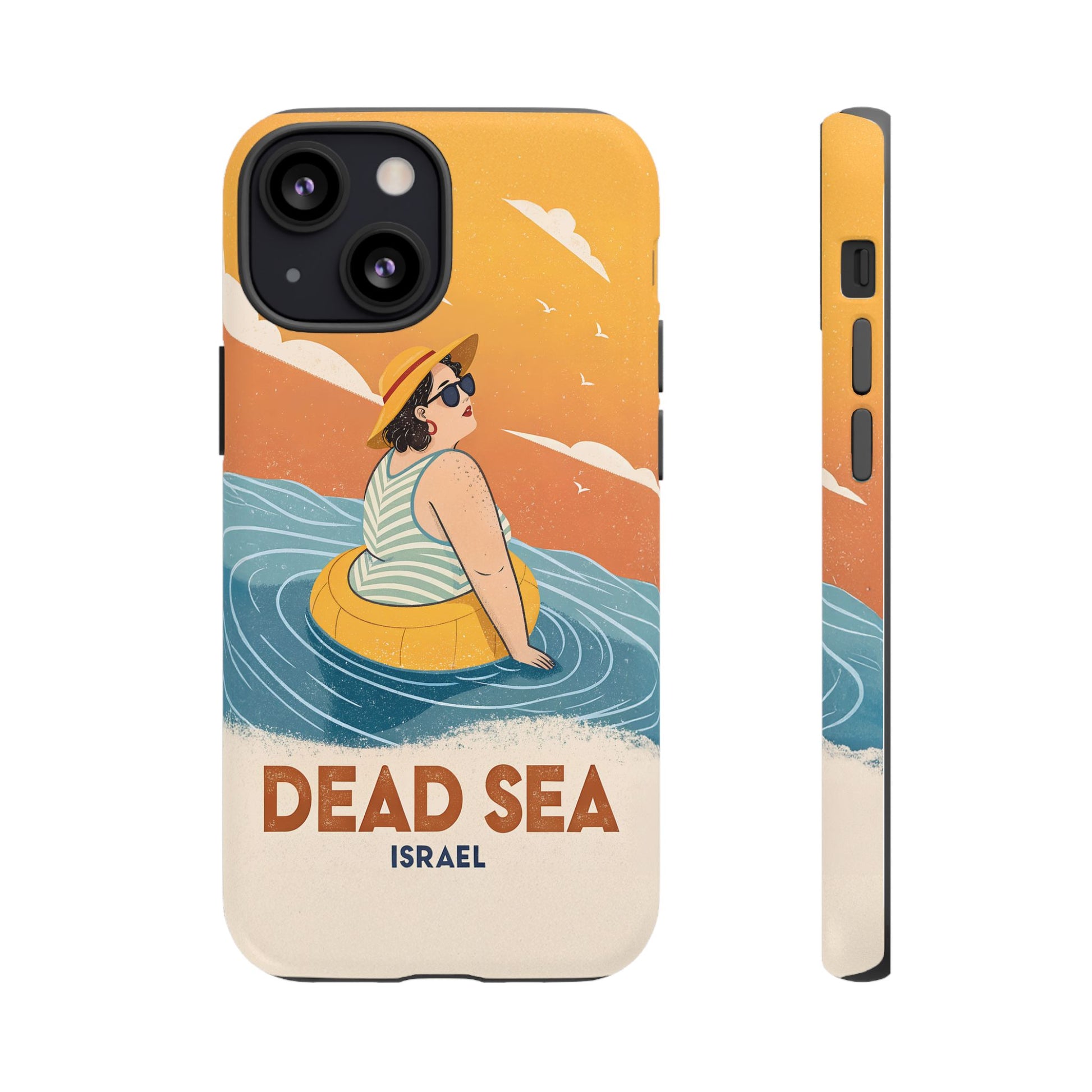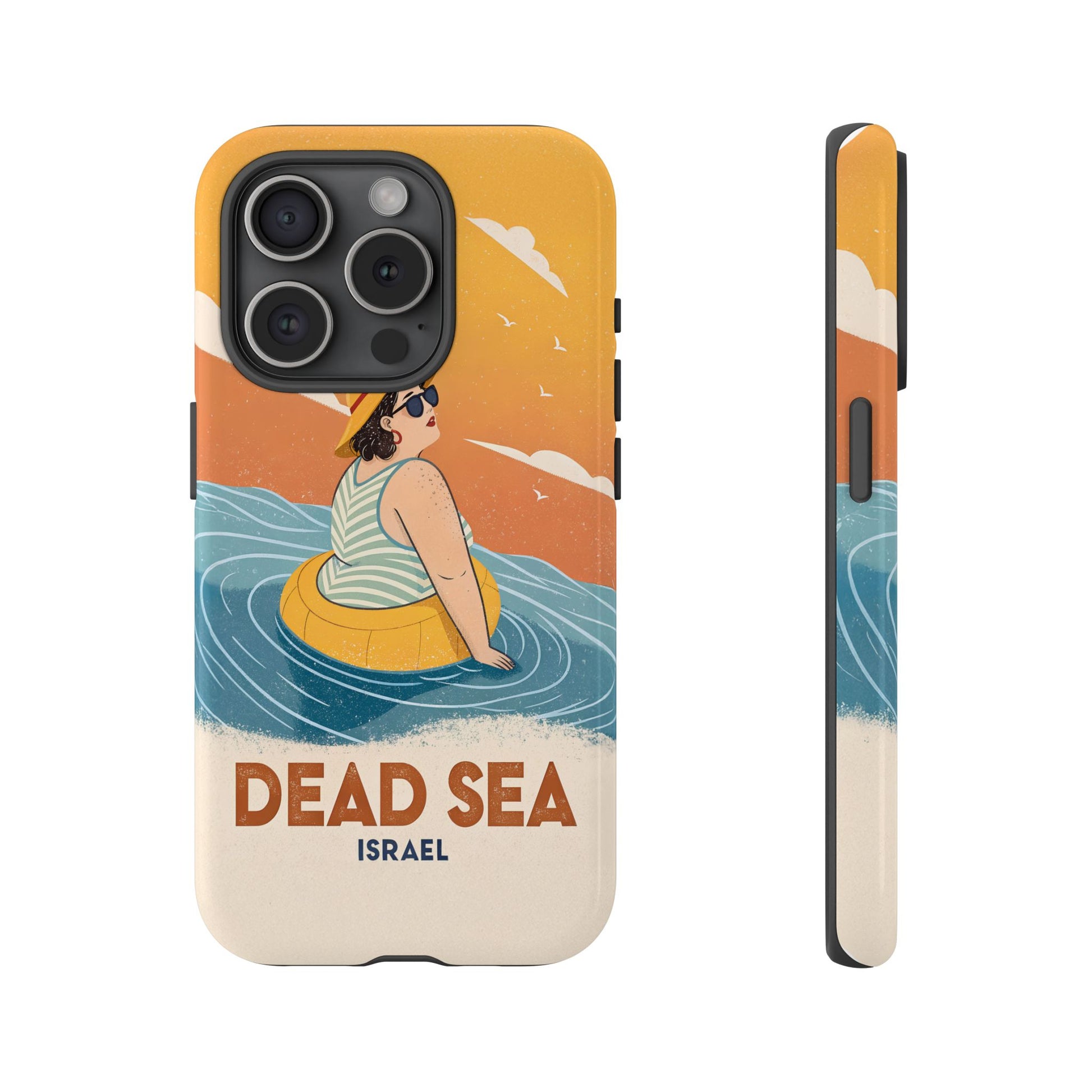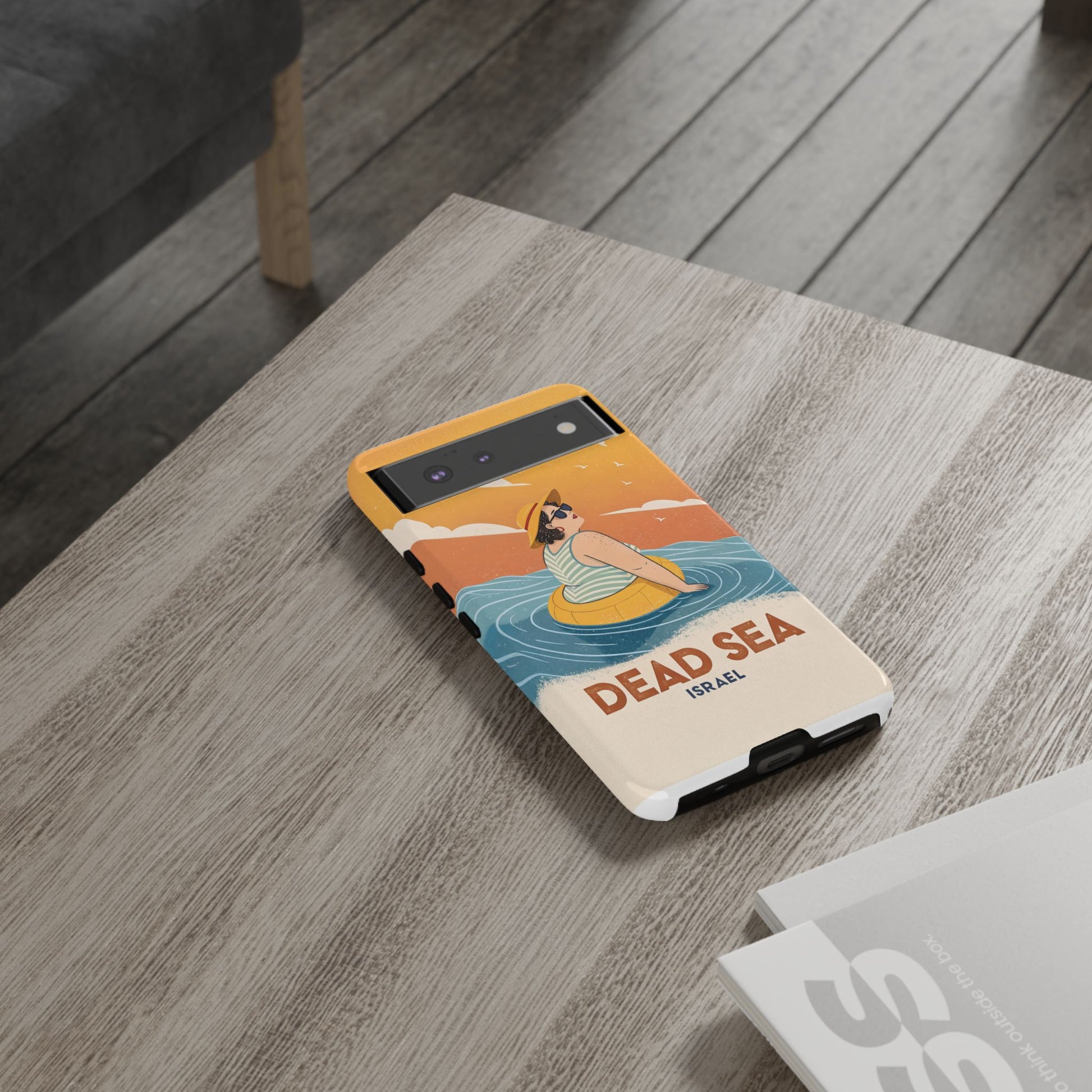 Ta med deg roen, magien og humoren fra Dødehavet med dette flotte retro-inspirerte mobildekselet. Designet viser en avslappet kvinne som flyter på det mineralrike vannet, omringet av myke blå bølger og en varm oransje himmel. Det kunstneriske uttrykket kombinerer vintage feriestemning med den ikoniske opplevelsen av å sveve uten anstrengelse på verdens salteste sjø.