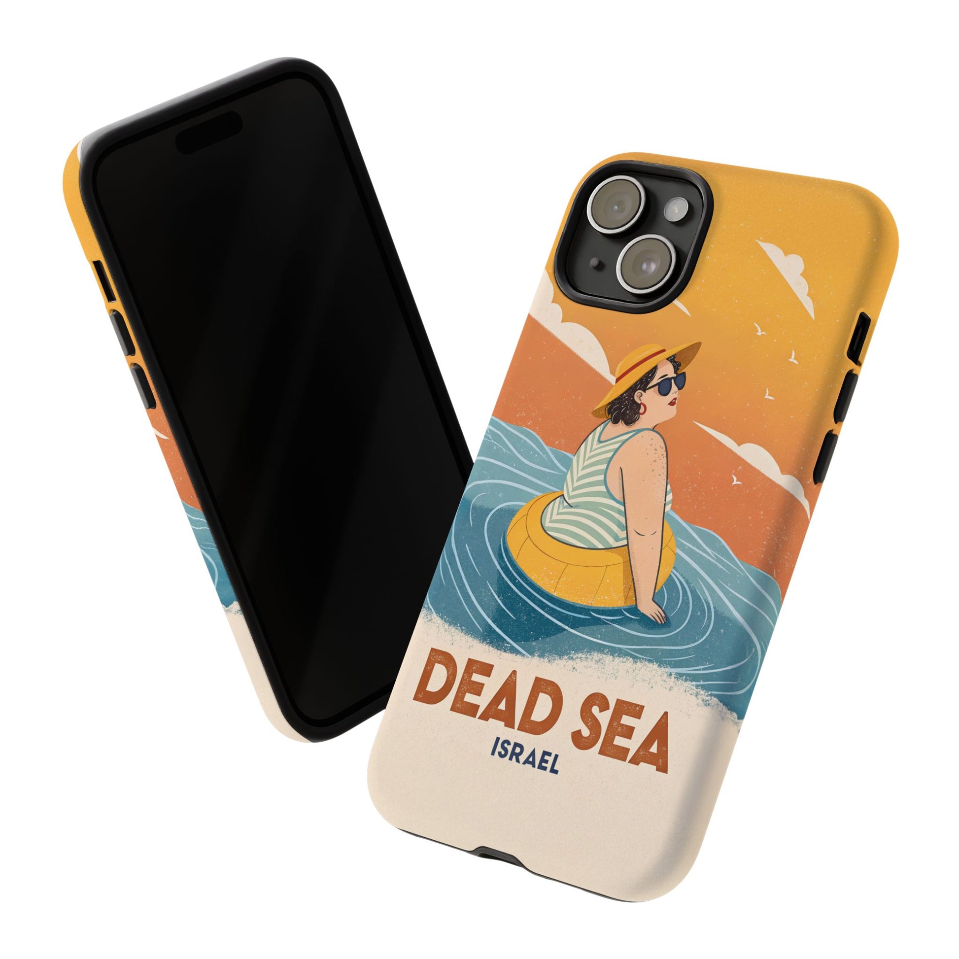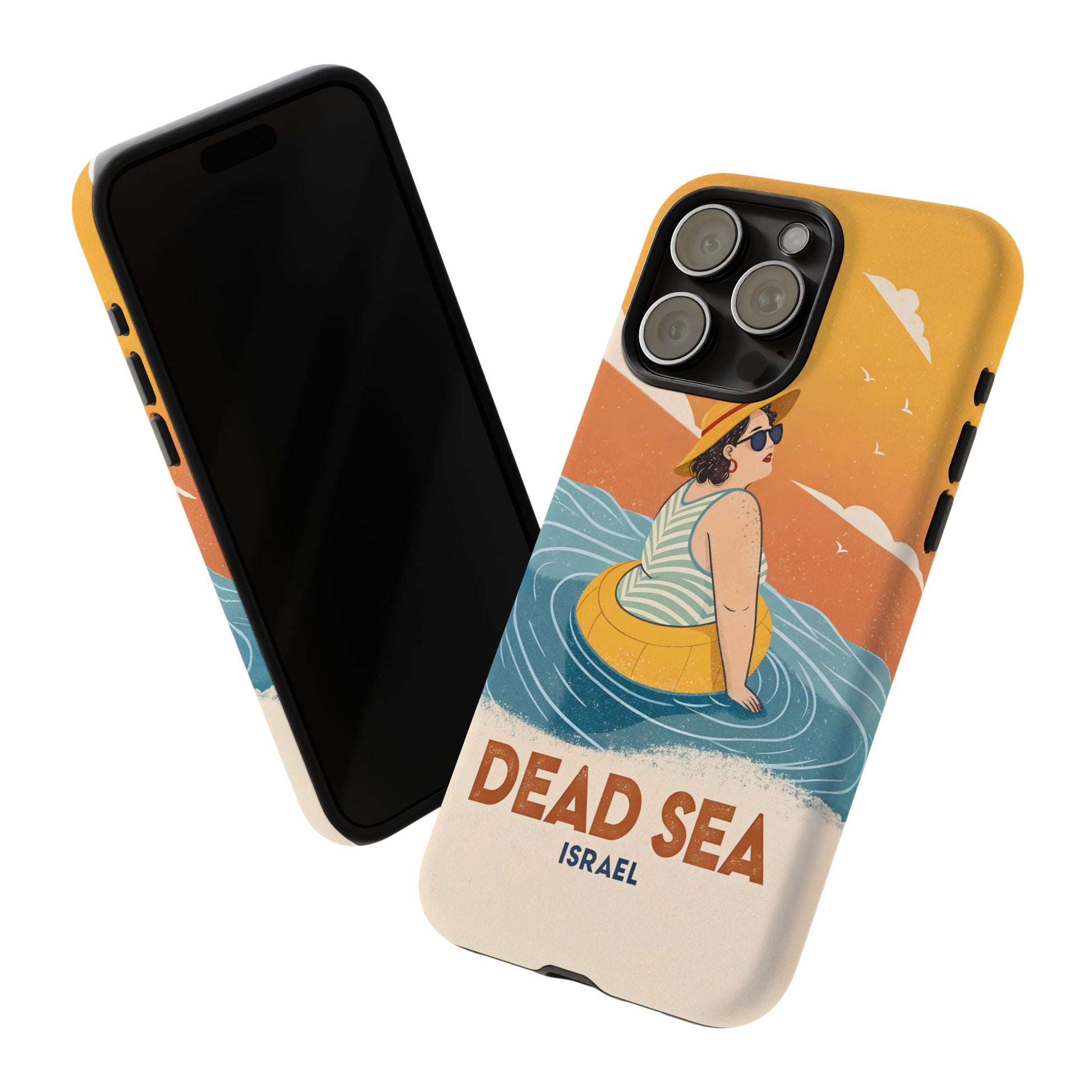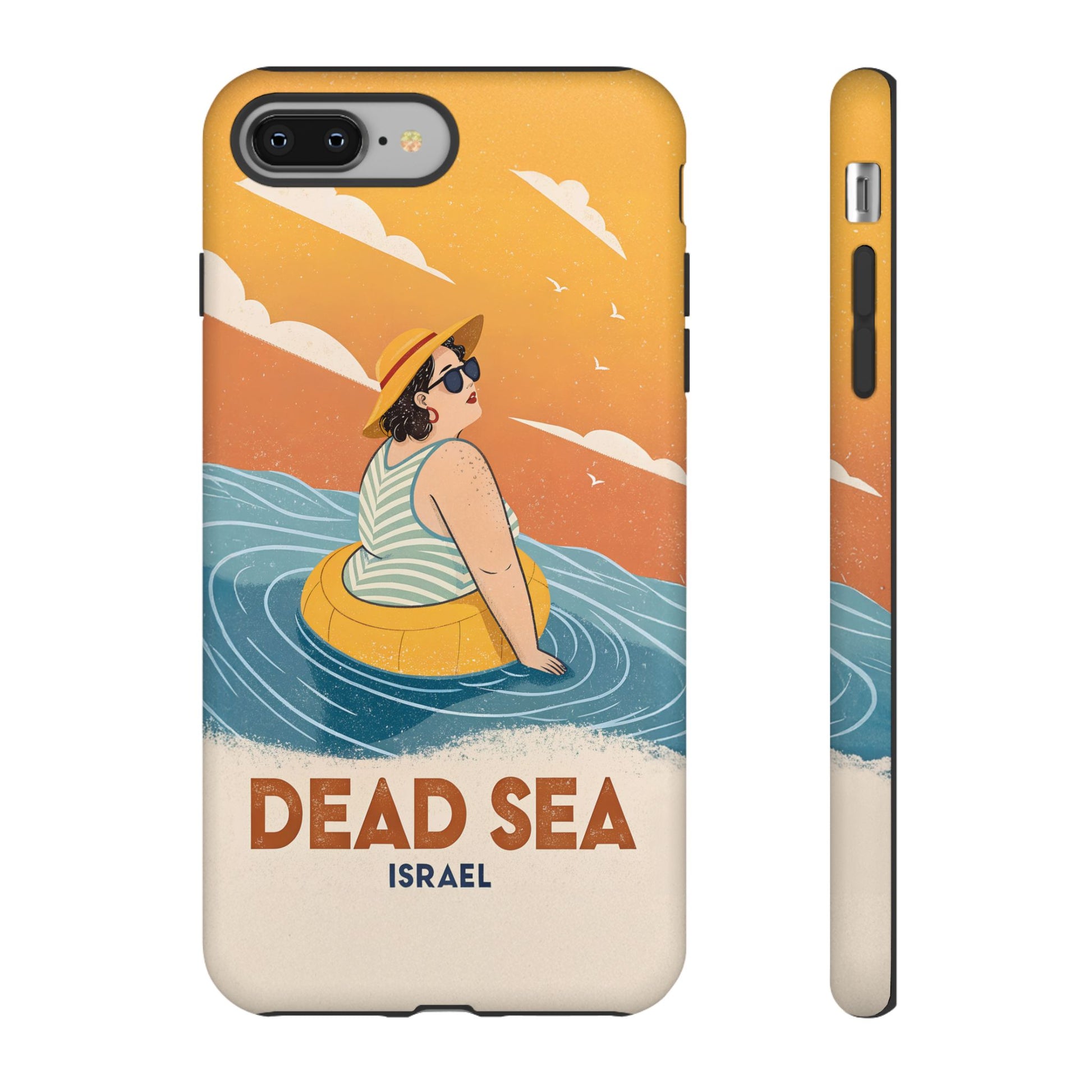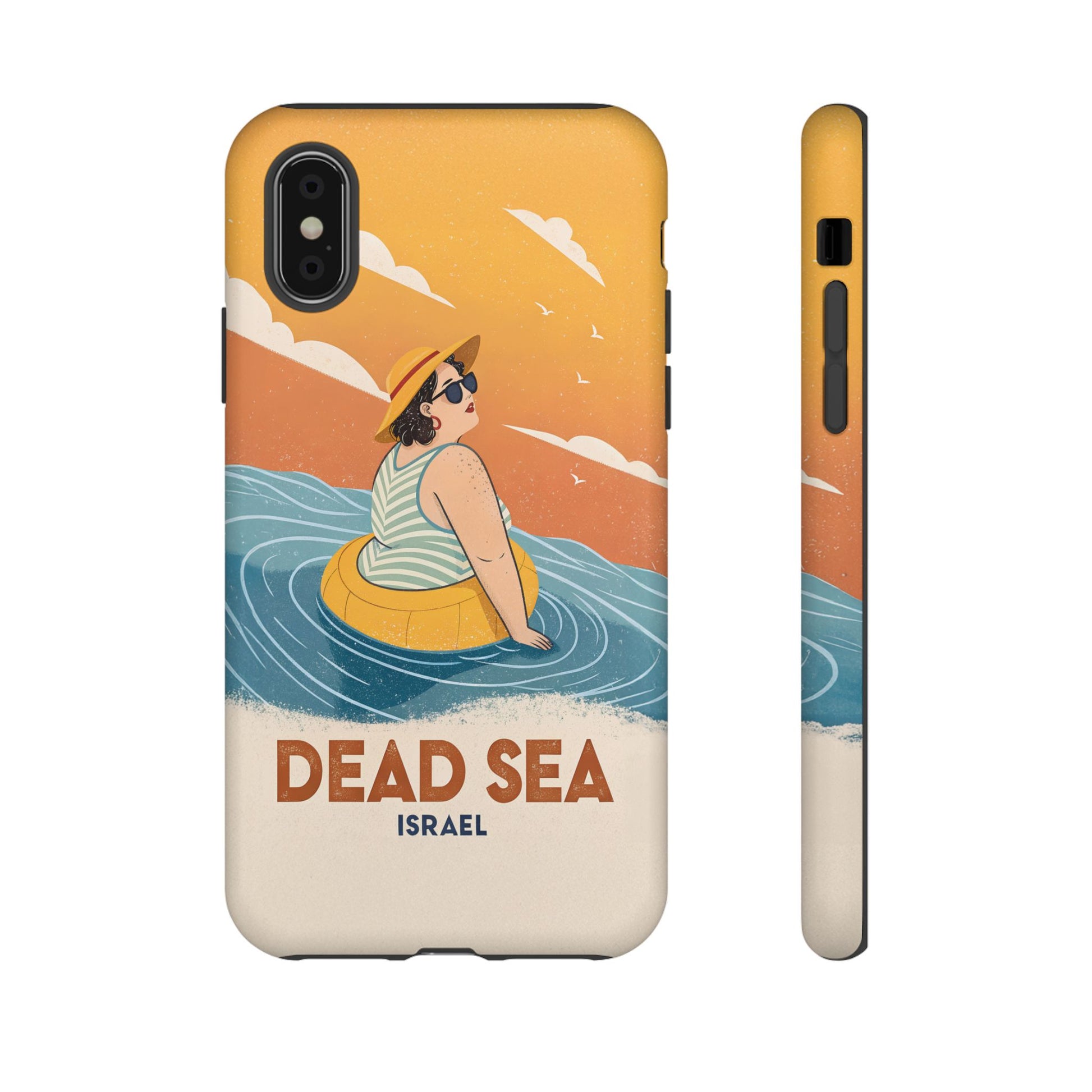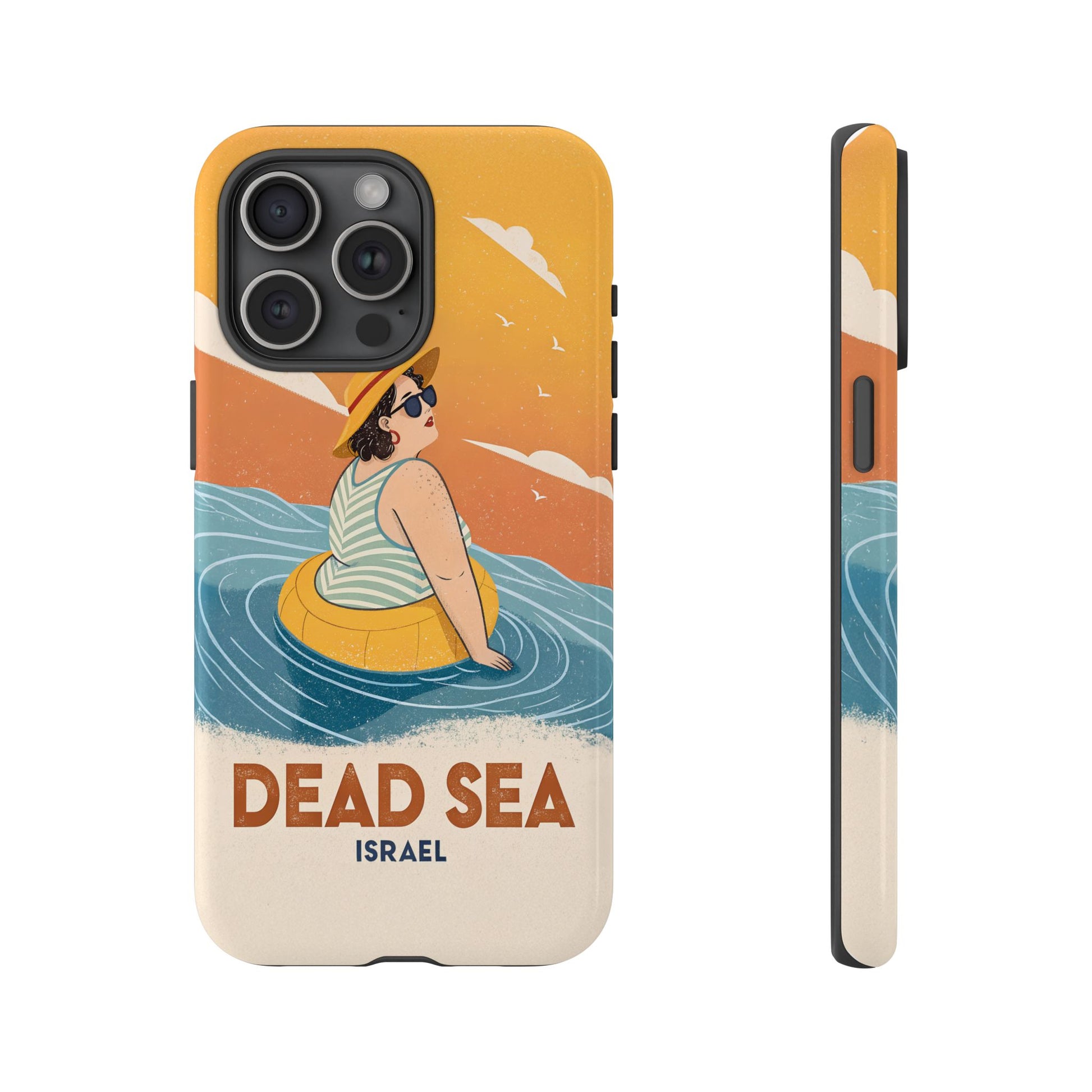 Ta med deg roen, magien og humoren fra Dødehavet med dette flotte retro-inspirerte mobildekselet. Designet viser en avslappet kvinne som flyter på det mineralrike vannet, omringet av myke blå bølger og en varm oransje himmel. Det kunstneriske uttrykket kombinerer vintage feriestemning med den ikoniske opplevelsen av å sveve uten anstrengelse på verdens salteste sjø.