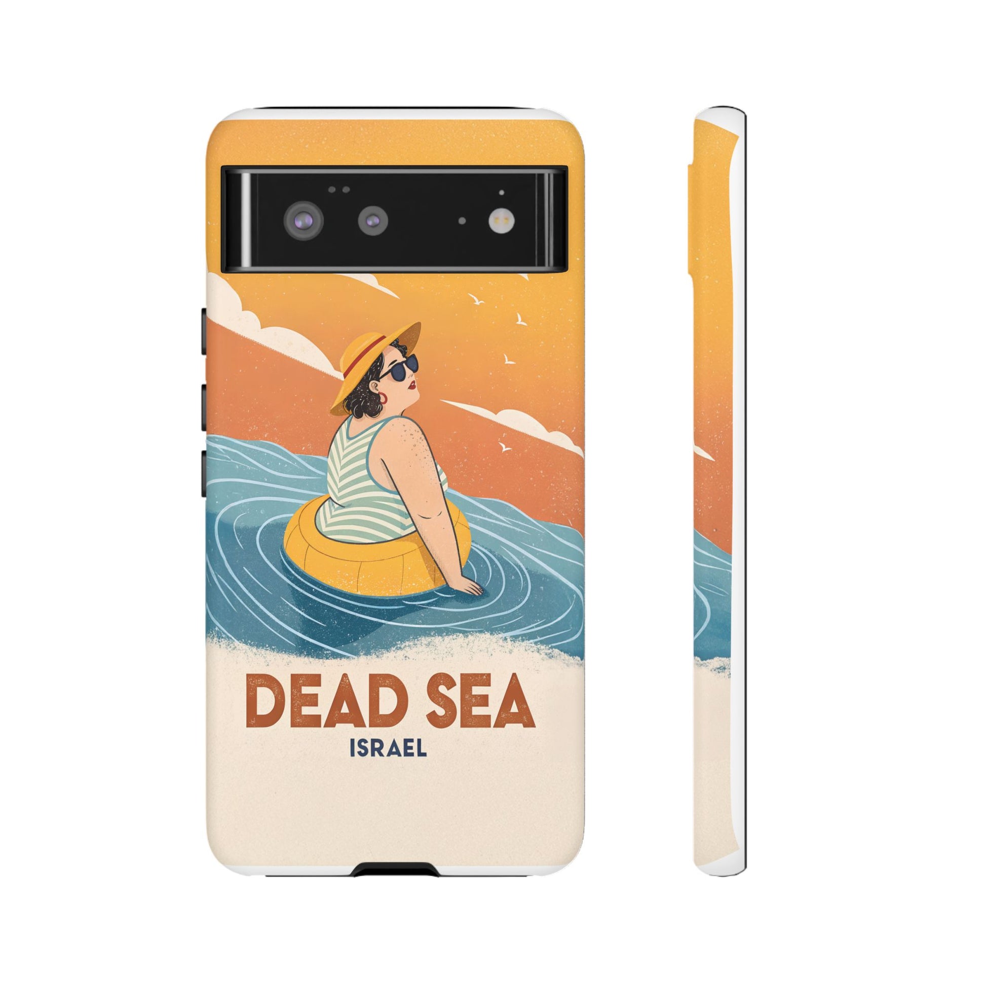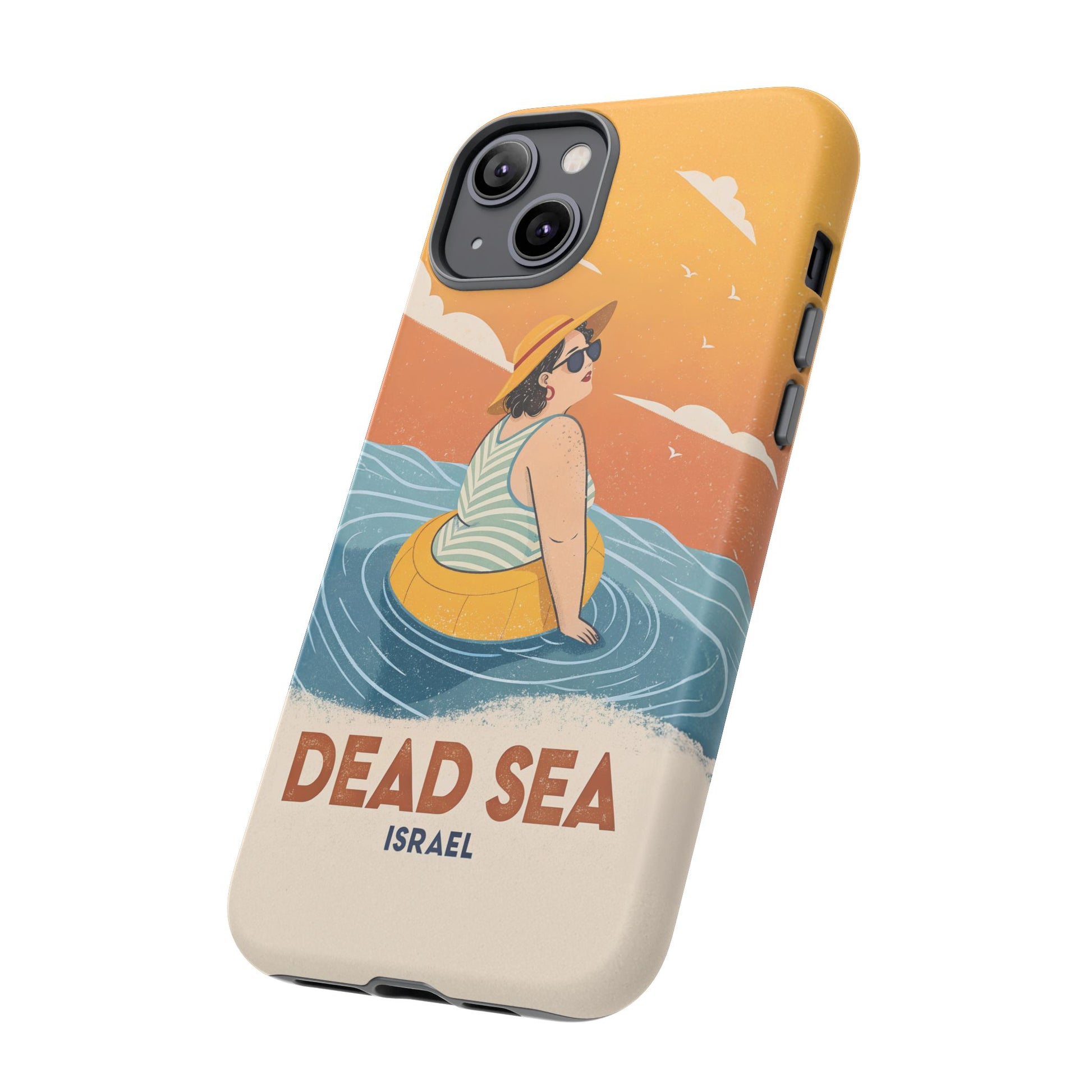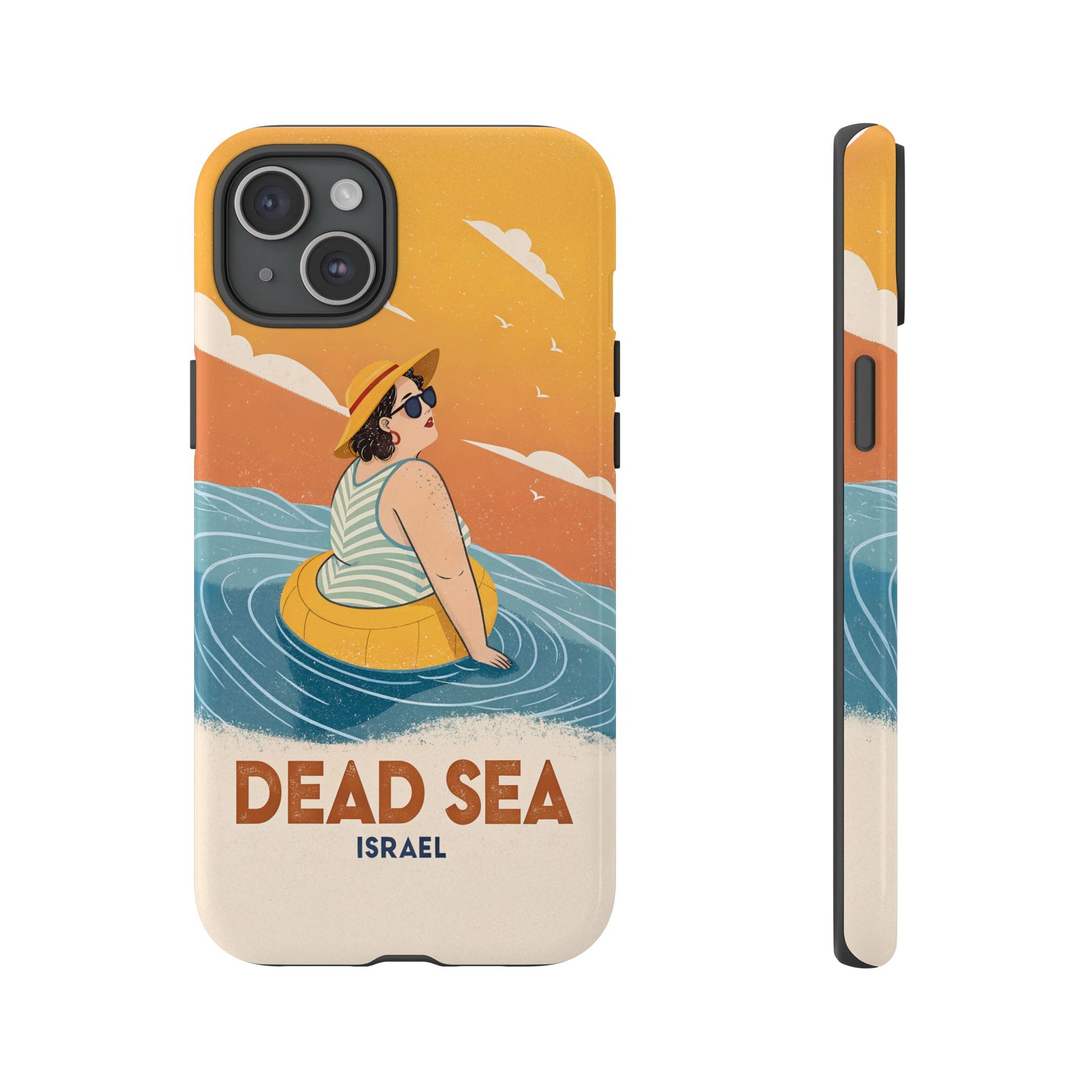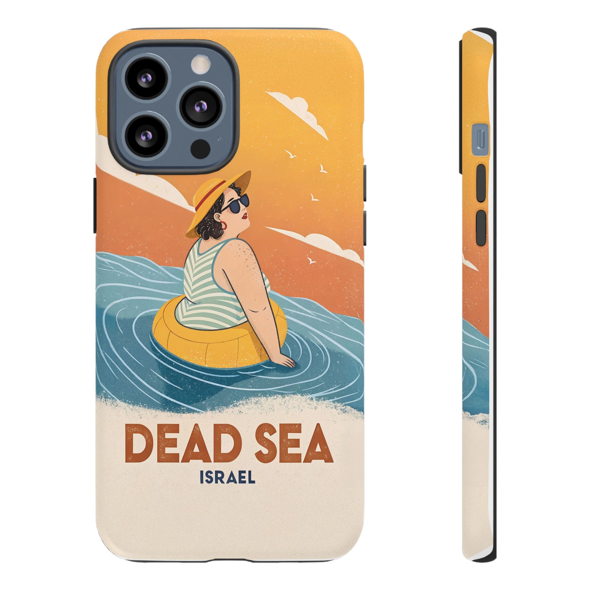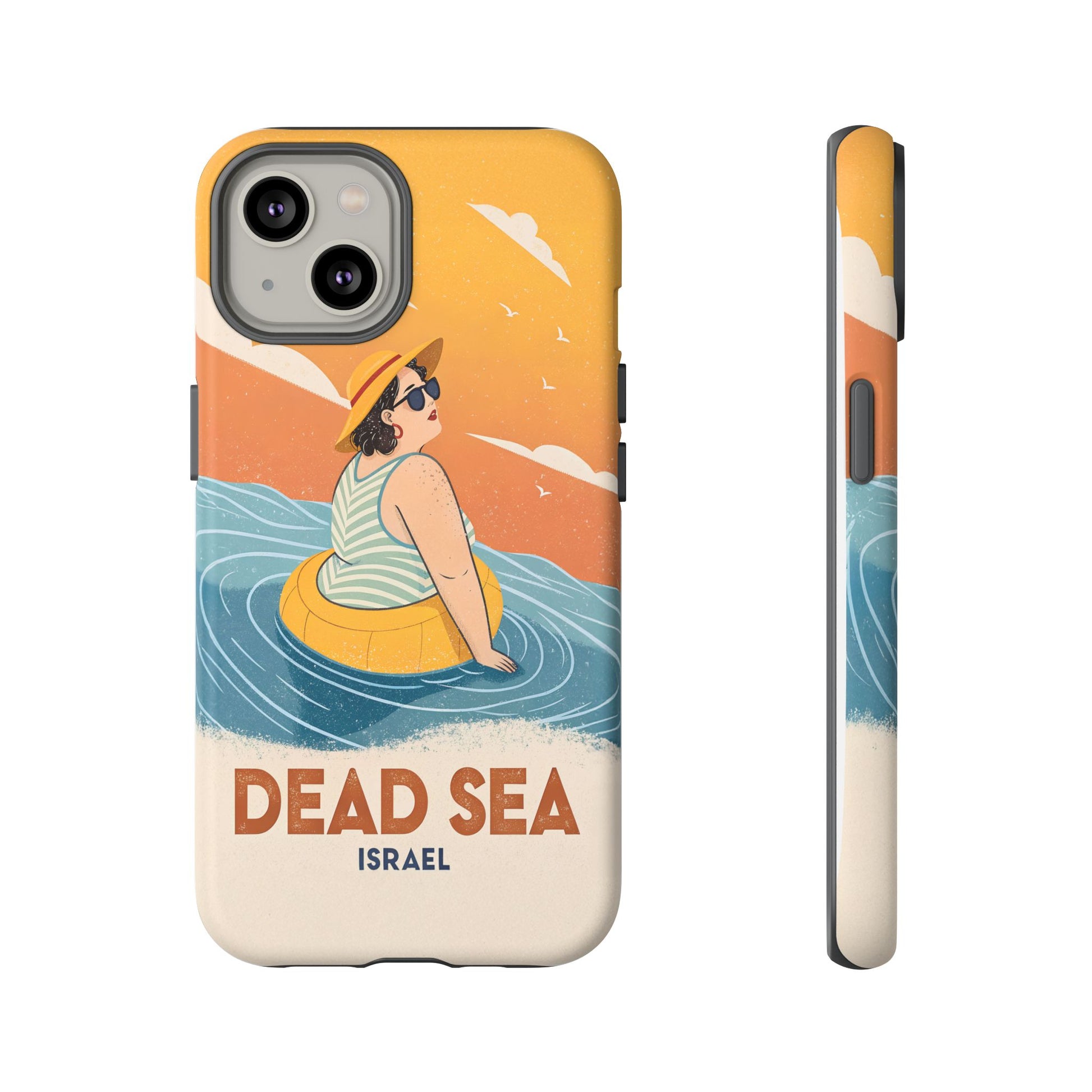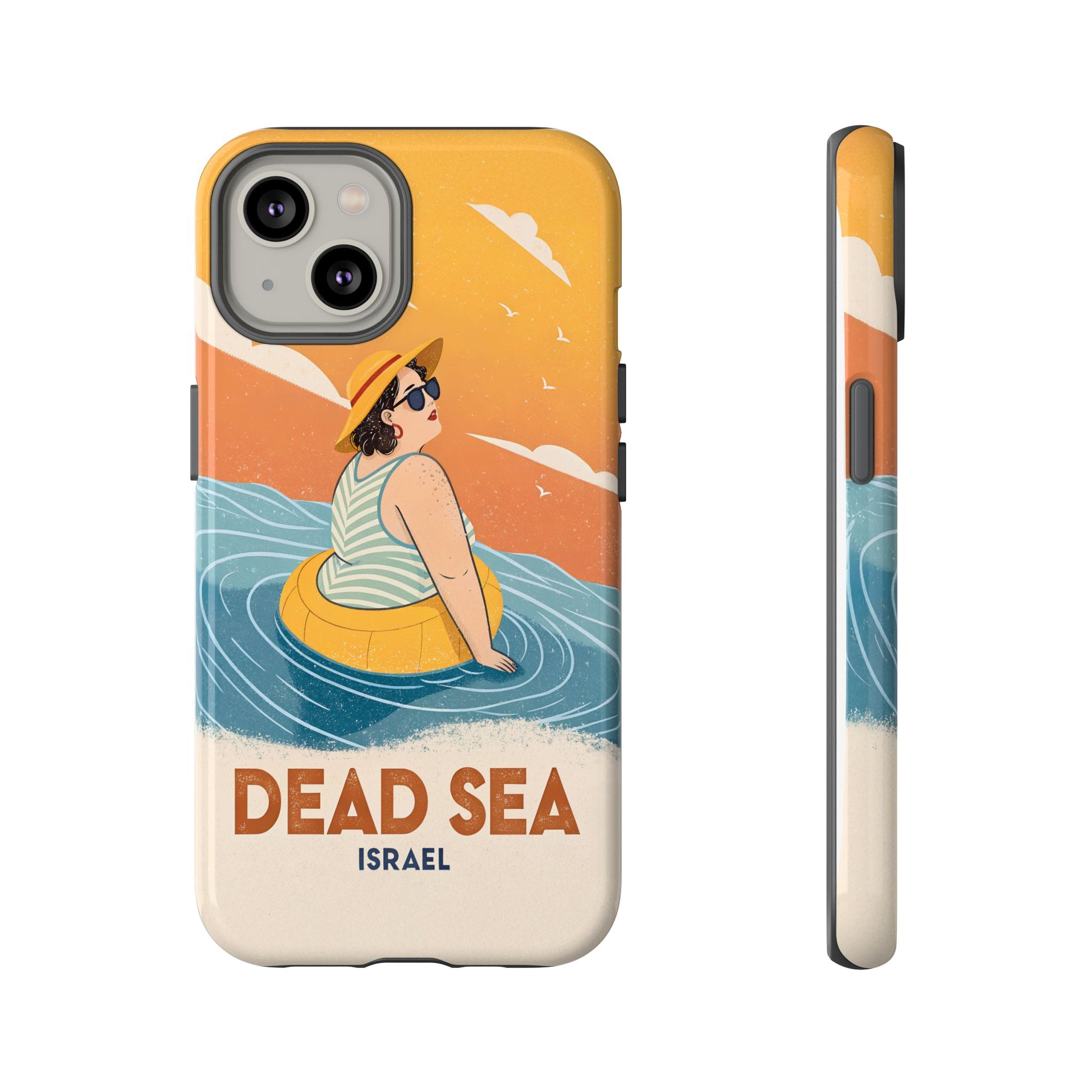 Ta med deg roen, magien og humoren fra Dødehavet med dette flotte retro-inspirerte mobildekselet. Designet viser en avslappet kvinne som flyter på det mineralrike vannet, omringet av myke blå bølger og en varm oransje himmel. Det kunstneriske uttrykket kombinerer vintage feriestemning med den ikoniske opplevelsen av å sveve uten anstrengelse på verdens salteste sjø.