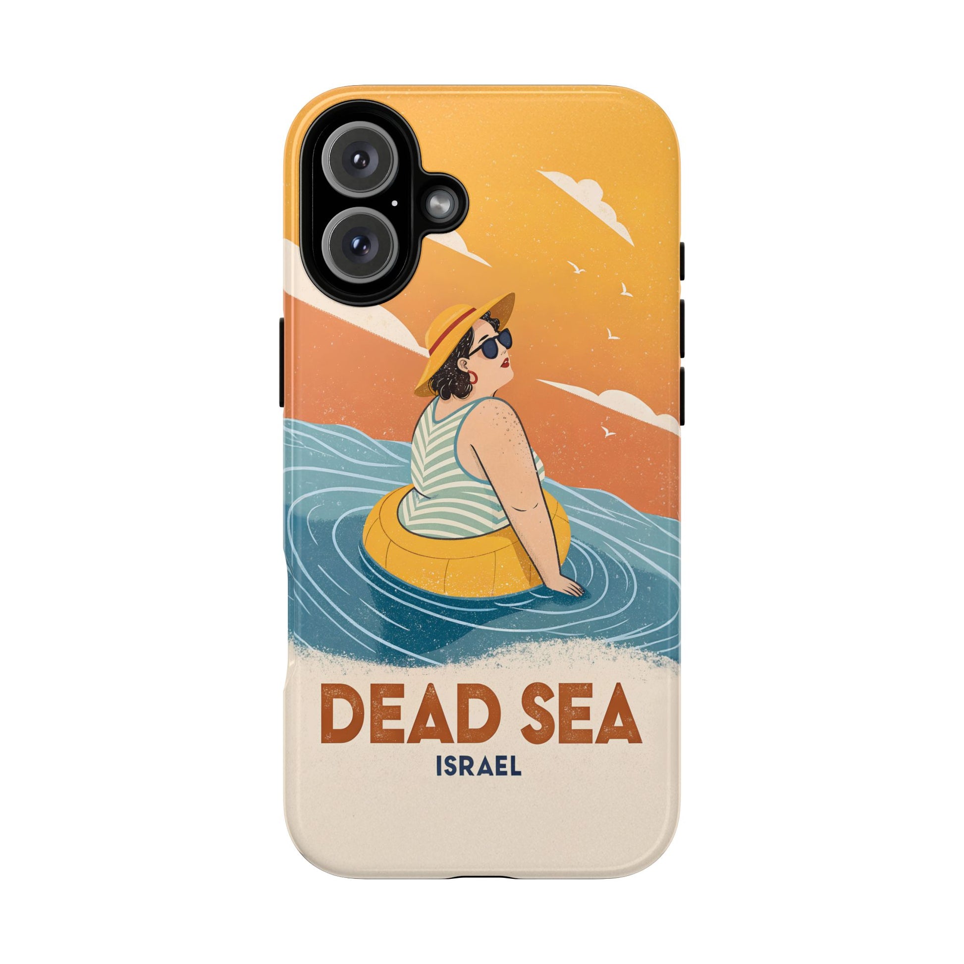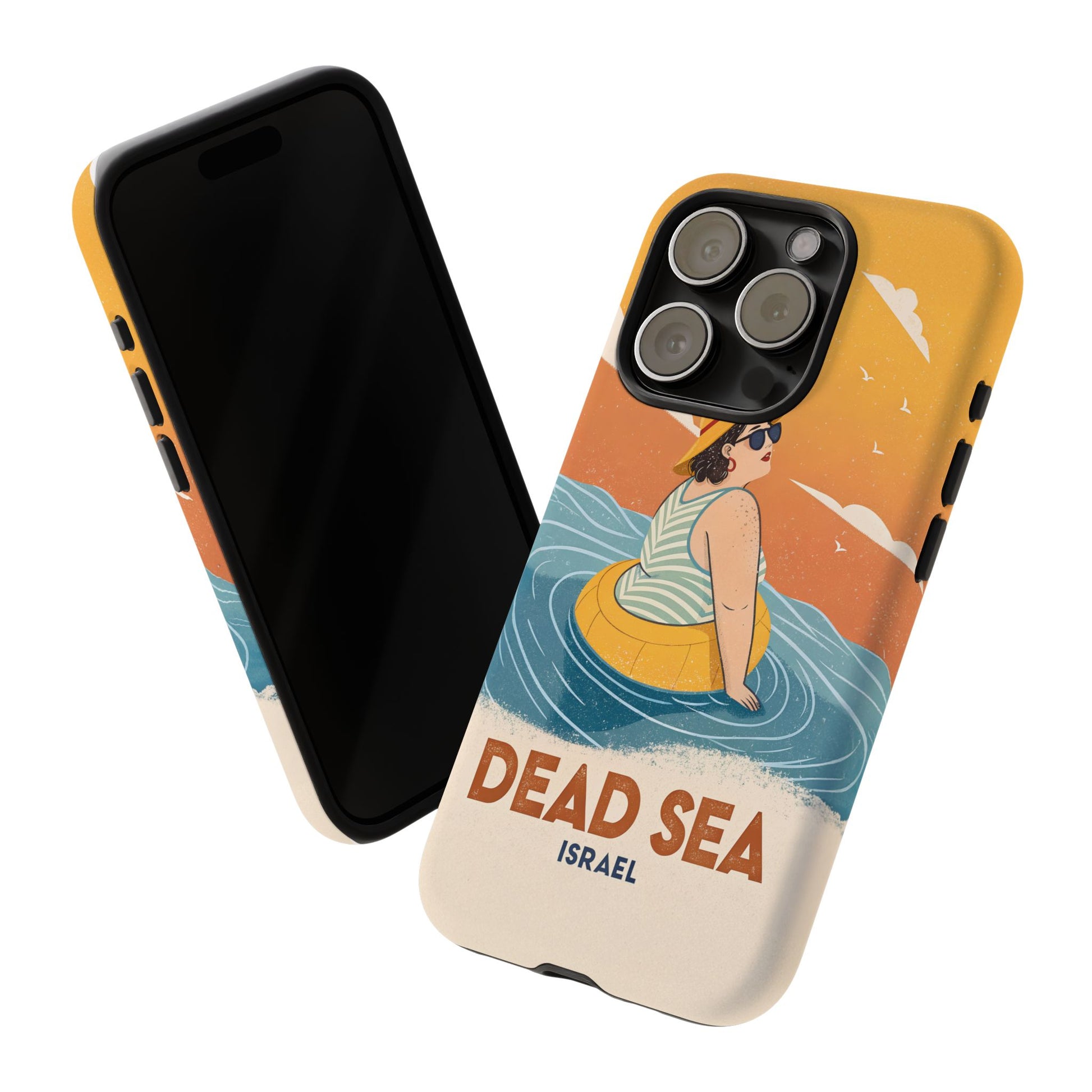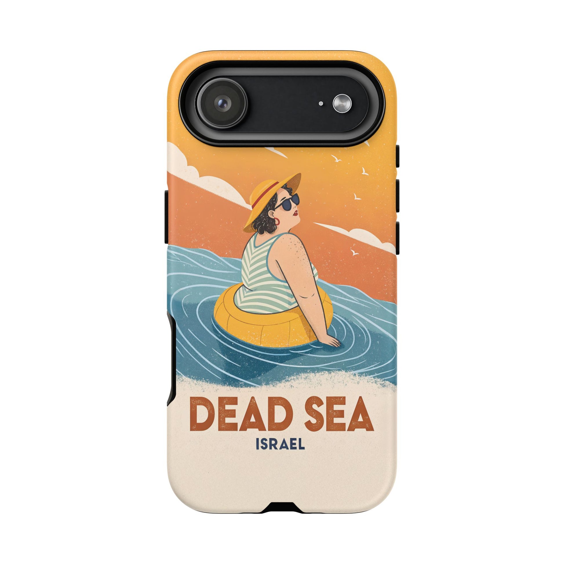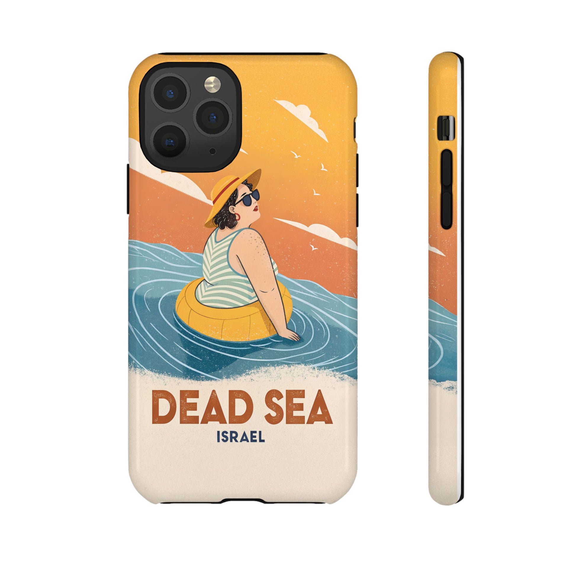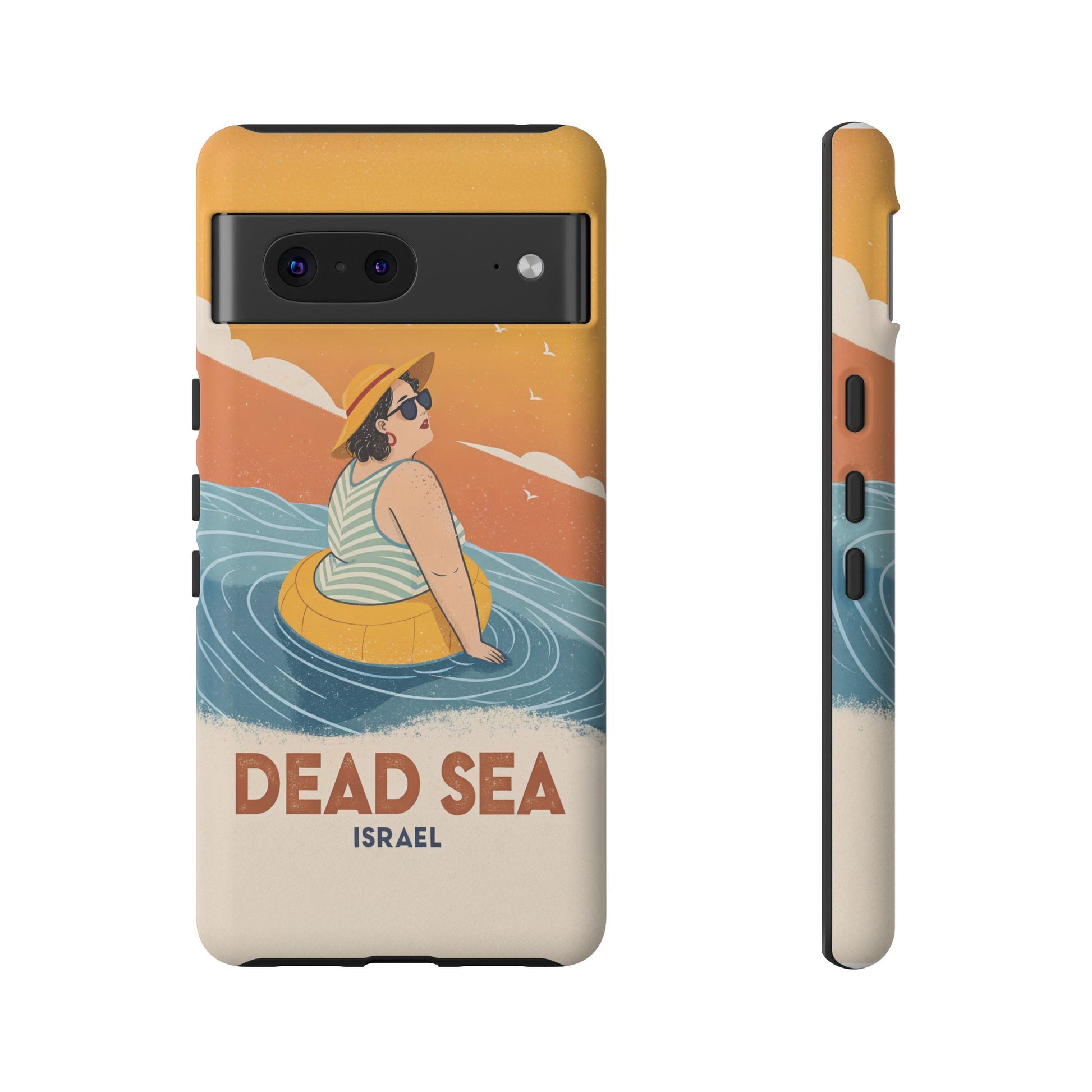 Ta med deg roen, magien og humoren fra Dødehavet med dette flotte retro-inspirerte mobildekselet. Designet viser en avslappet kvinne som flyter på det mineralrike vannet, omringet av myke blå bølger og en varm oransje himmel. Det kunstneriske uttrykket kombinerer vintage feriestemning med den ikoniske opplevelsen av å sveve uten anstrengelse på verdens salteste sjø.