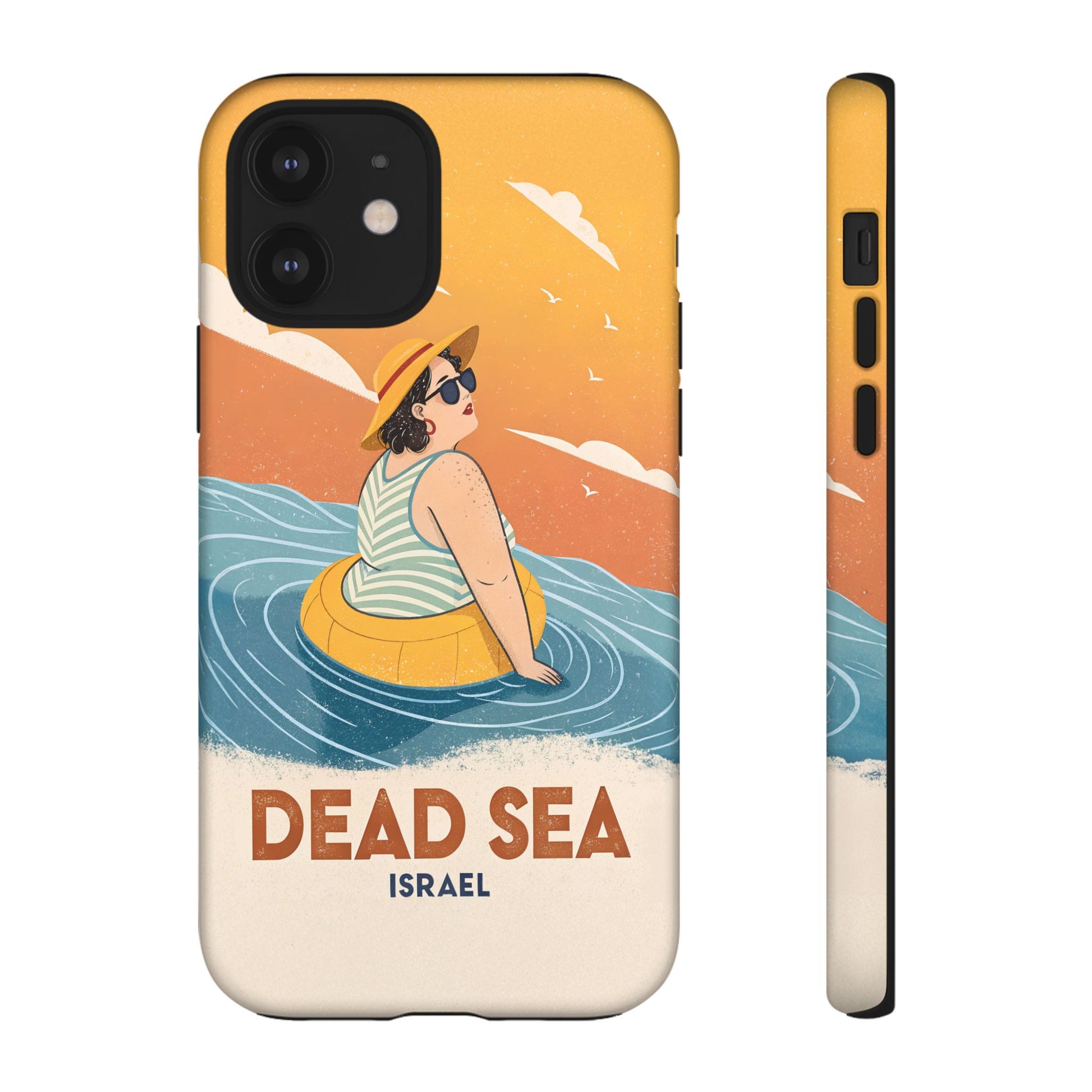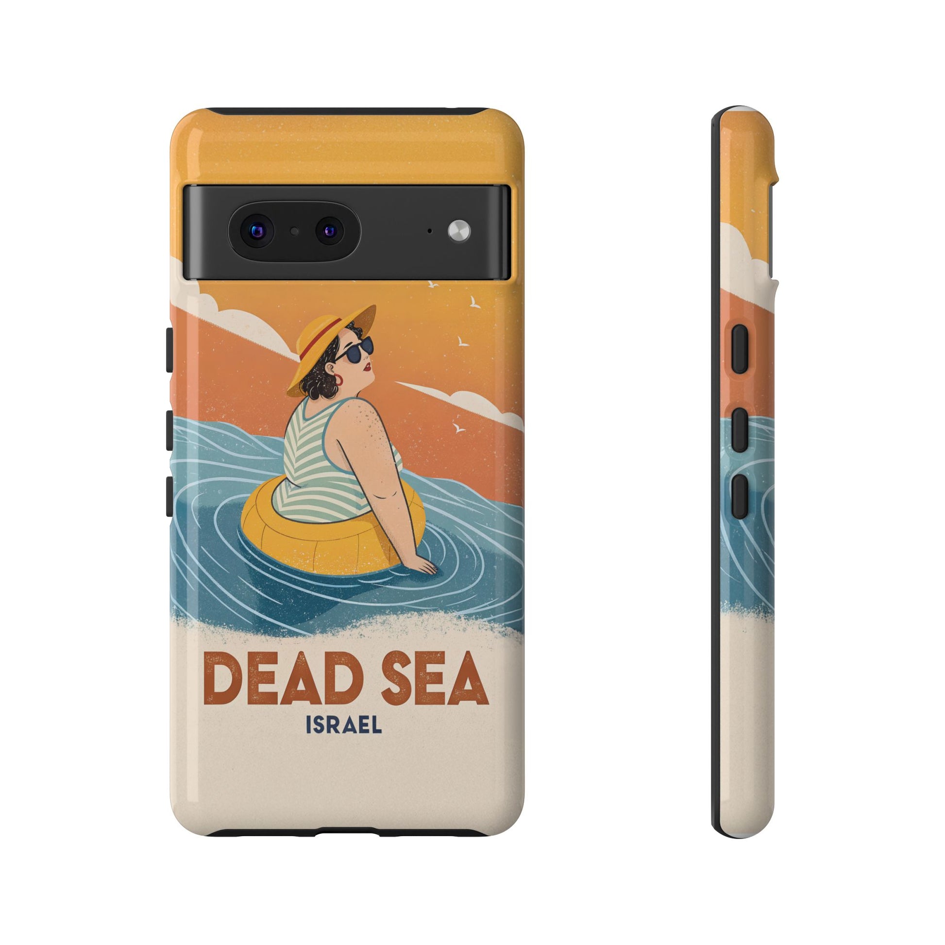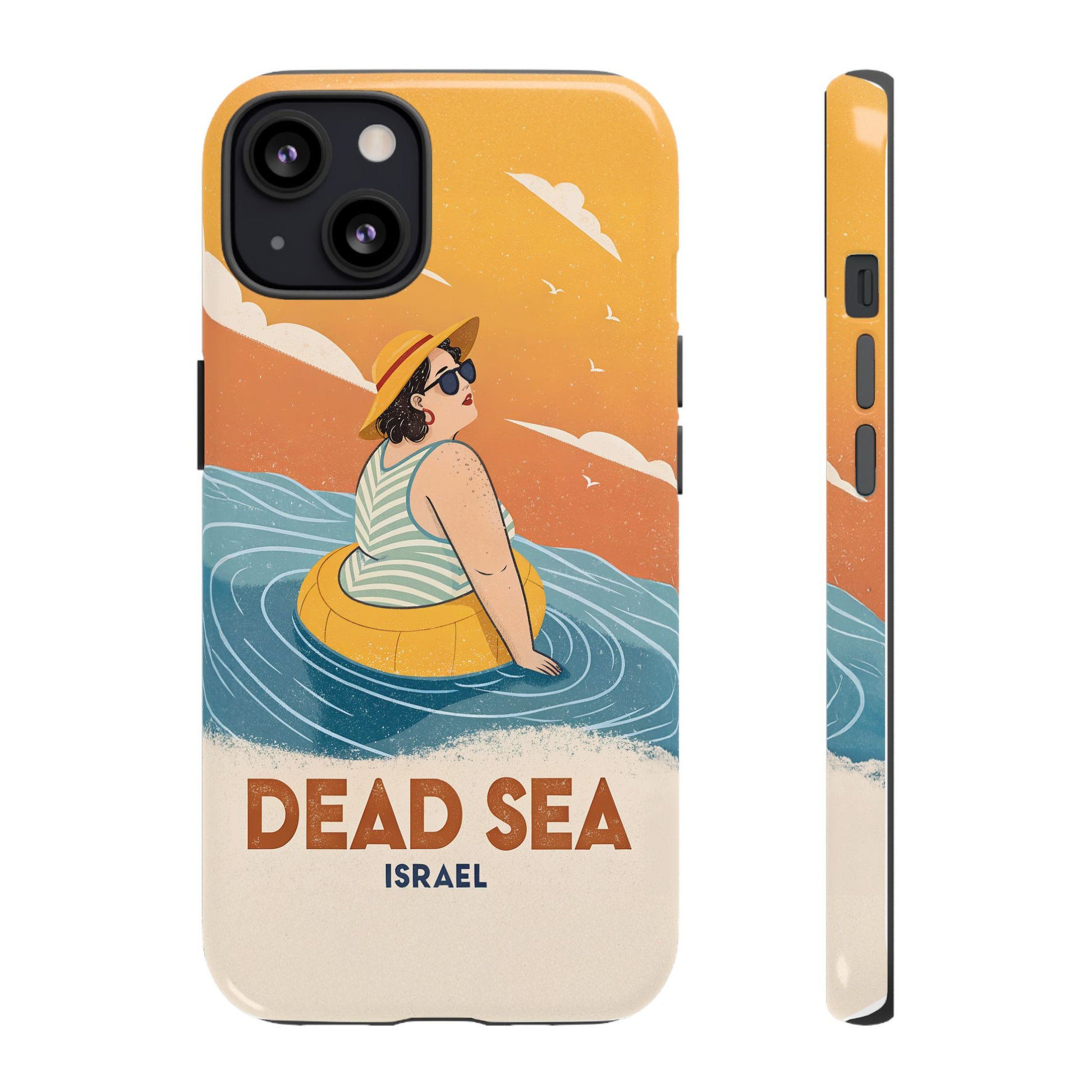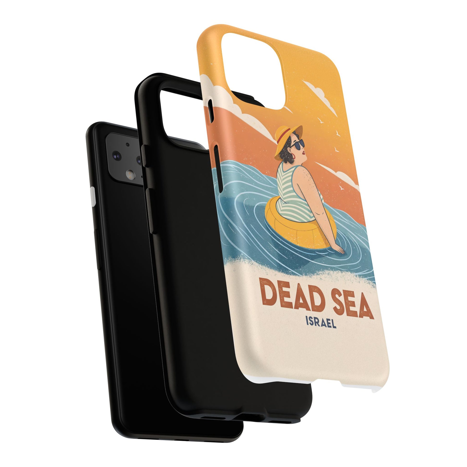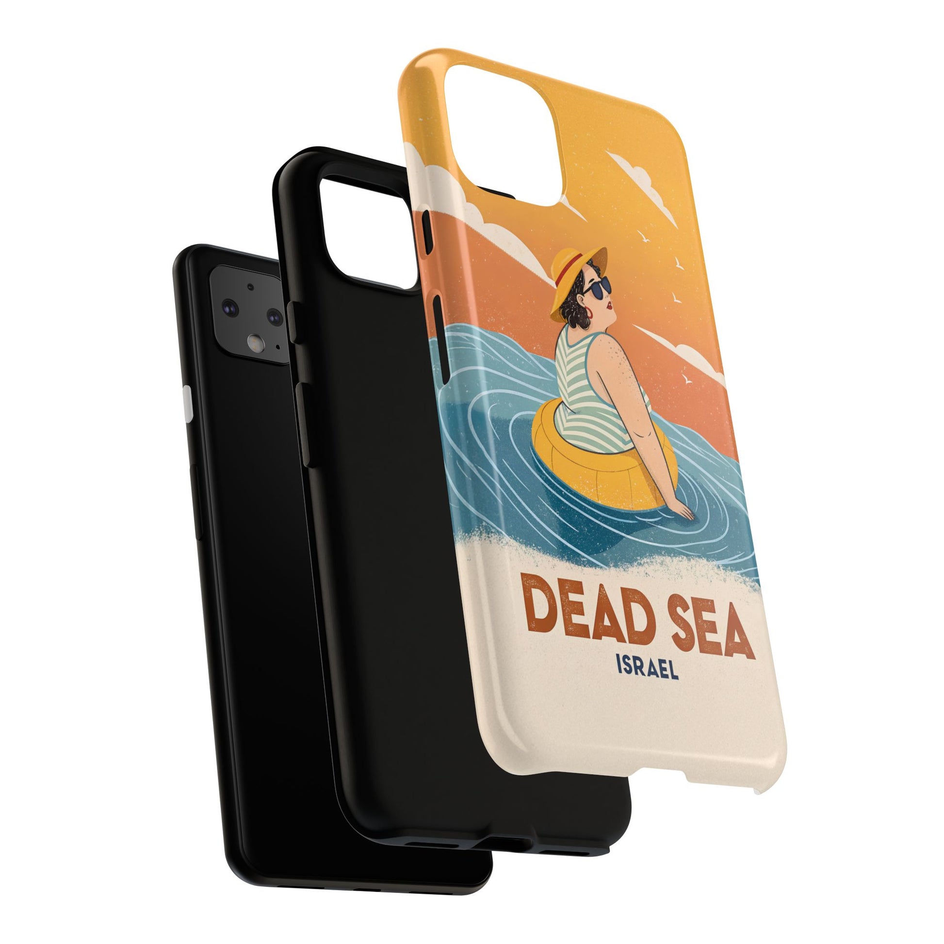 Ta med deg roen, magien og humoren fra Dødehavet med dette flotte retro-inspirerte mobildekselet. Designet viser en avslappet kvinne som flyter på det mineralrike vannet, omringet av myke blå bølger og en varm oransje himmel. Det kunstneriske uttrykket kombinerer vintage feriestemning med den ikoniske opplevelsen av å sveve uten anstrengelse på verdens salteste sjø.