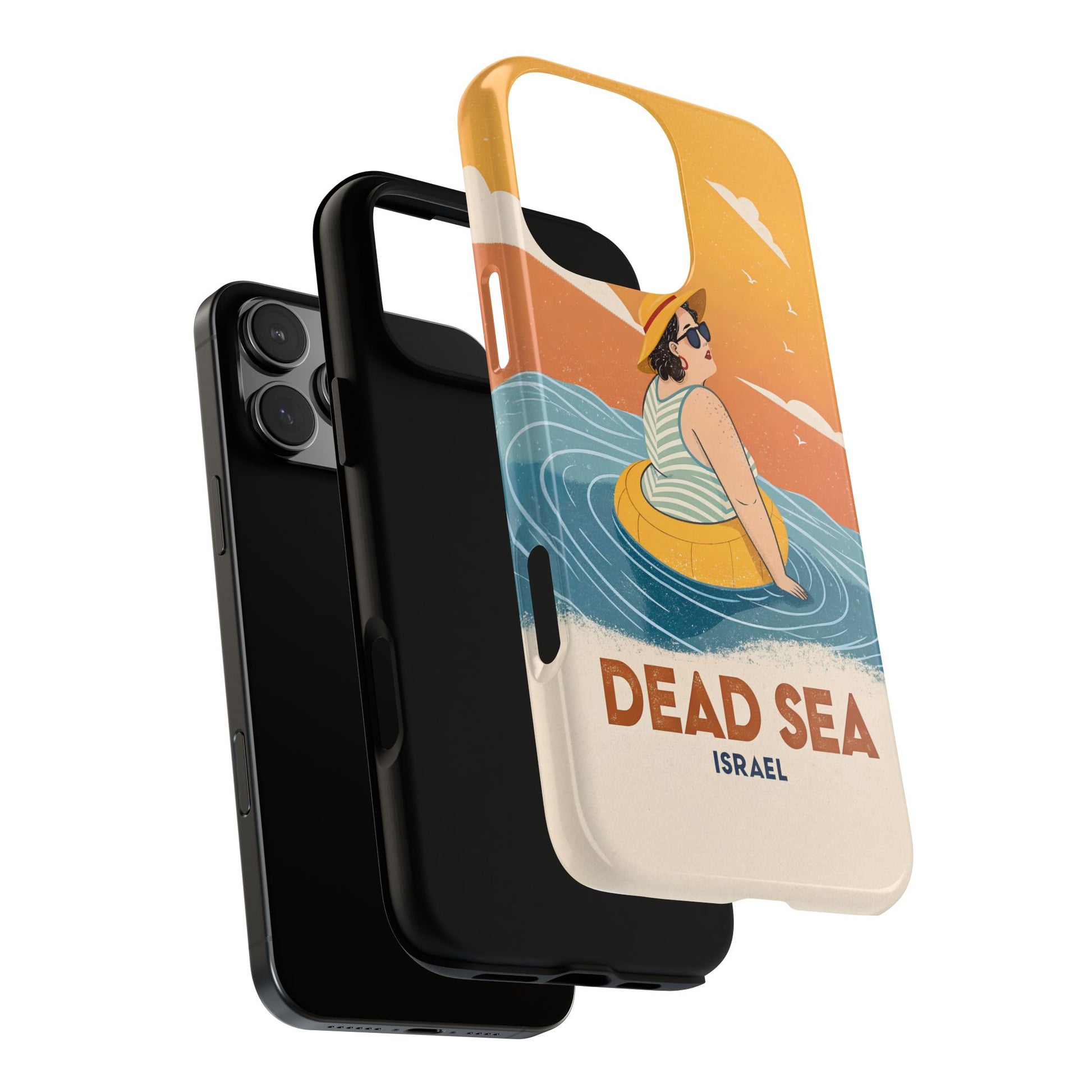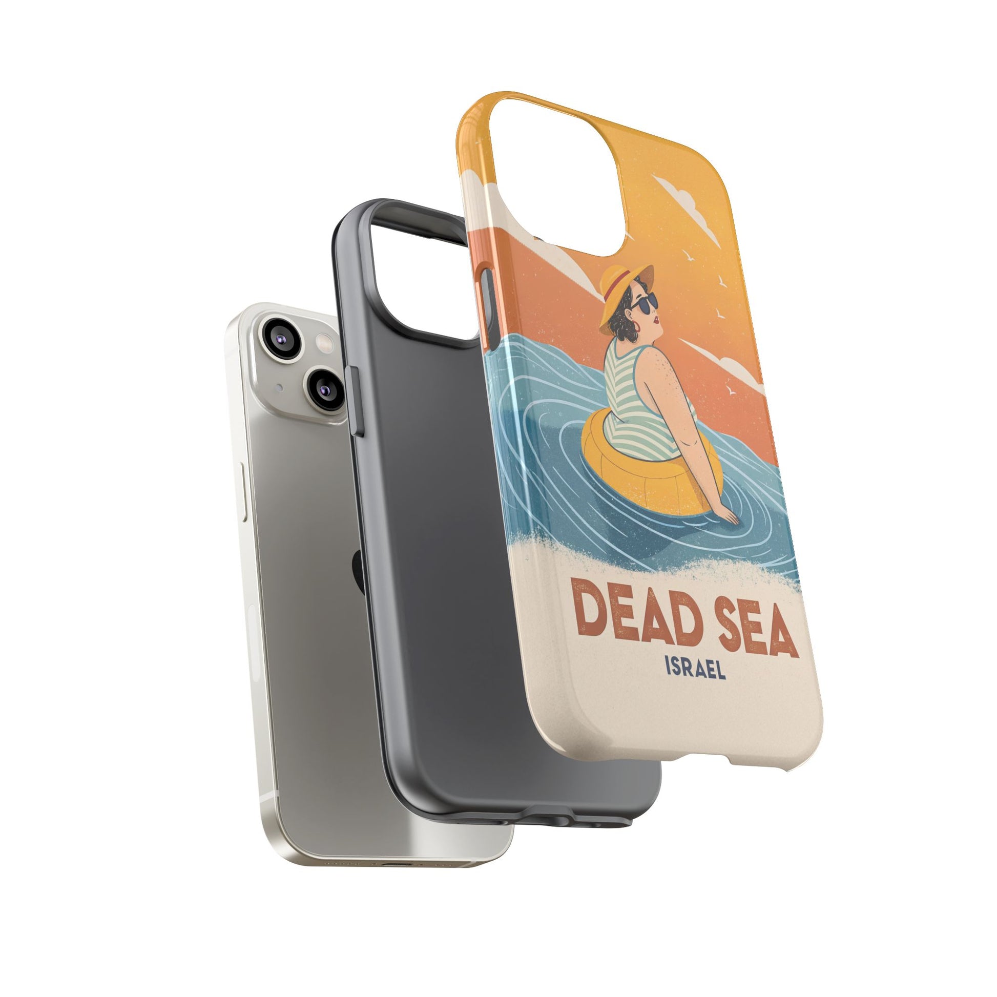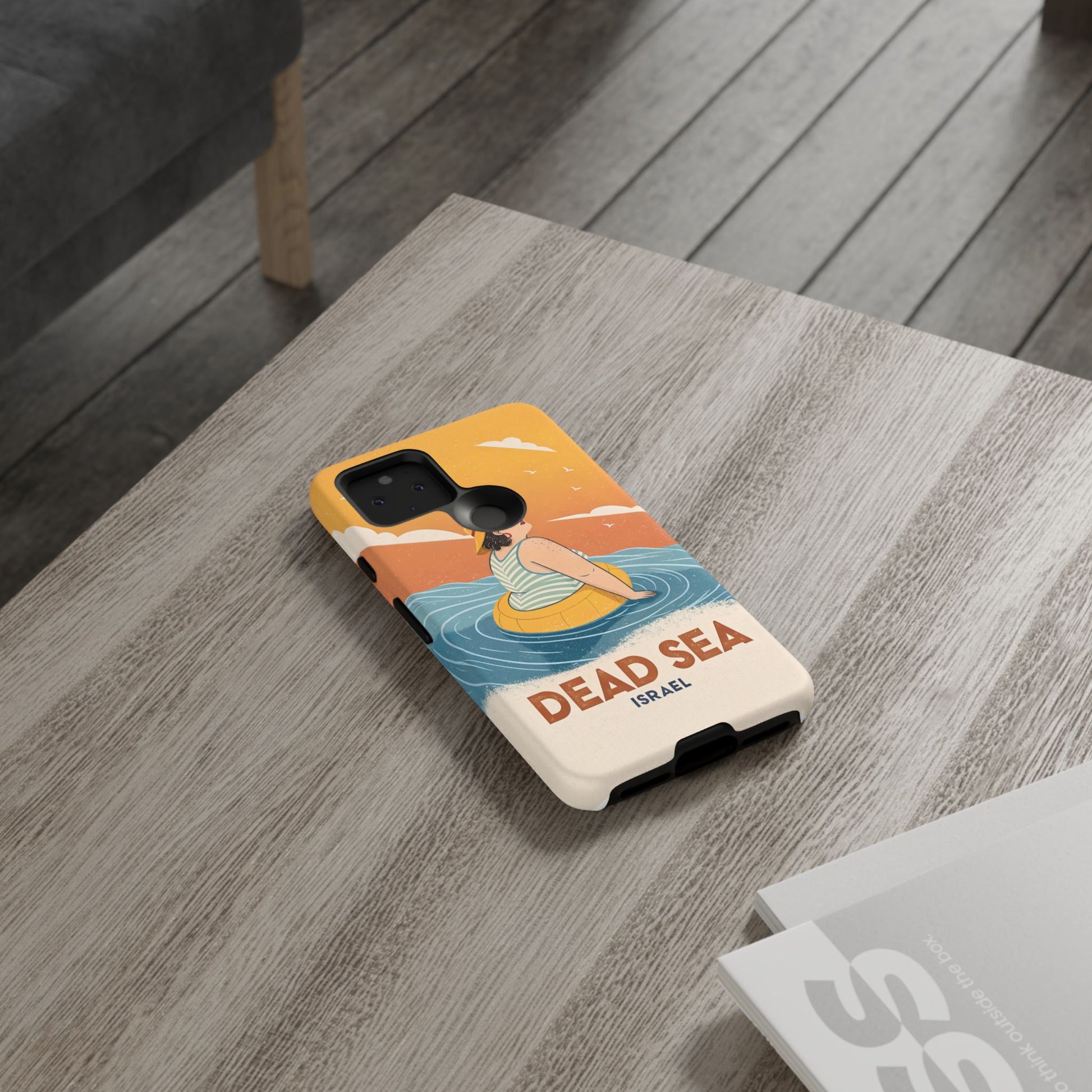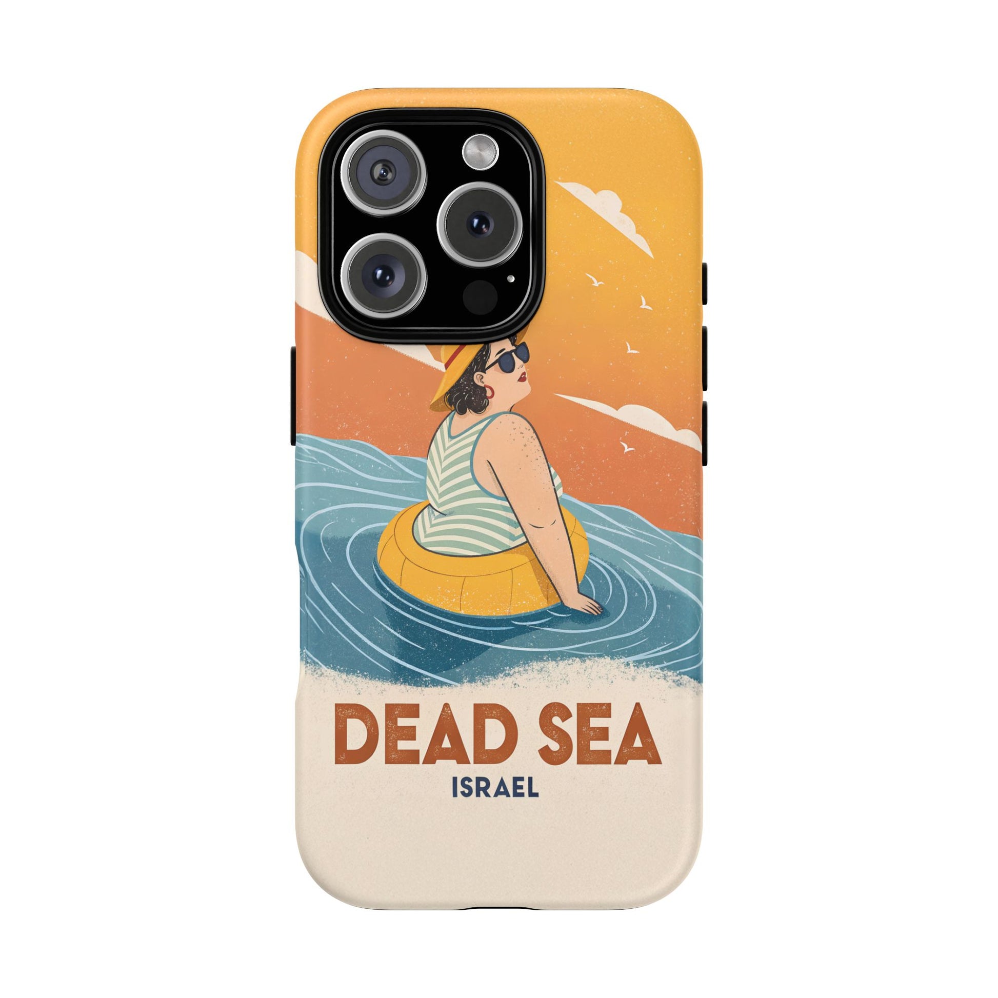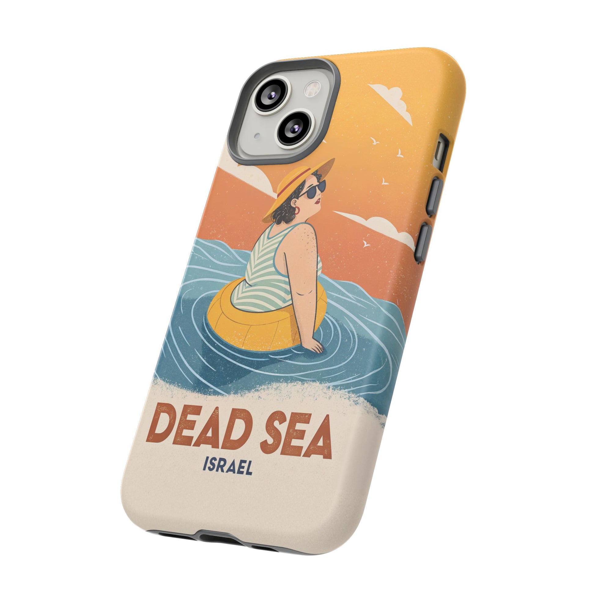 Ta med deg roen, magien og humoren fra Dødehavet med dette flotte retro-inspirerte mobildekselet. Designet viser en avslappet kvinne som flyter på det mineralrike vannet, omringet av myke blå bølger og en varm oransje himmel. Det kunstneriske uttrykket kombinerer vintage feriestemning med den ikoniske opplevelsen av å sveve uten anstrengelse på verdens salteste sjø.
