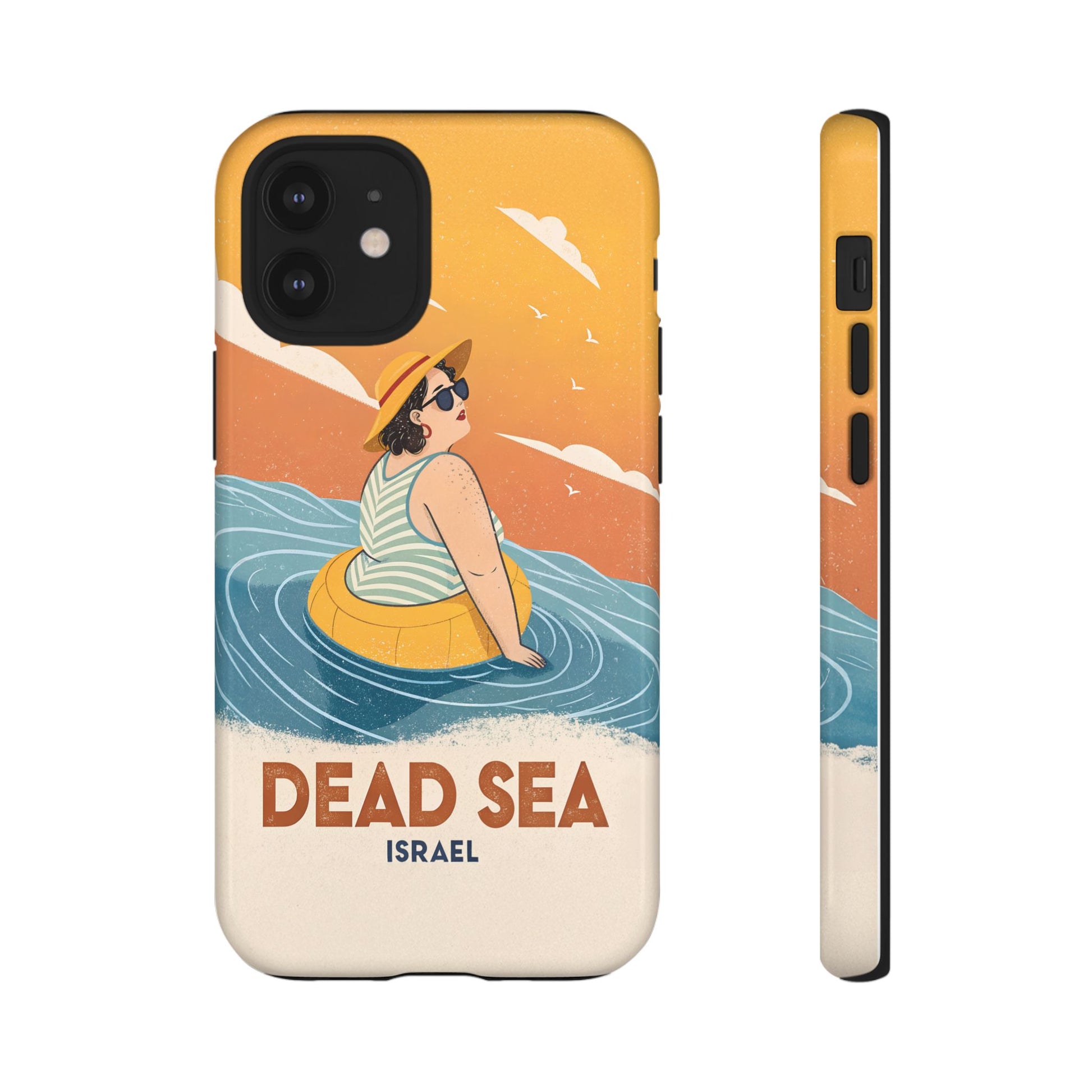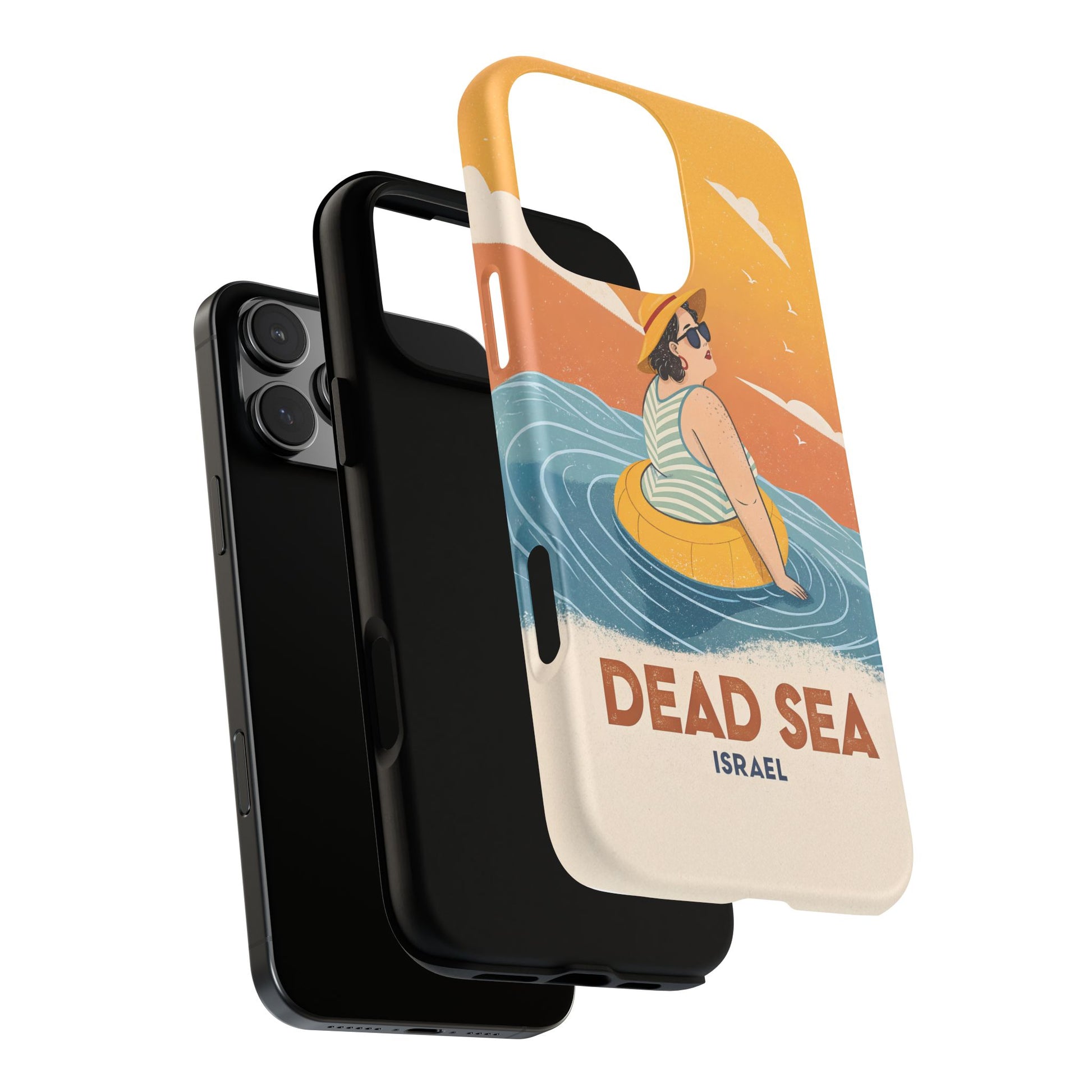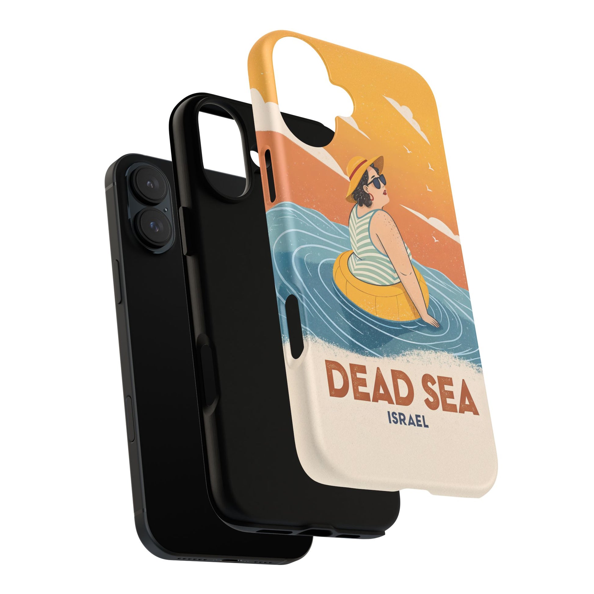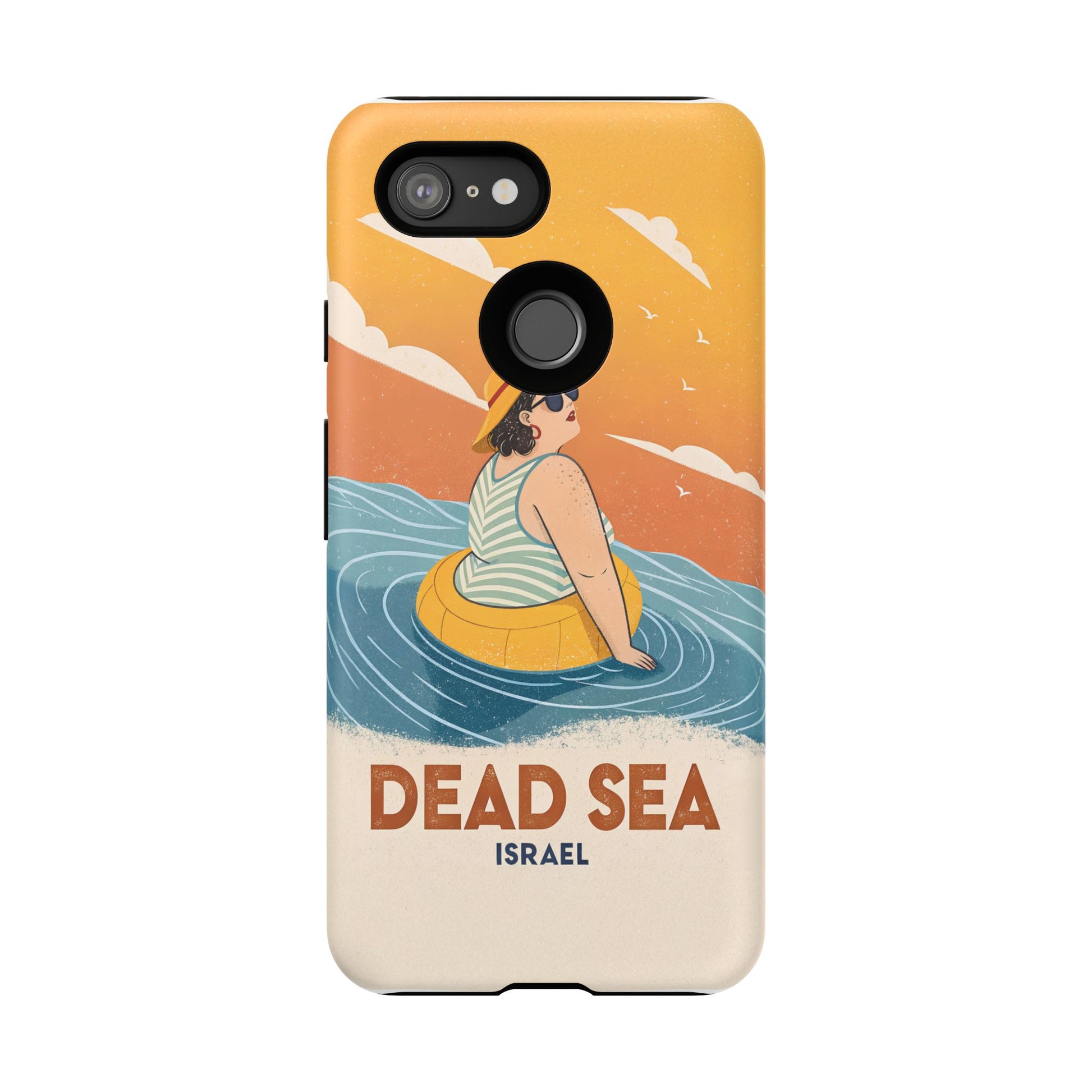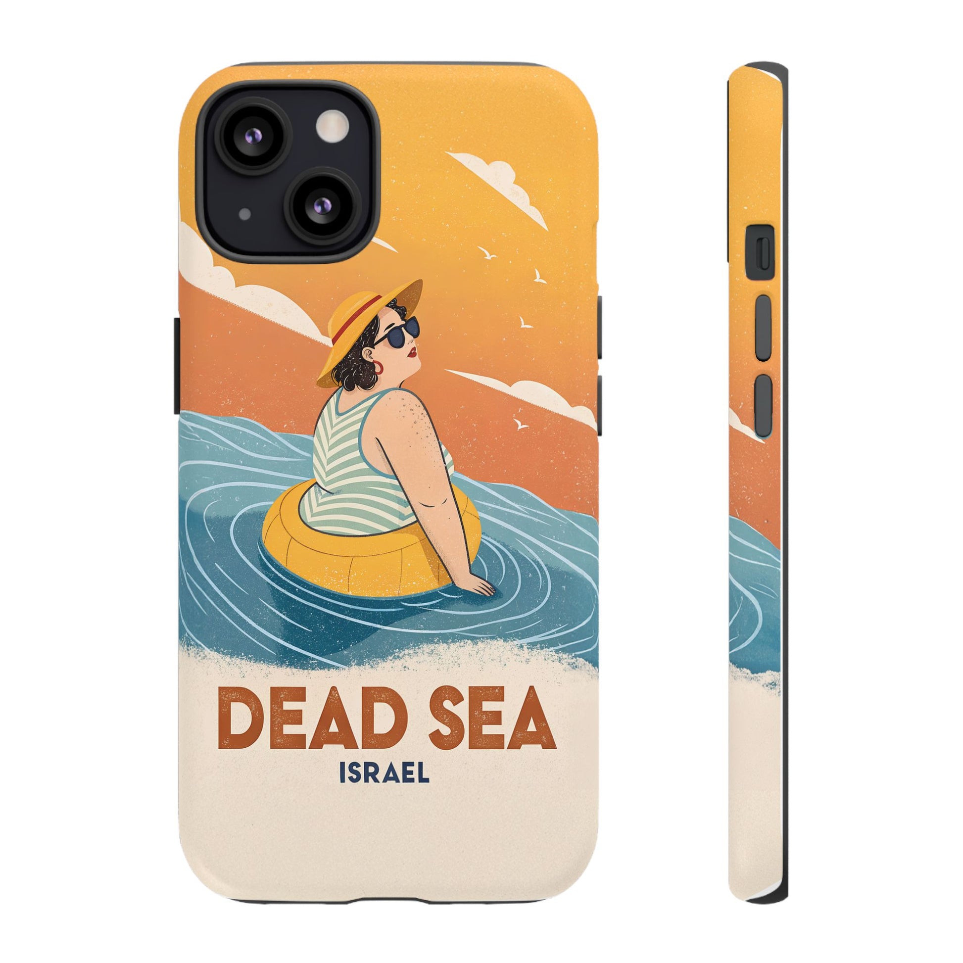 Ta med deg roen, magien og humoren fra Dødehavet med dette flotte retro-inspirerte mobildekselet. Designet viser en avslappet kvinne som flyter på det mineralrike vannet, omringet av myke blå bølger og en varm oransje himmel. Det kunstneriske uttrykket kombinerer vintage feriestemning med den ikoniske opplevelsen av å sveve uten anstrengelse på verdens salteste sjø.