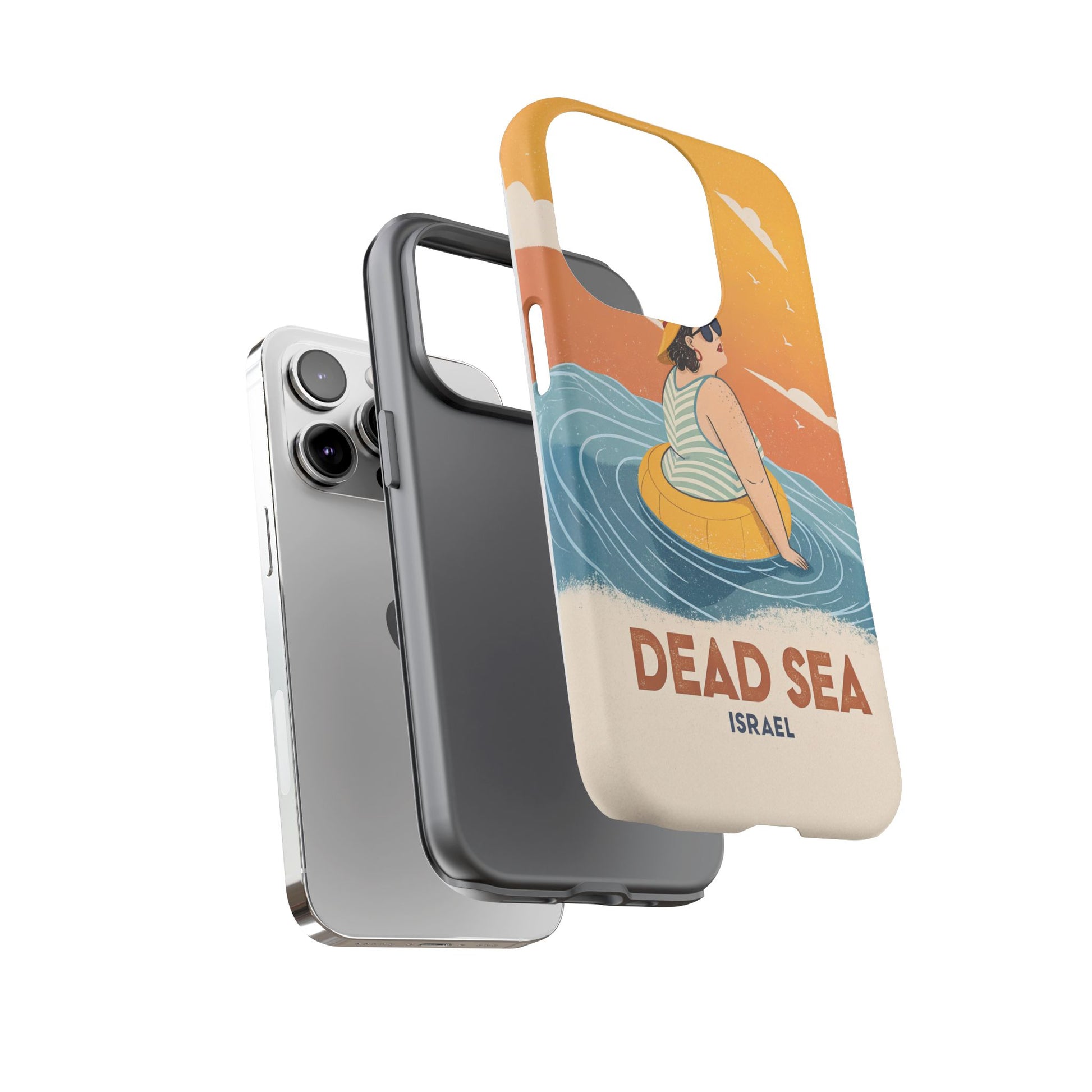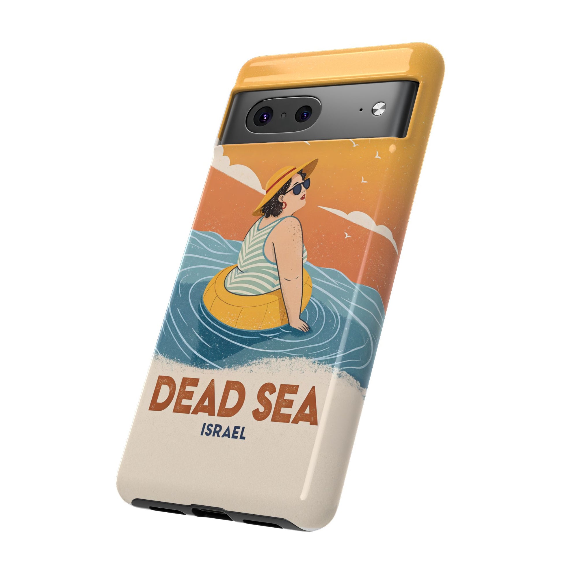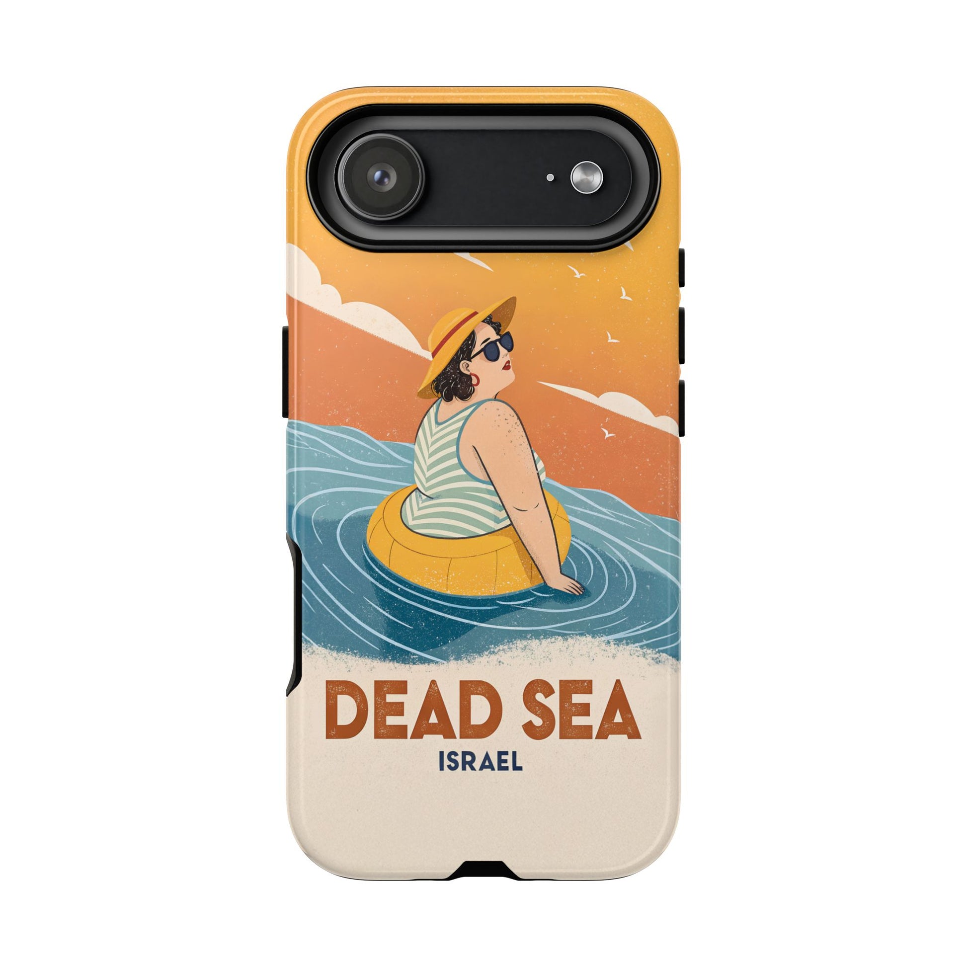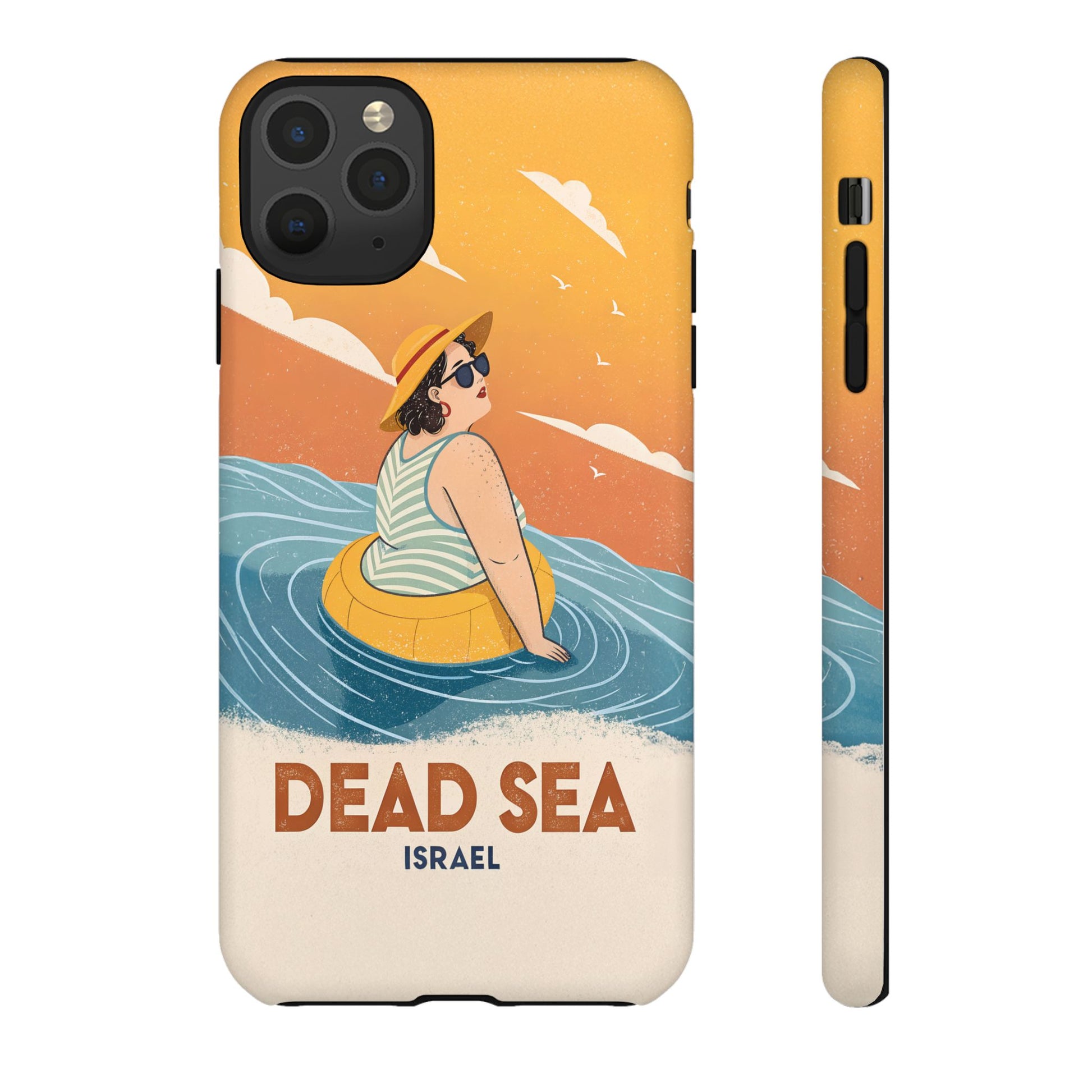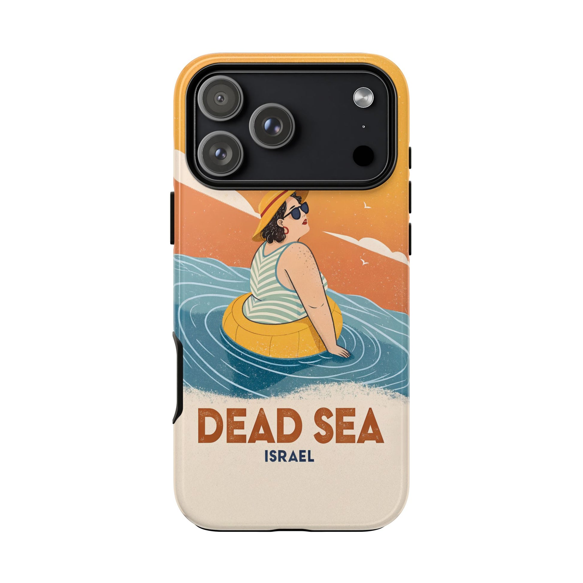 Ta med deg roen, magien og humoren fra Dødehavet med dette flotte retro-inspirerte mobildekselet. Designet viser en avslappet kvinne som flyter på det mineralrike vannet, omringet av myke blå bølger og en varm oransje himmel. Det kunstneriske uttrykket kombinerer vintage feriestemning med den ikoniske opplevelsen av å sveve uten anstrengelse på verdens salteste sjø.