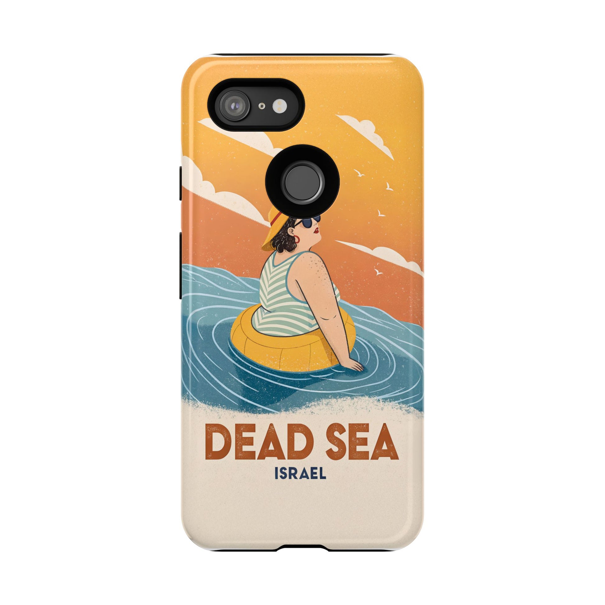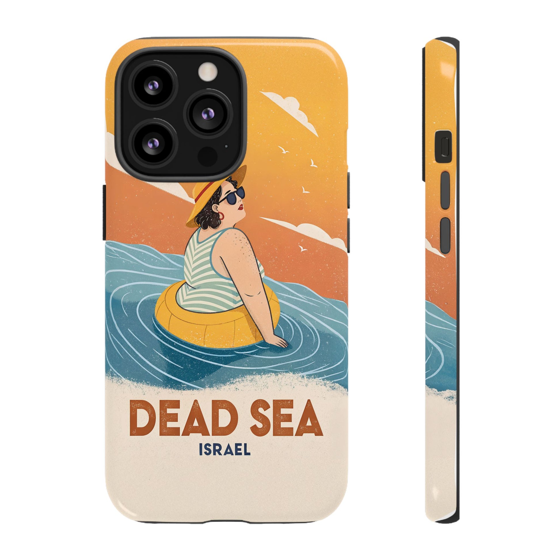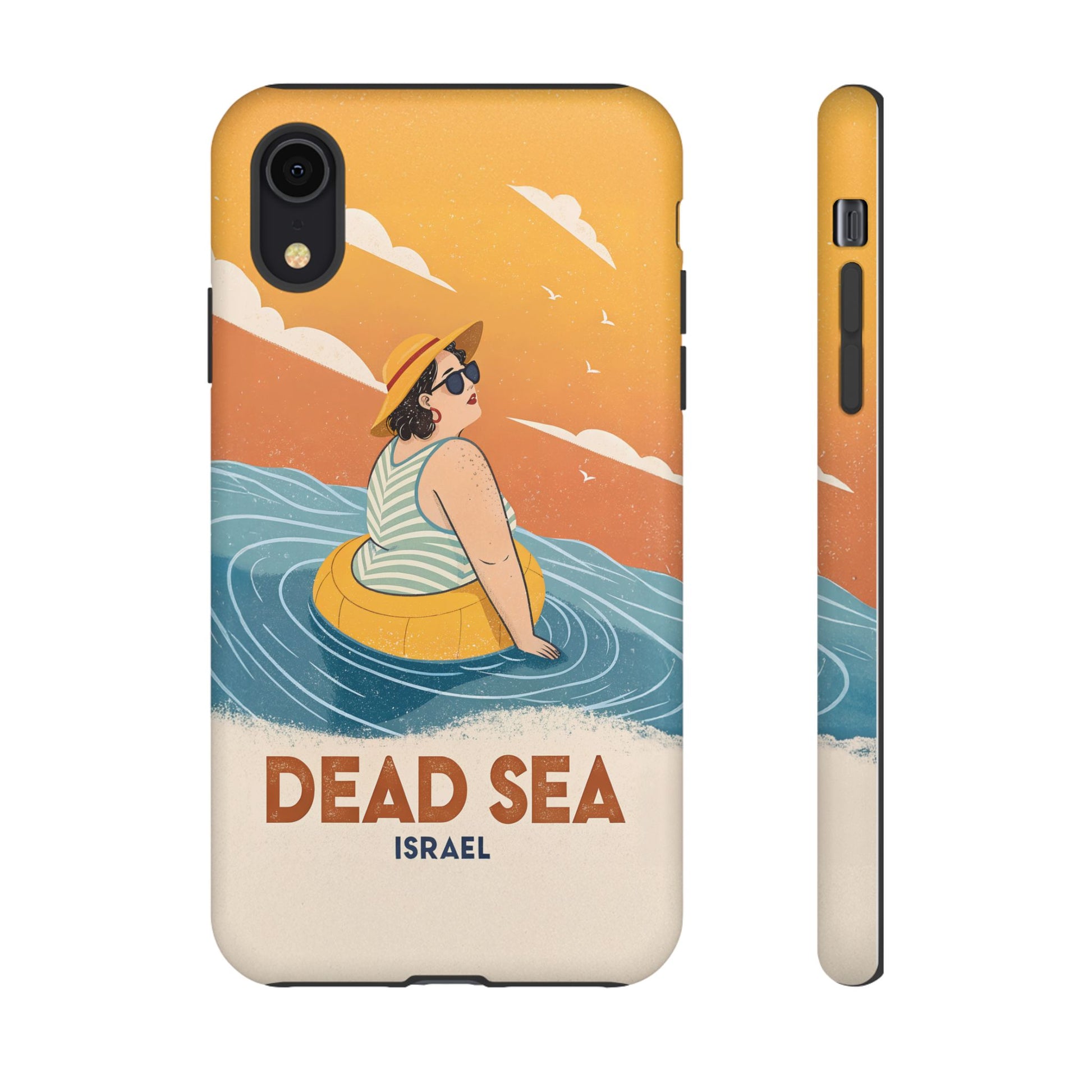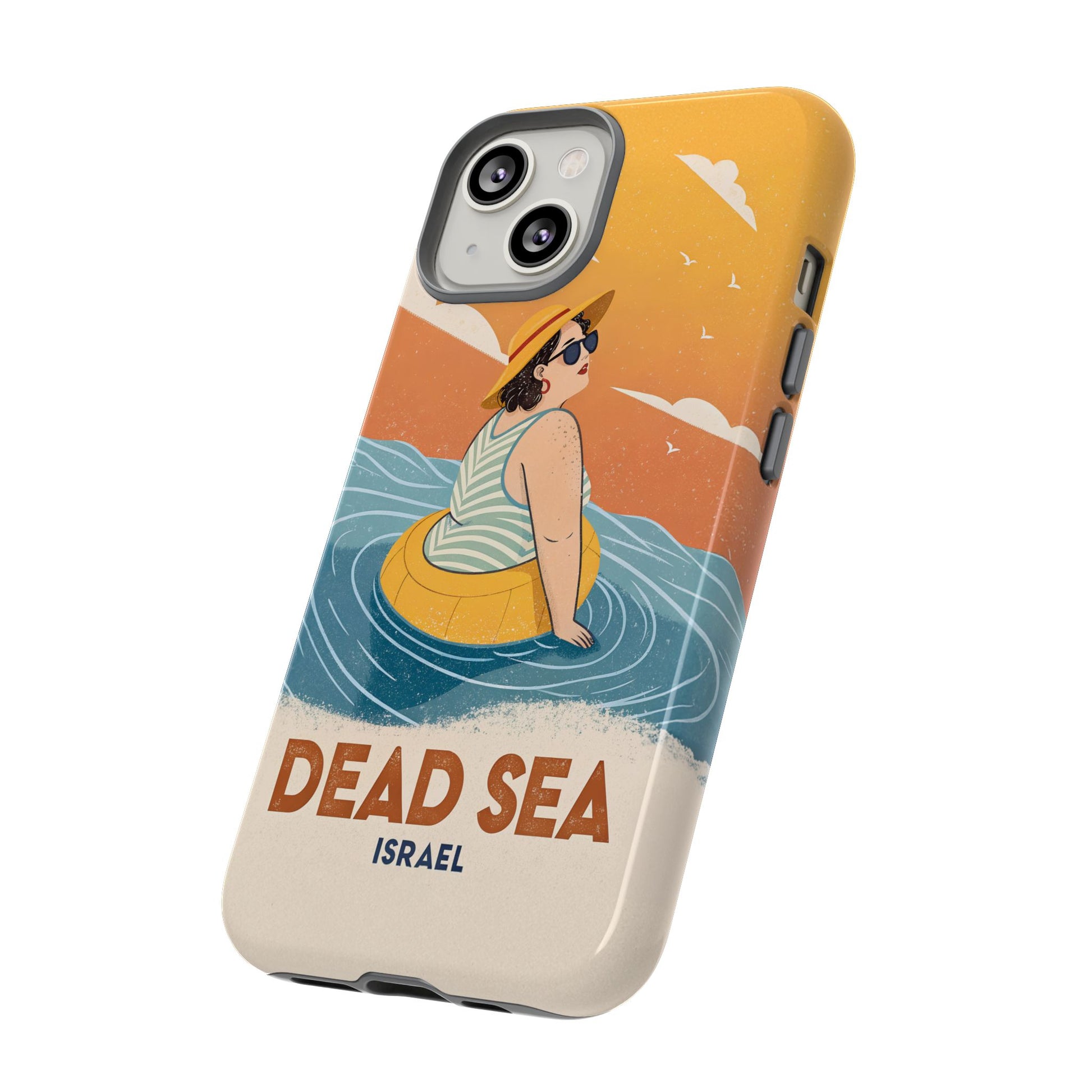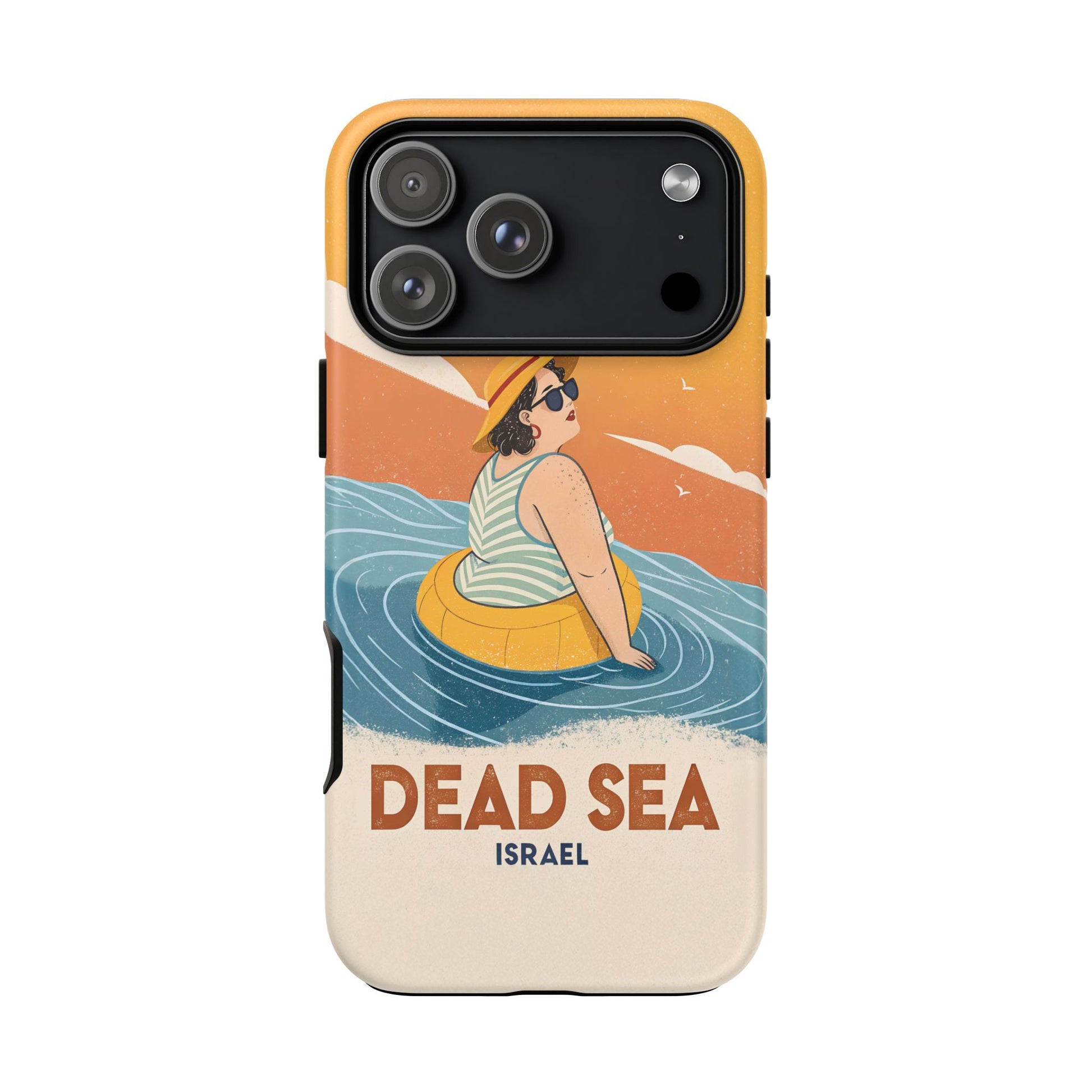 Ta med deg roen, magien og humoren fra Dødehavet med dette flotte retro-inspirerte mobildekselet. Designet viser en avslappet kvinne som flyter på det mineralrike vannet, omringet av myke blå bølger og en varm oransje himmel. Det kunstneriske uttrykket kombinerer vintage feriestemning med den ikoniske opplevelsen av å sveve uten anstrengelse på verdens salteste sjø.
