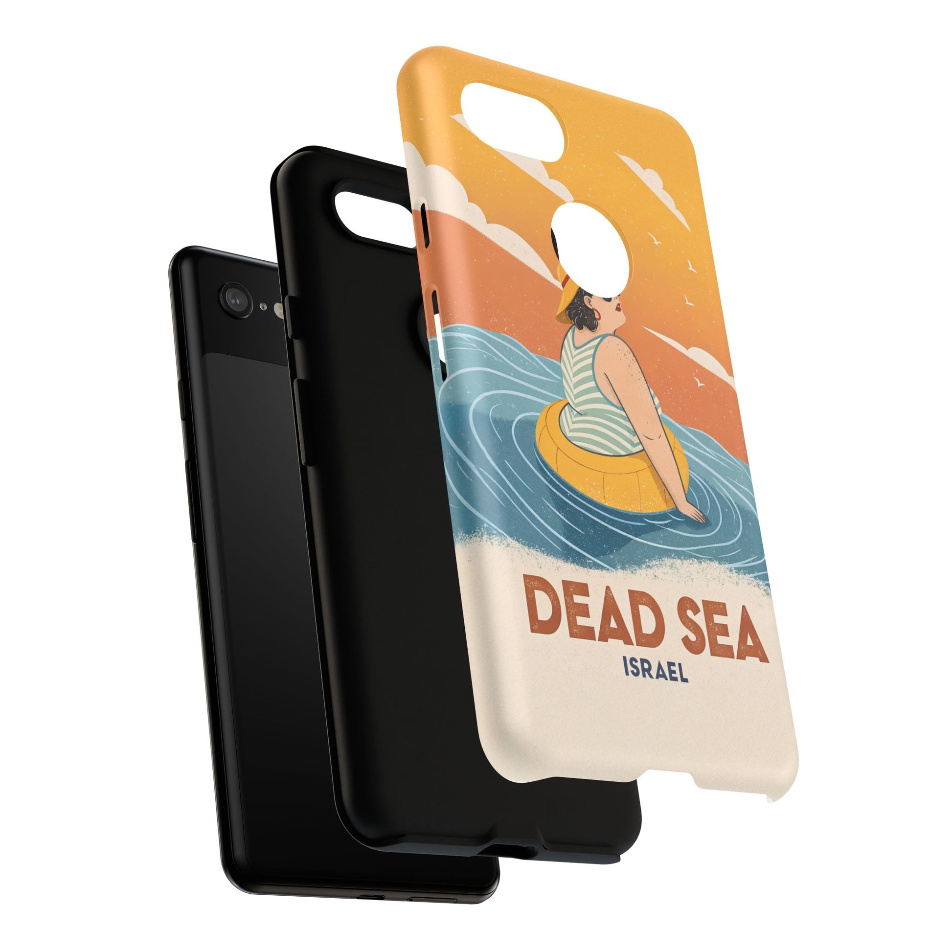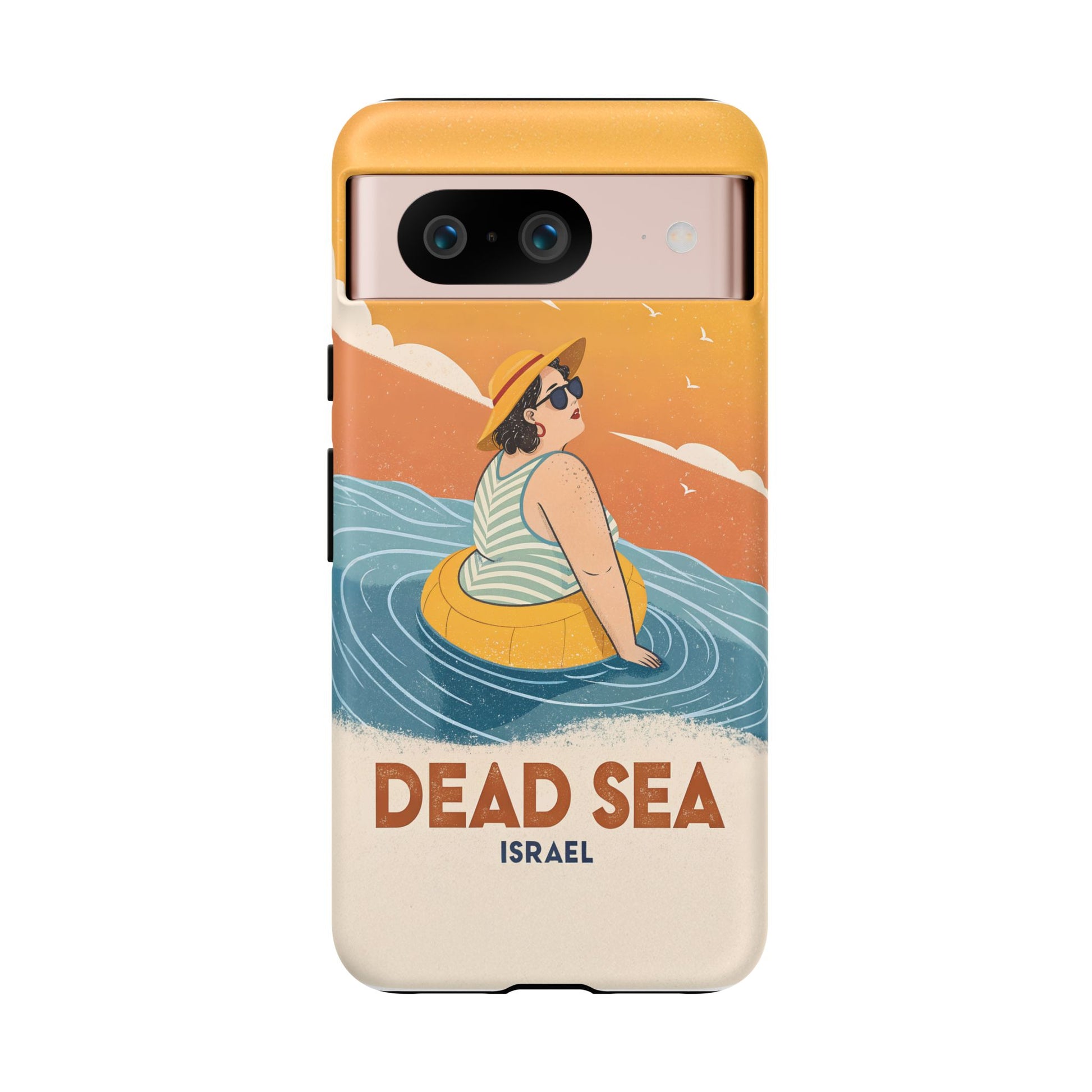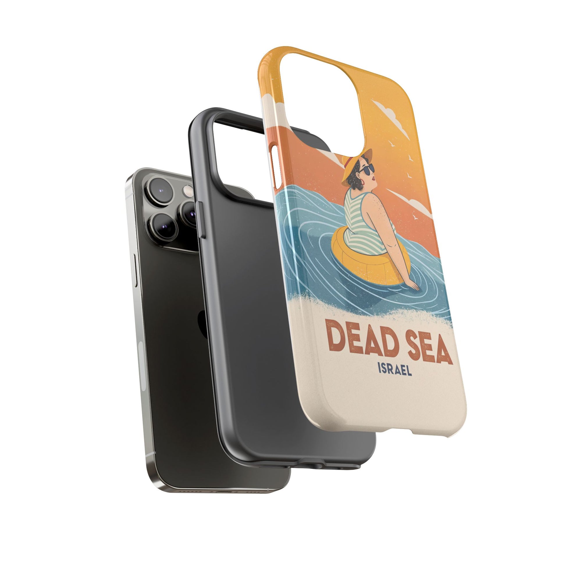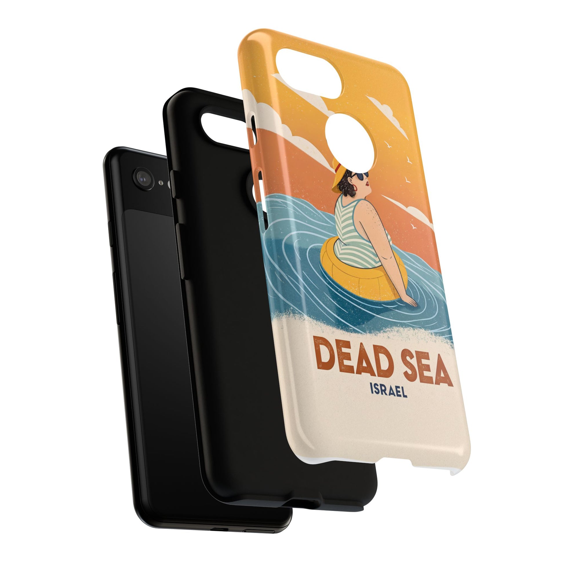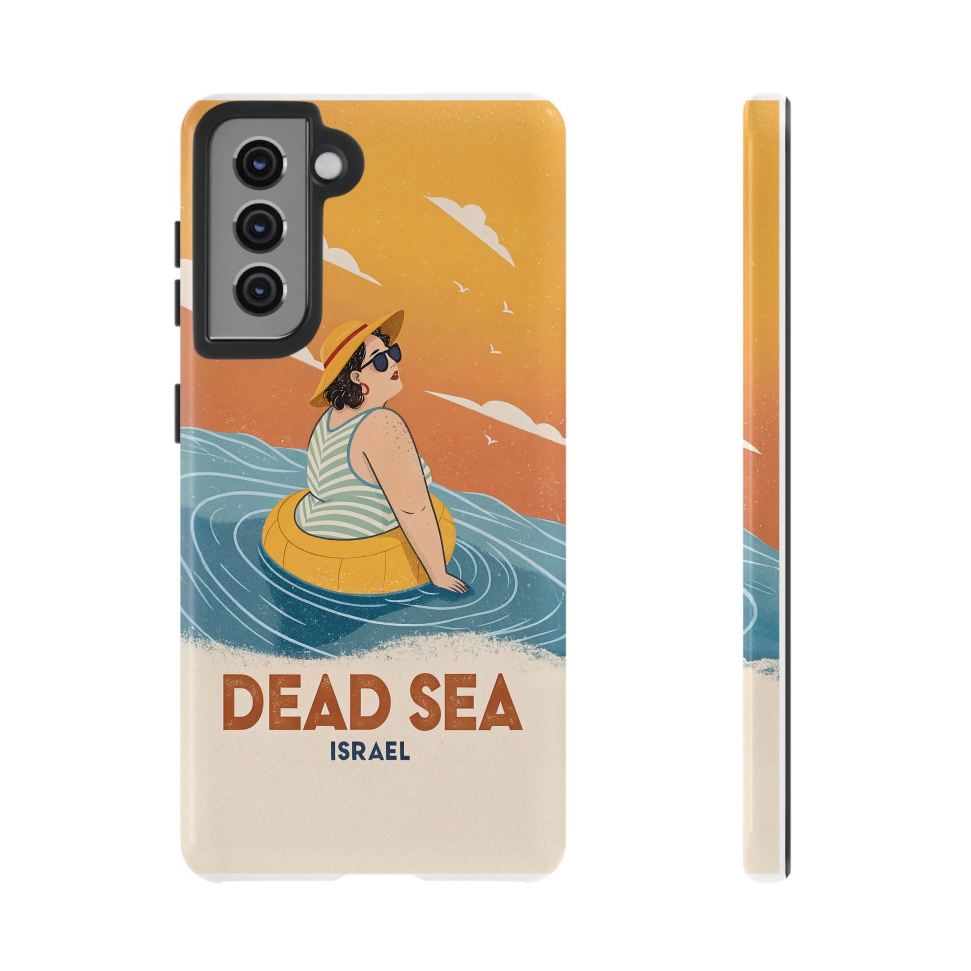 Ta med deg roen, magien og humoren fra Dødehavet med dette flotte retro-inspirerte mobildekselet. Designet viser en avslappet kvinne som flyter på det mineralrike vannet, omringet av myke blå bølger og en varm oransje himmel. Det kunstneriske uttrykket kombinerer vintage feriestemning med den ikoniske opplevelsen av å sveve uten anstrengelse på verdens salteste sjø.