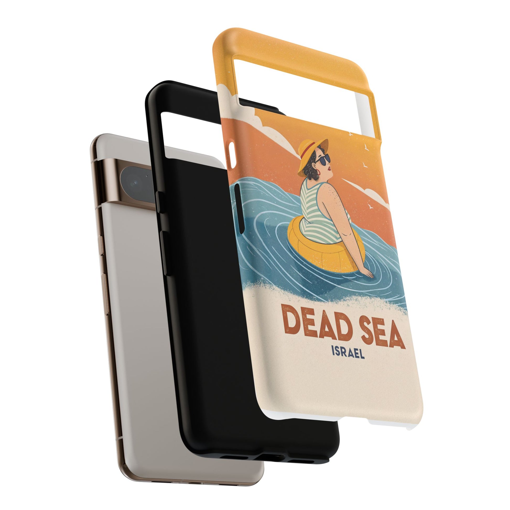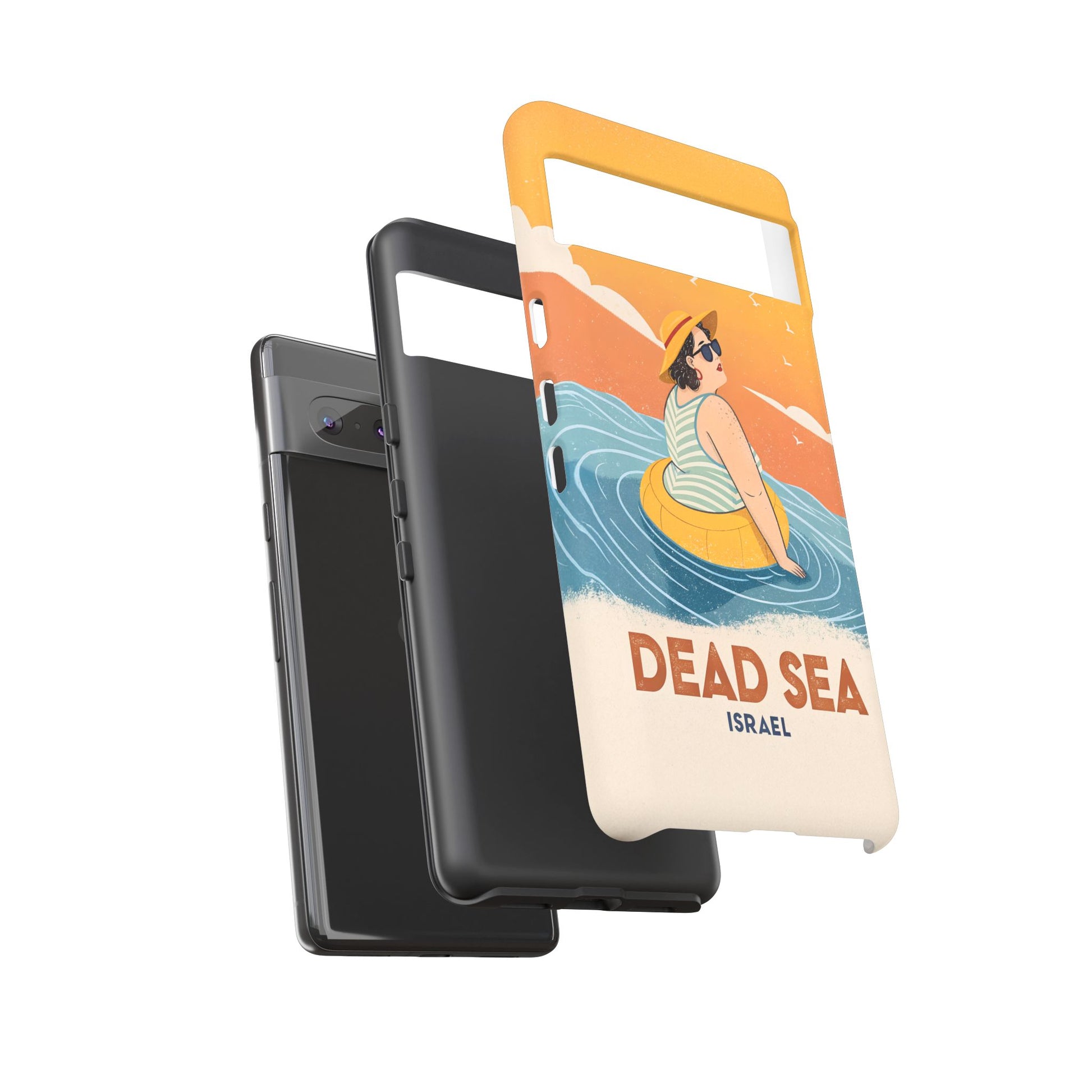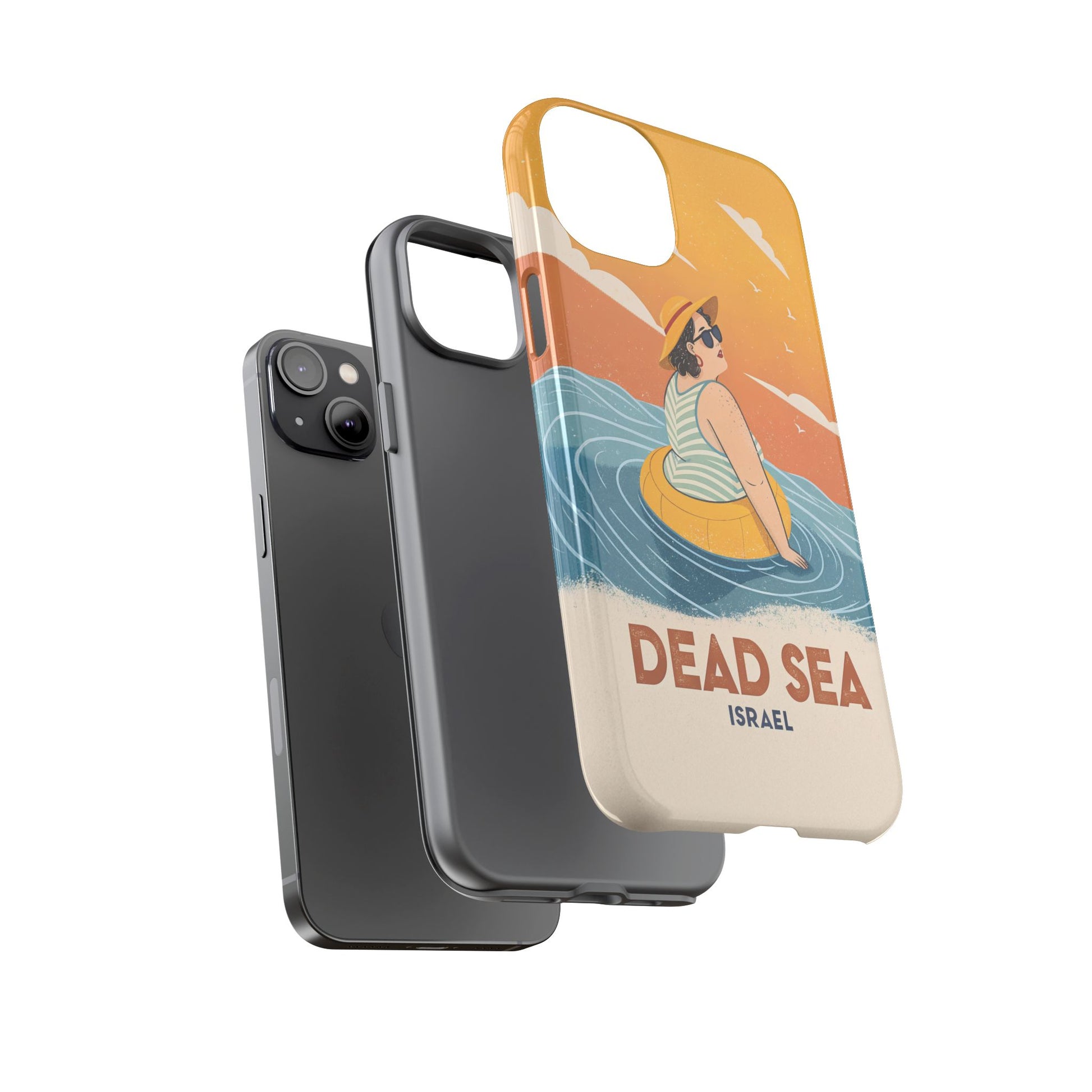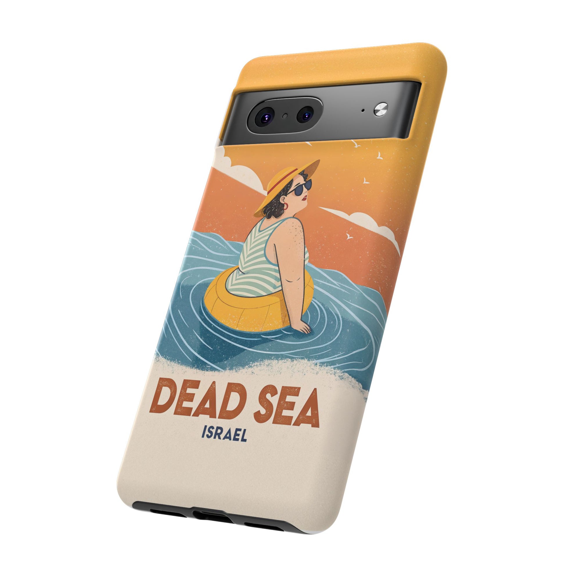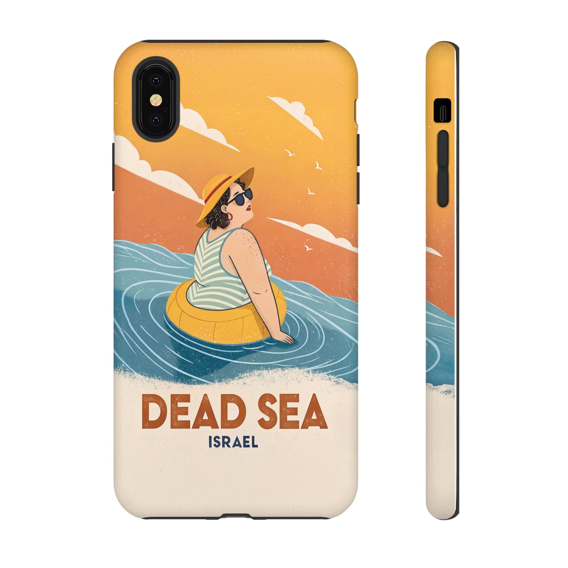 Ta med deg roen, magien og humoren fra Dødehavet med dette flotte retro-inspirerte mobildekselet. Designet viser en avslappet kvinne som flyter på det mineralrike vannet, omringet av myke blå bølger og en varm oransje himmel. Det kunstneriske uttrykket kombinerer vintage feriestemning med den ikoniske opplevelsen av å sveve uten anstrengelse på verdens salteste sjø.