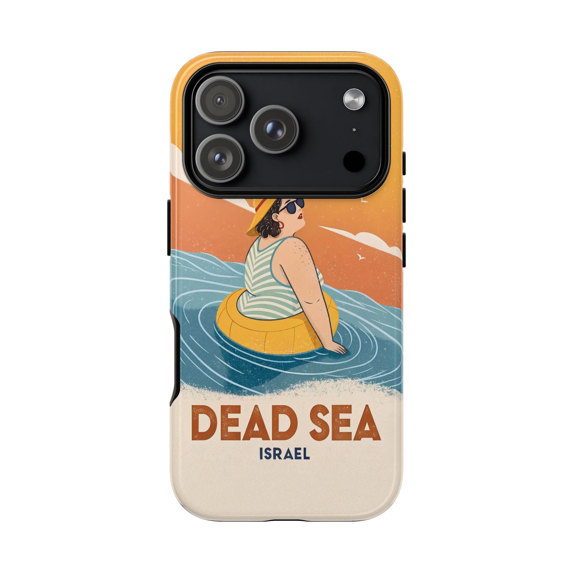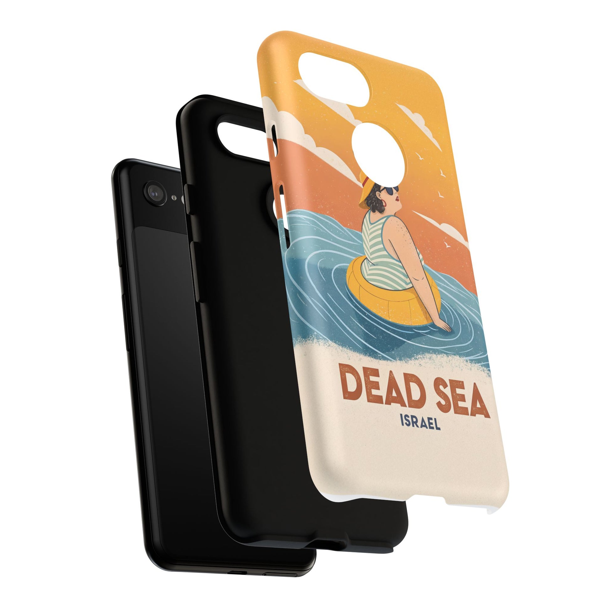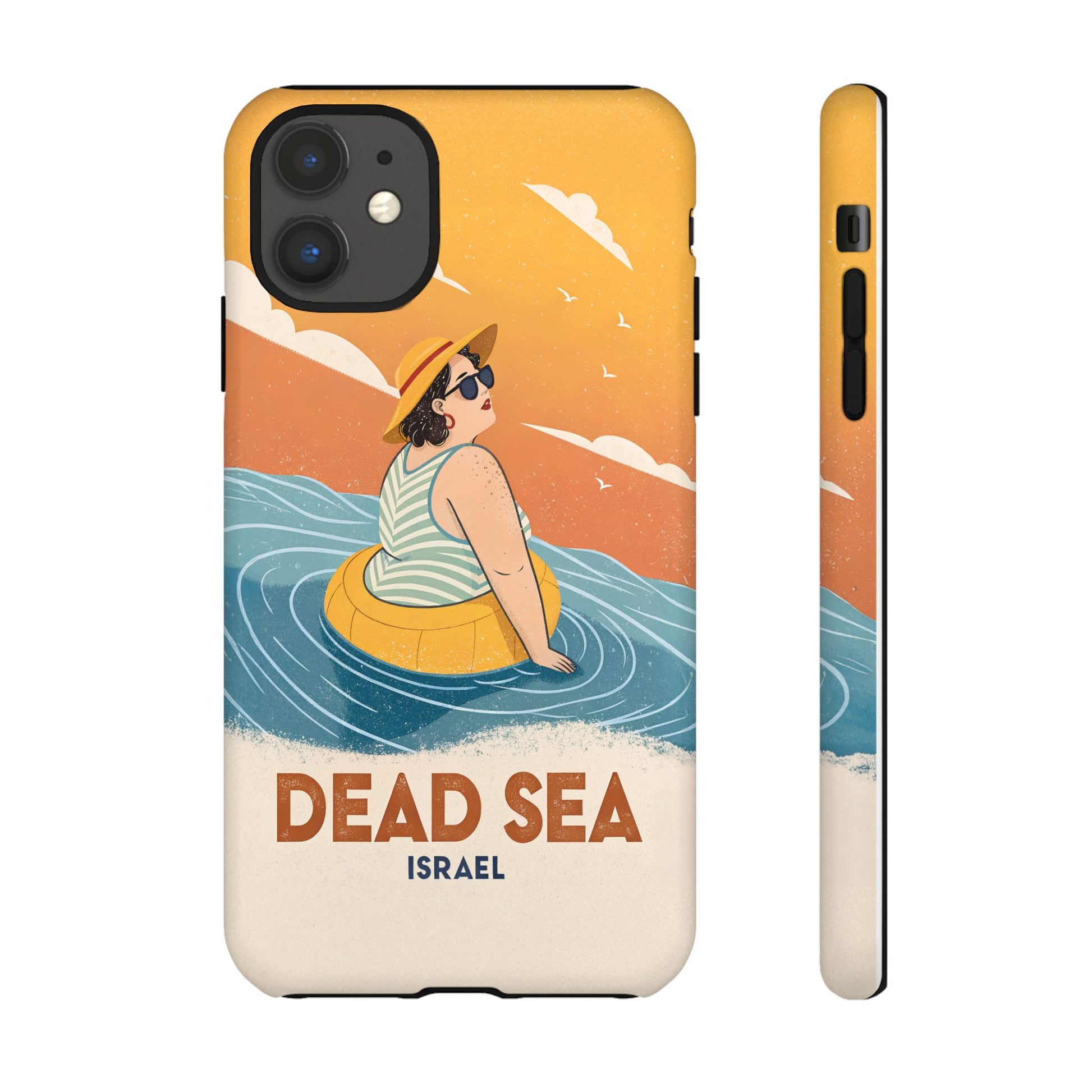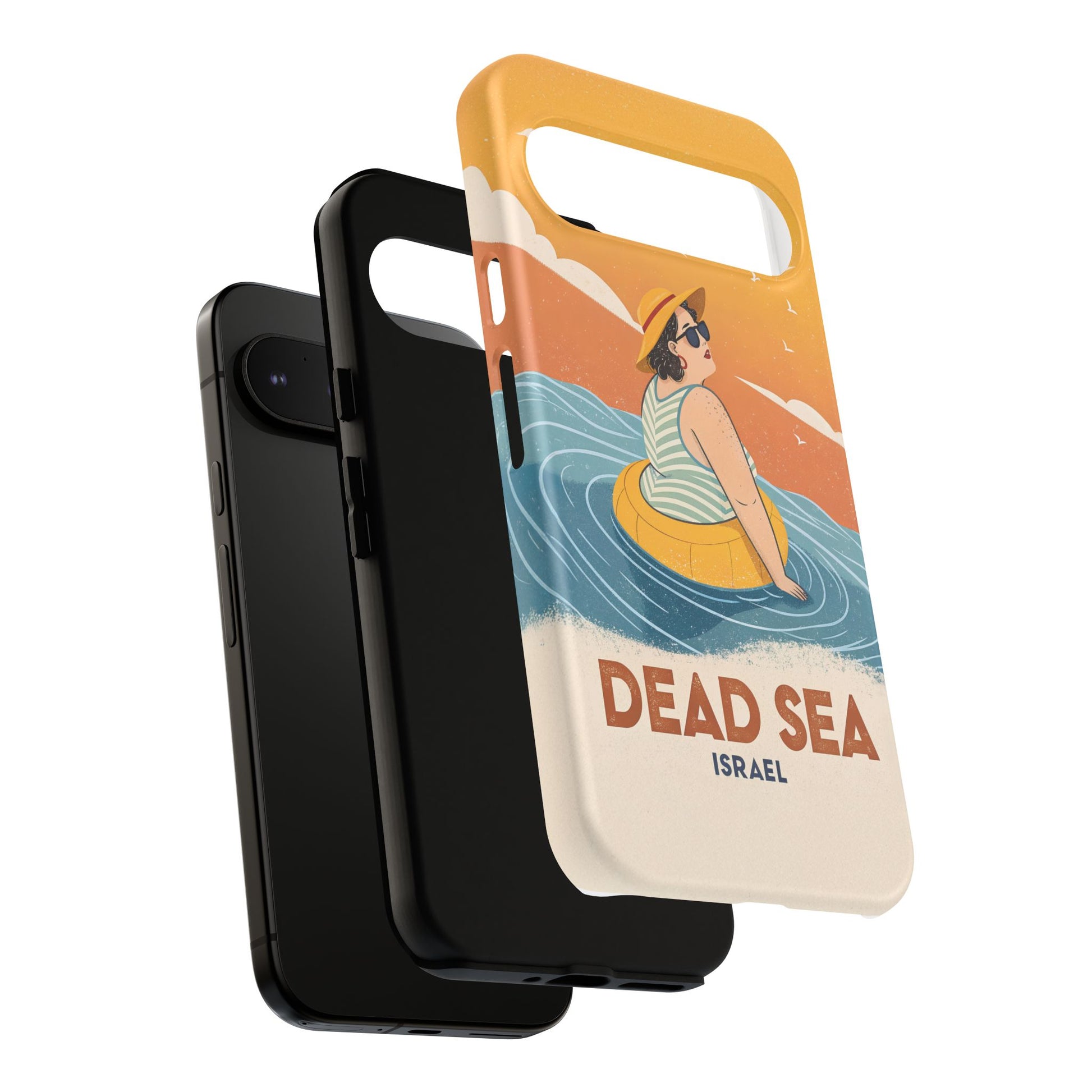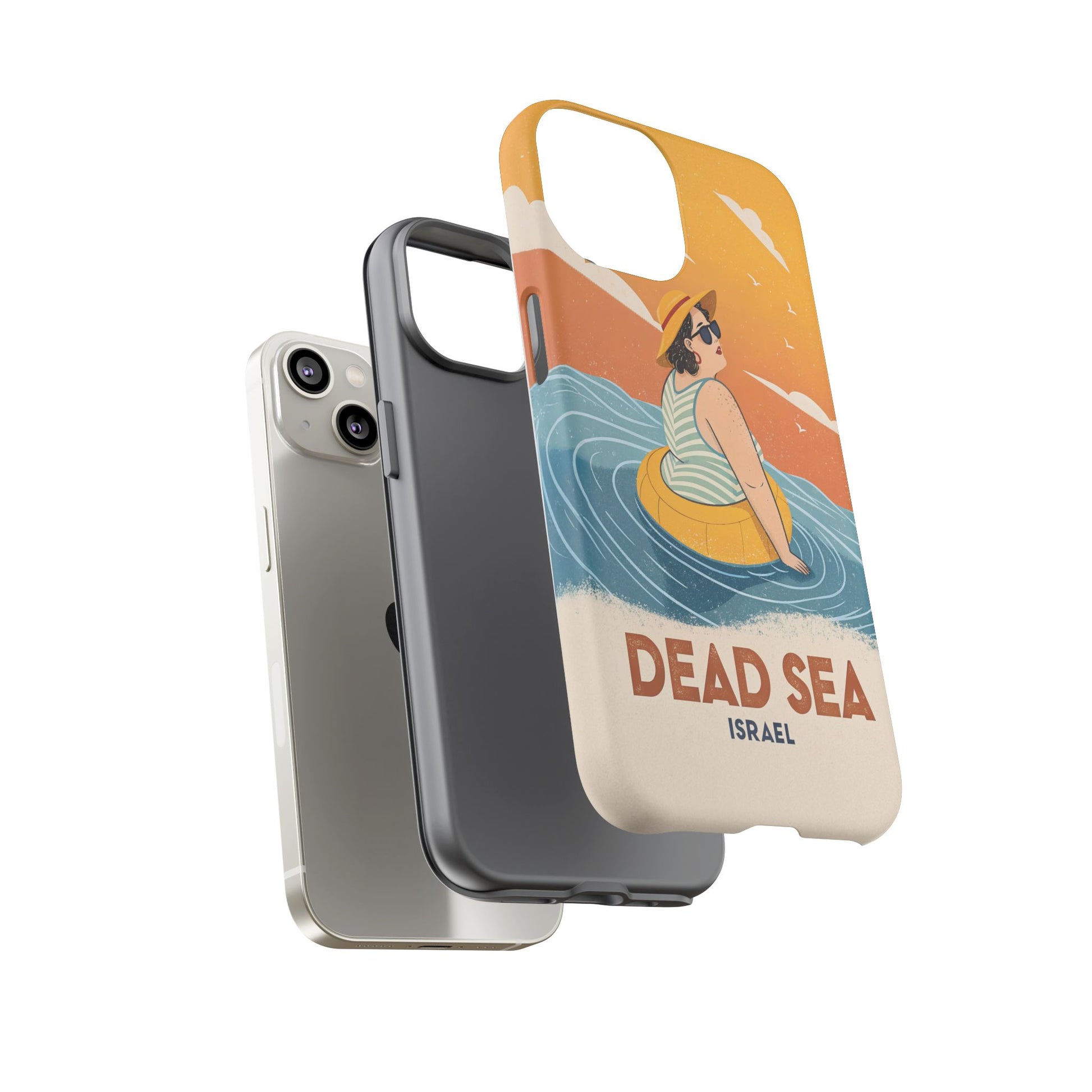 Ta med deg roen, magien og humoren fra Dødehavet med dette flotte retro-inspirerte mobildekselet. Designet viser en avslappet kvinne som flyter på det mineralrike vannet, omringet av myke blå bølger og en varm oransje himmel. Det kunstneriske uttrykket kombinerer vintage feriestemning med den ikoniske opplevelsen av å sveve uten anstrengelse på verdens salteste sjø.