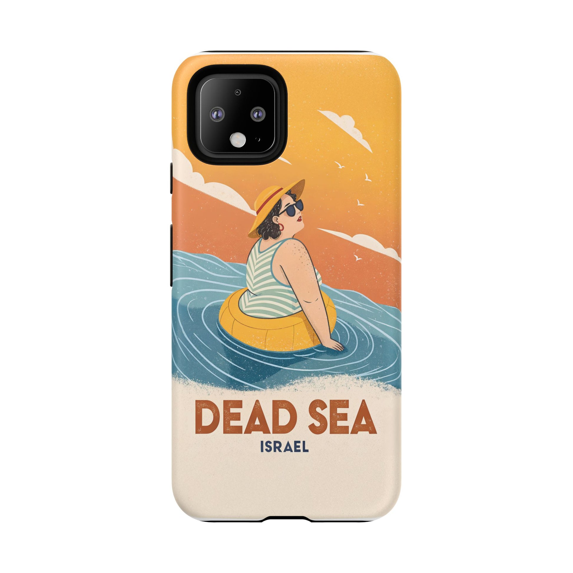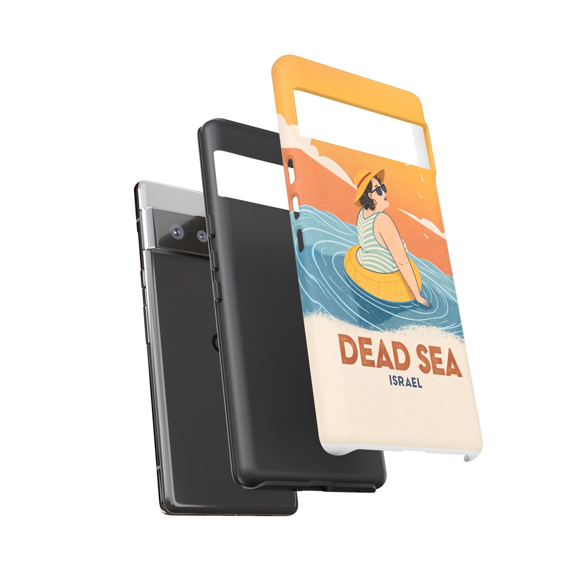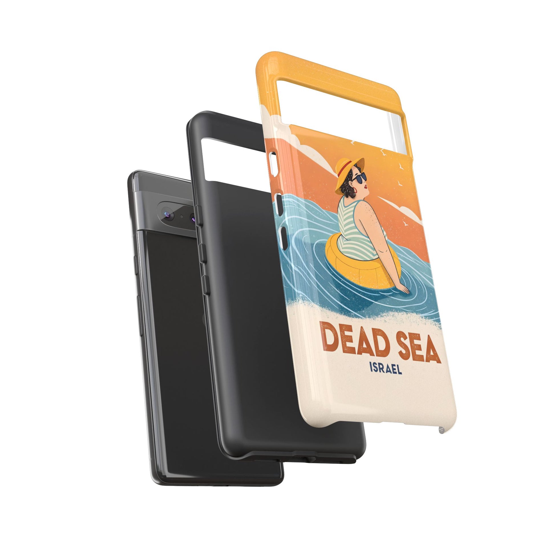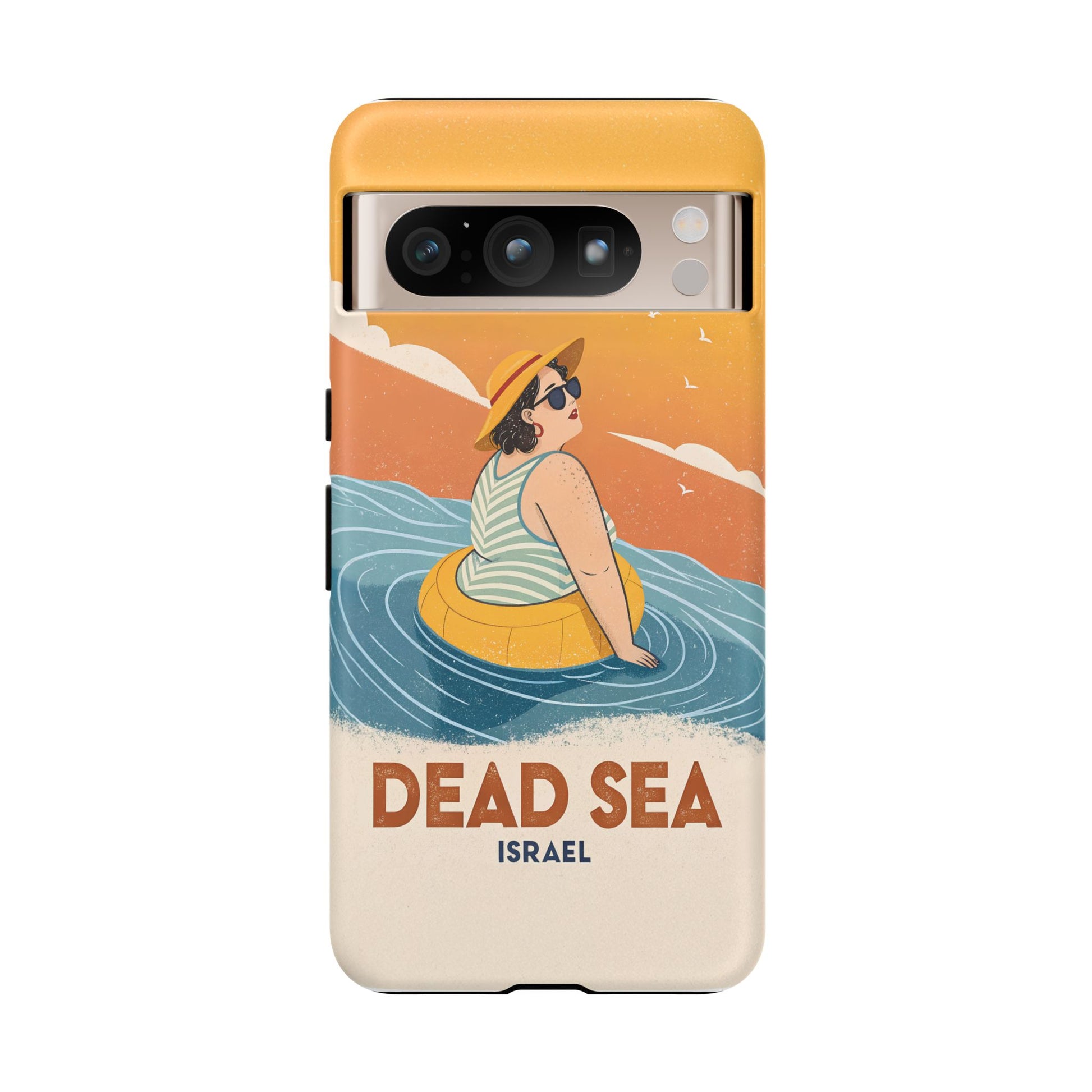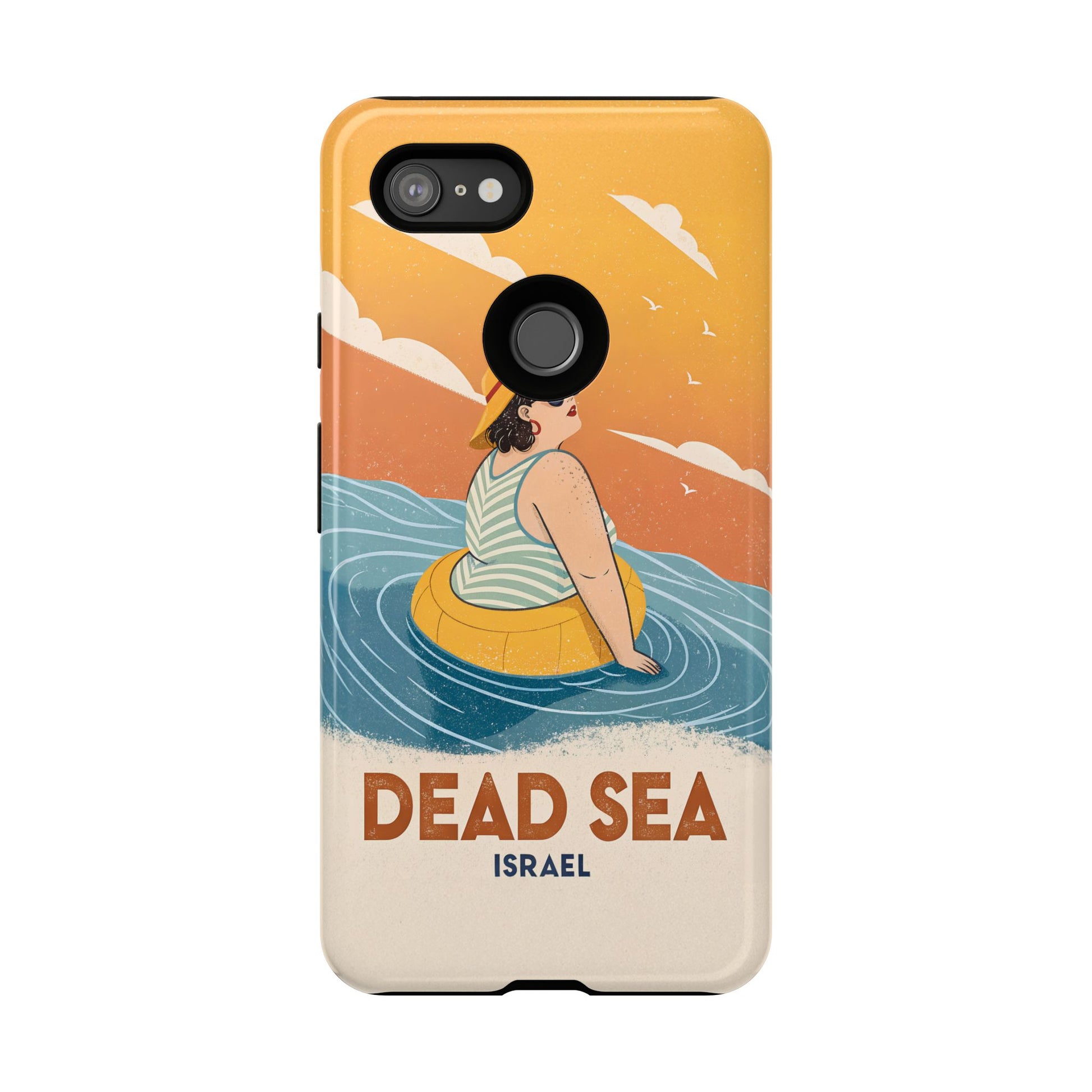 Ta med deg roen, magien og humoren fra Dødehavet med dette flotte retro-inspirerte mobildekselet. Designet viser en avslappet kvinne som flyter på det mineralrike vannet, omringet av myke blå bølger og en varm oransje himmel. Det kunstneriske uttrykket kombinerer vintage feriestemning med den ikoniske opplevelsen av å sveve uten anstrengelse på verdens salteste sjø.