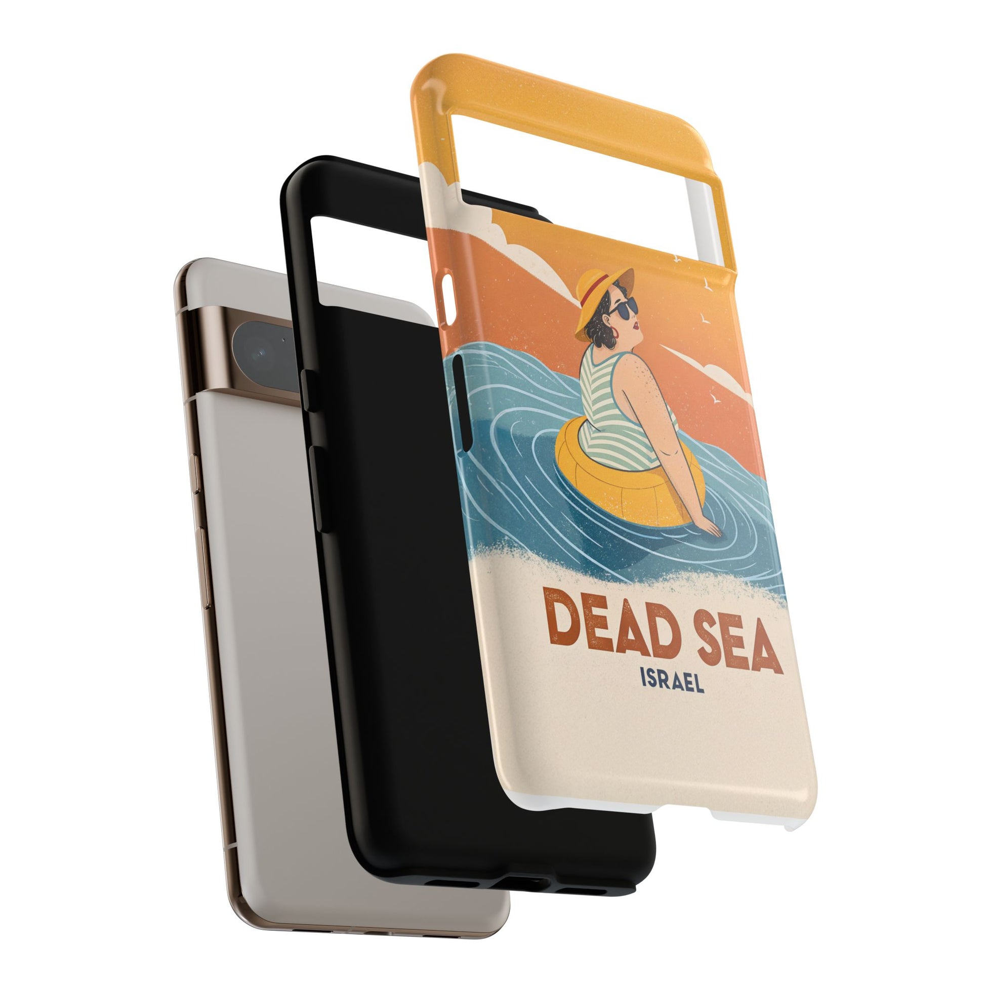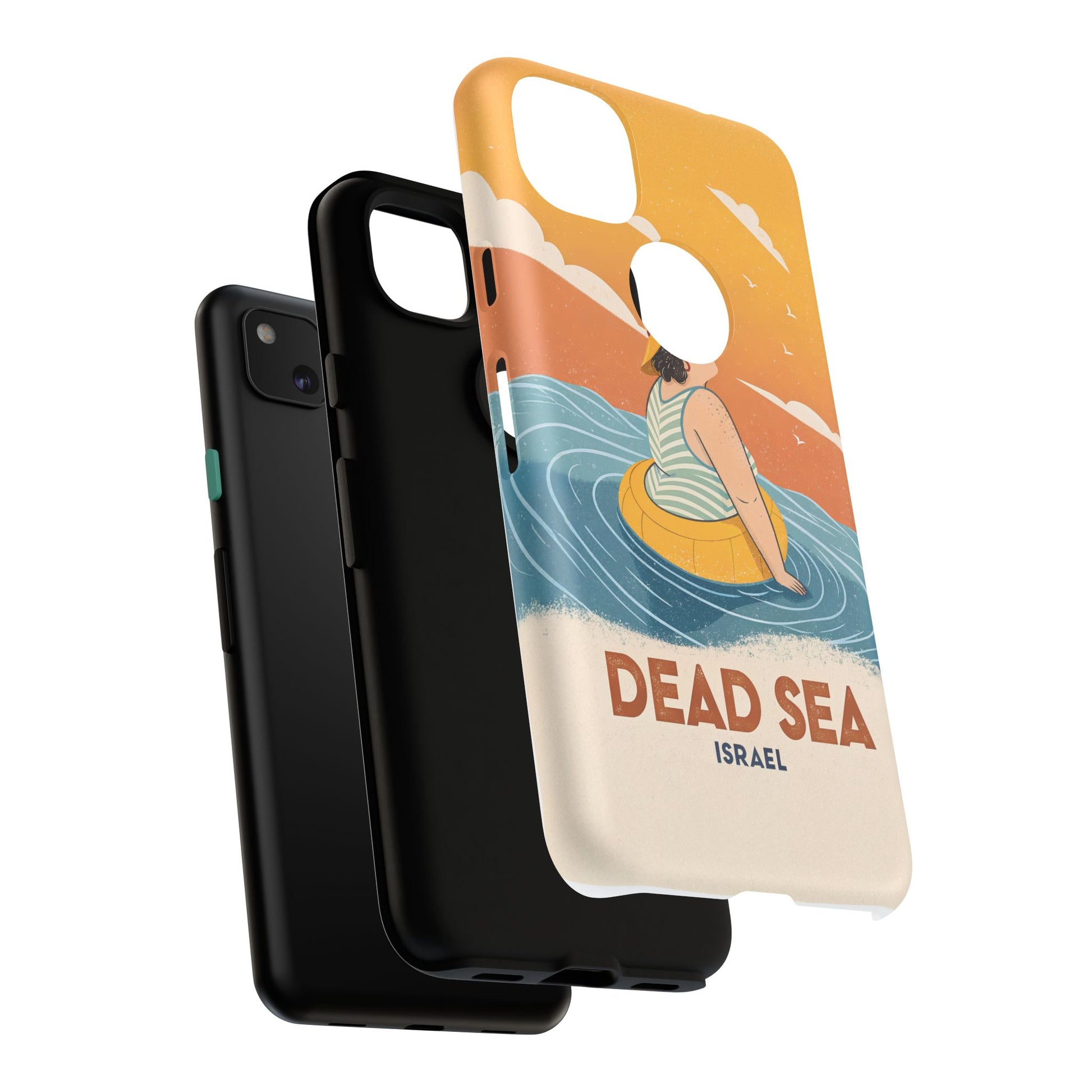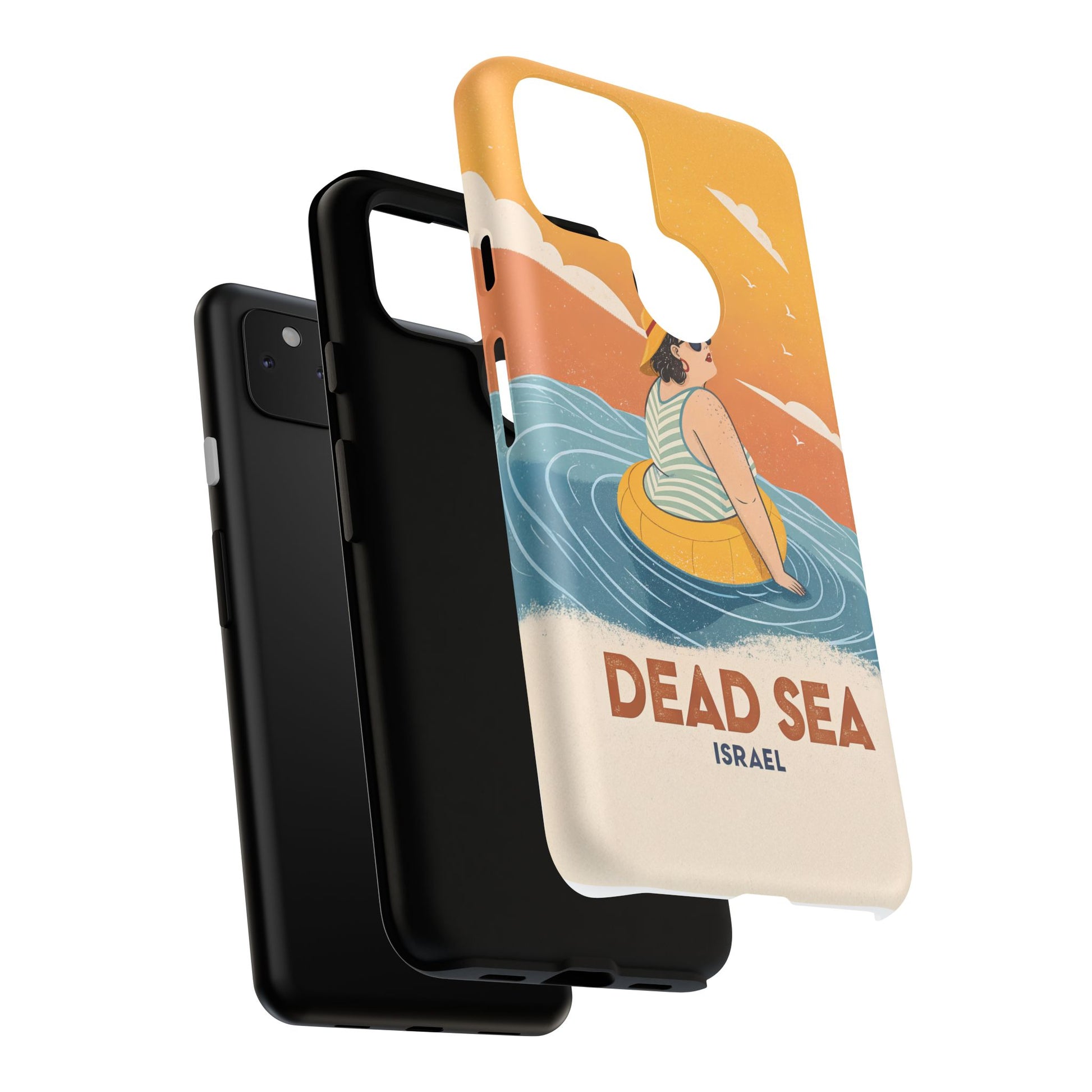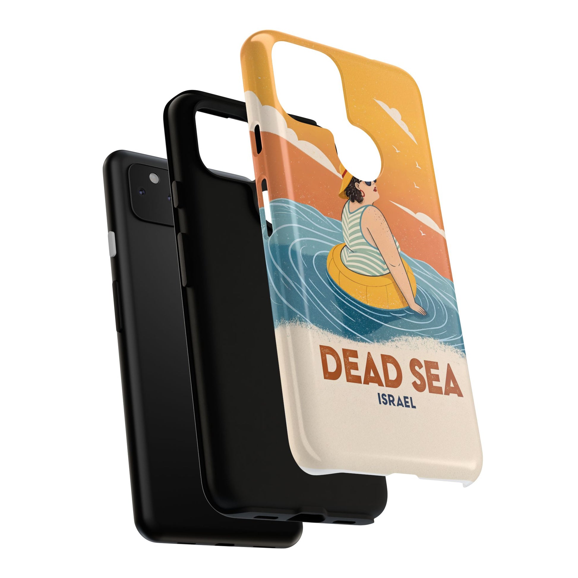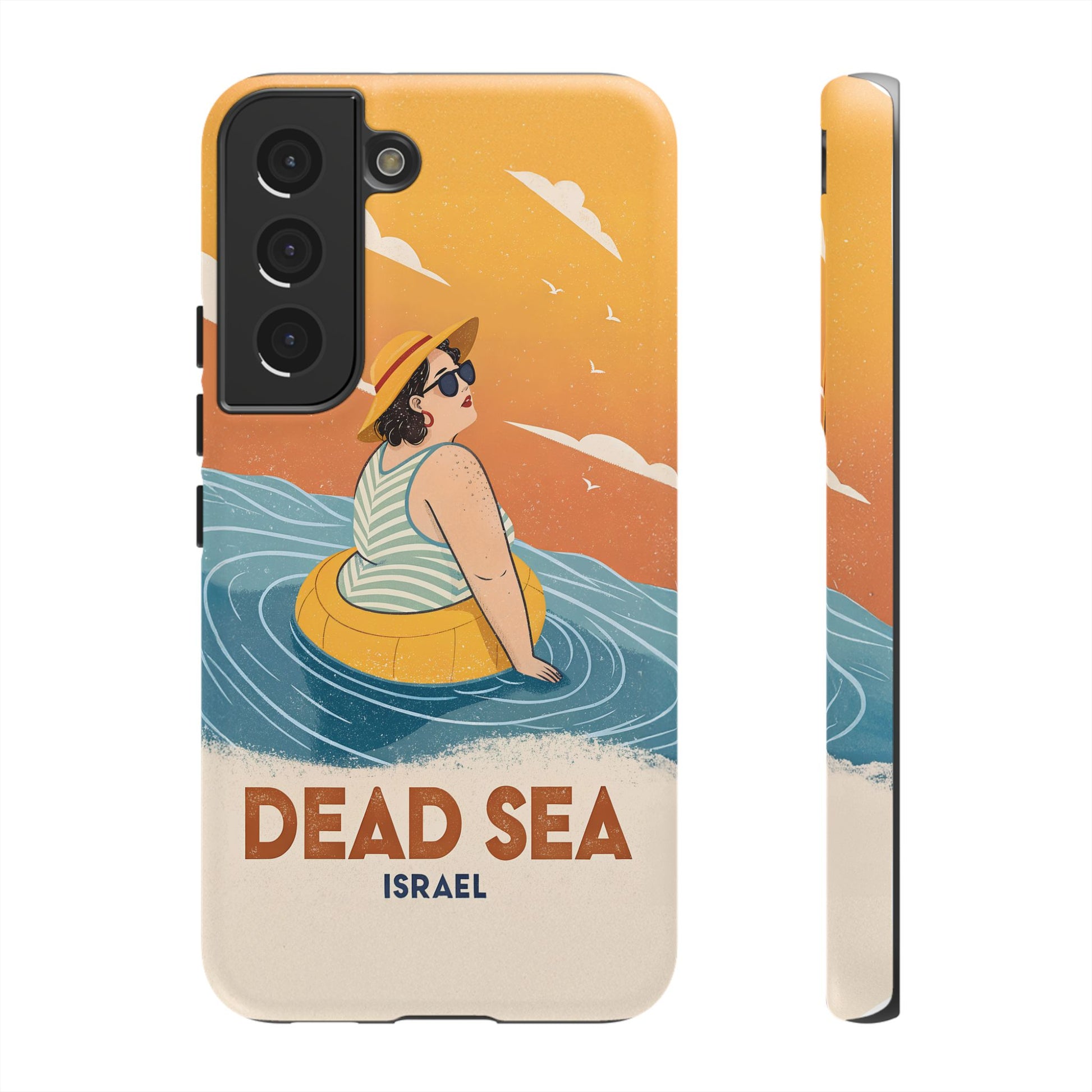 Ta med deg roen, magien og humoren fra Dødehavet med dette flotte retro-inspirerte mobildekselet. Designet viser en avslappet kvinne som flyter på det mineralrike vannet, omringet av myke blå bølger og en varm oransje himmel. Det kunstneriske uttrykket kombinerer vintage feriestemning med den ikoniske opplevelsen av å sveve uten anstrengelse på verdens salteste sjø.
