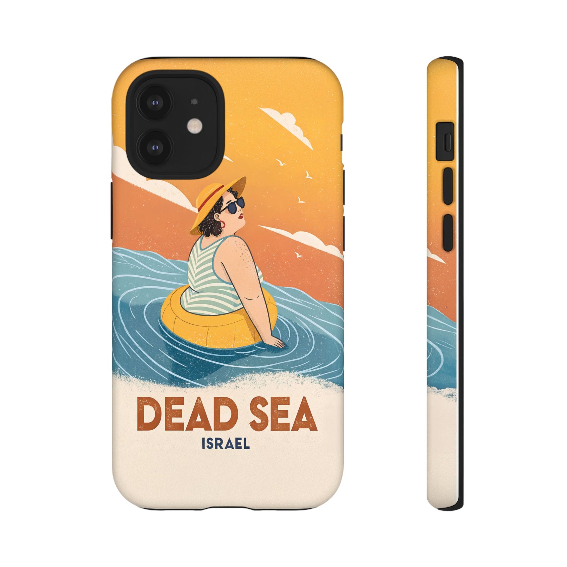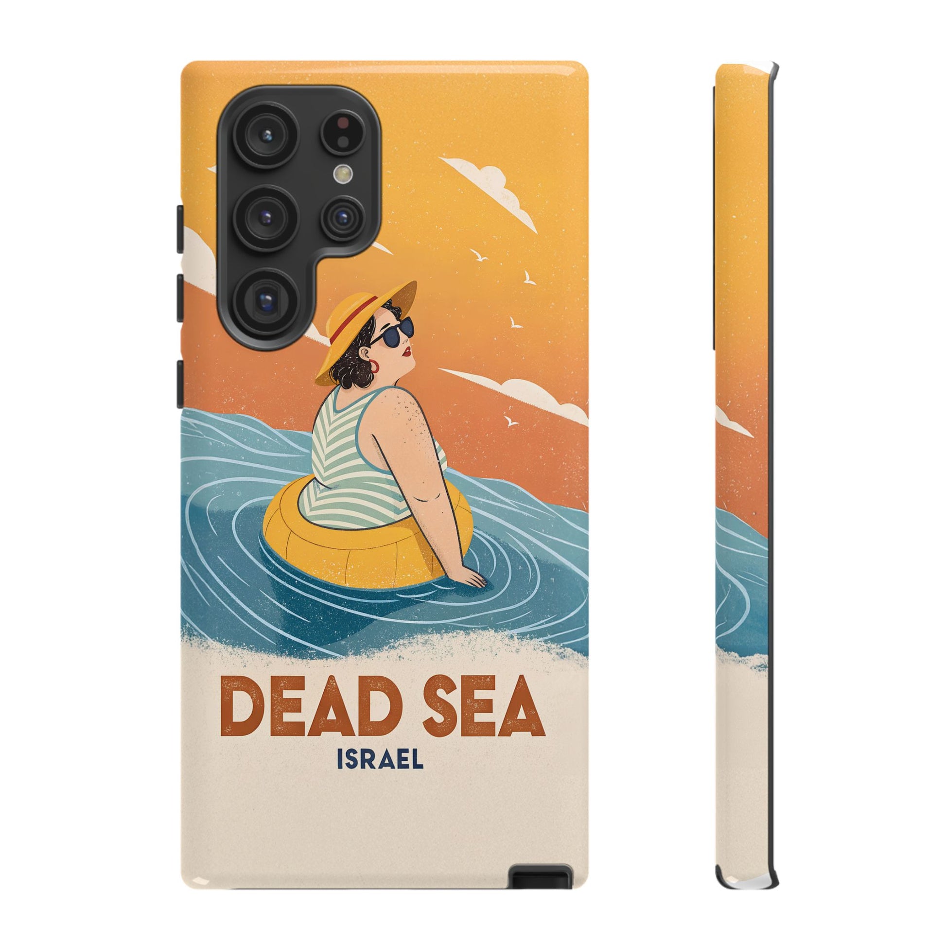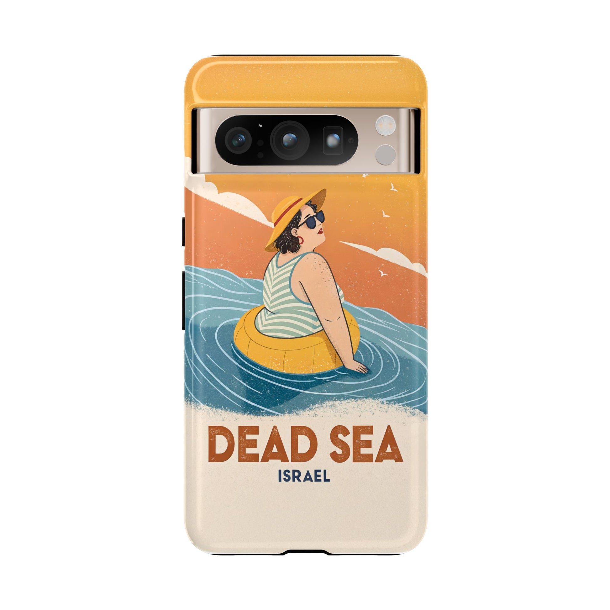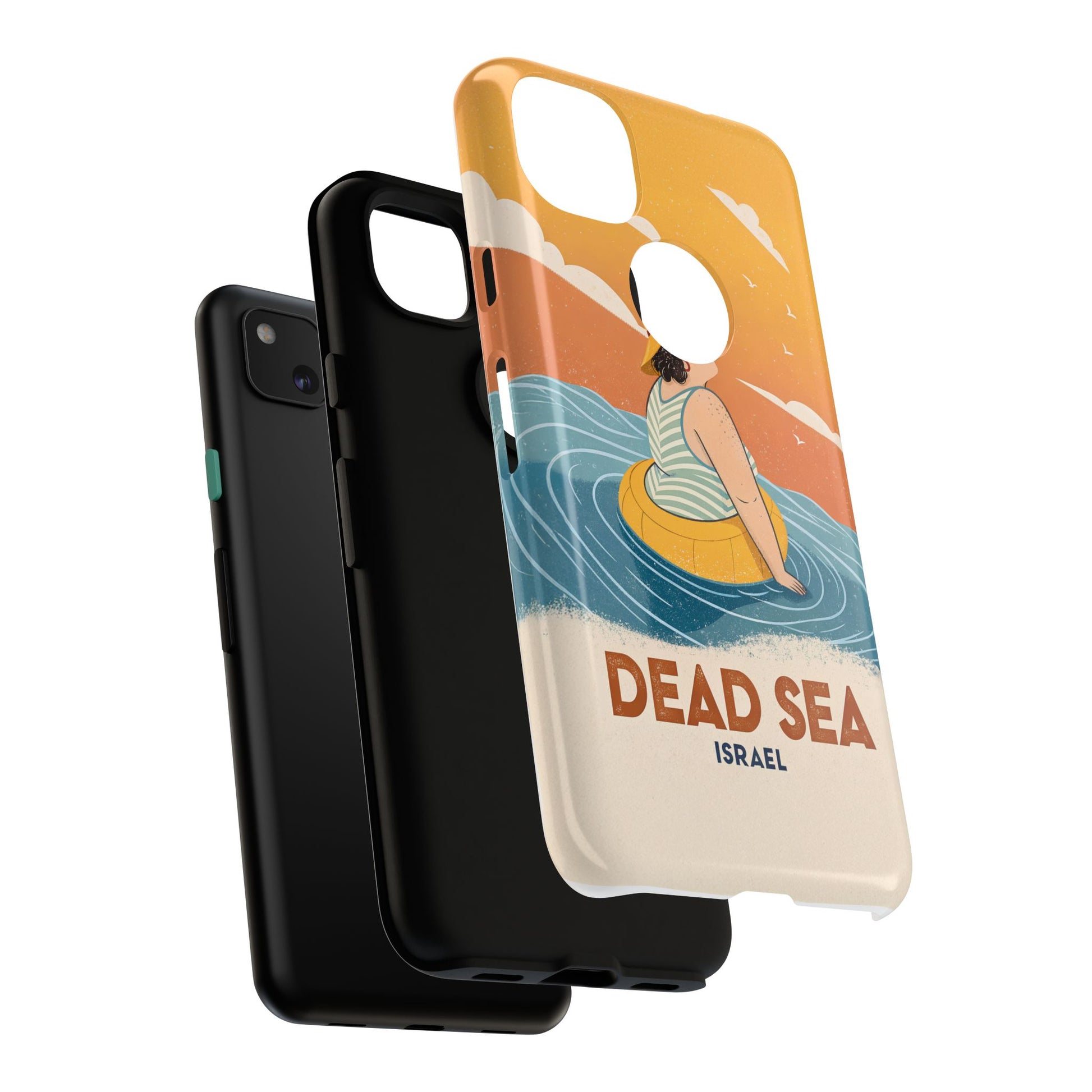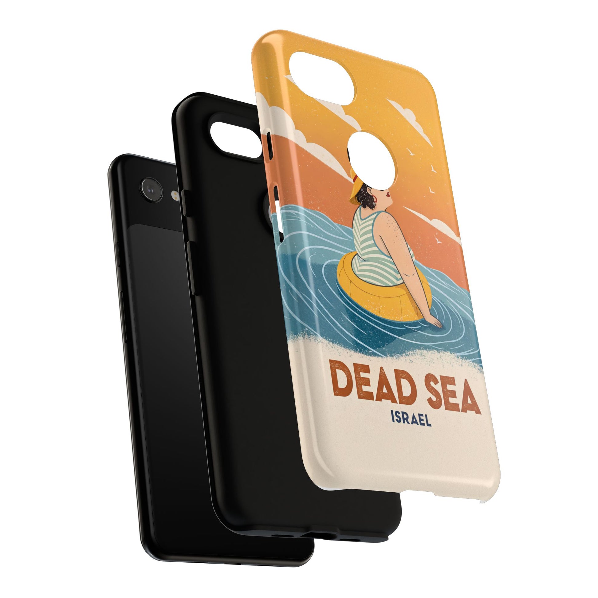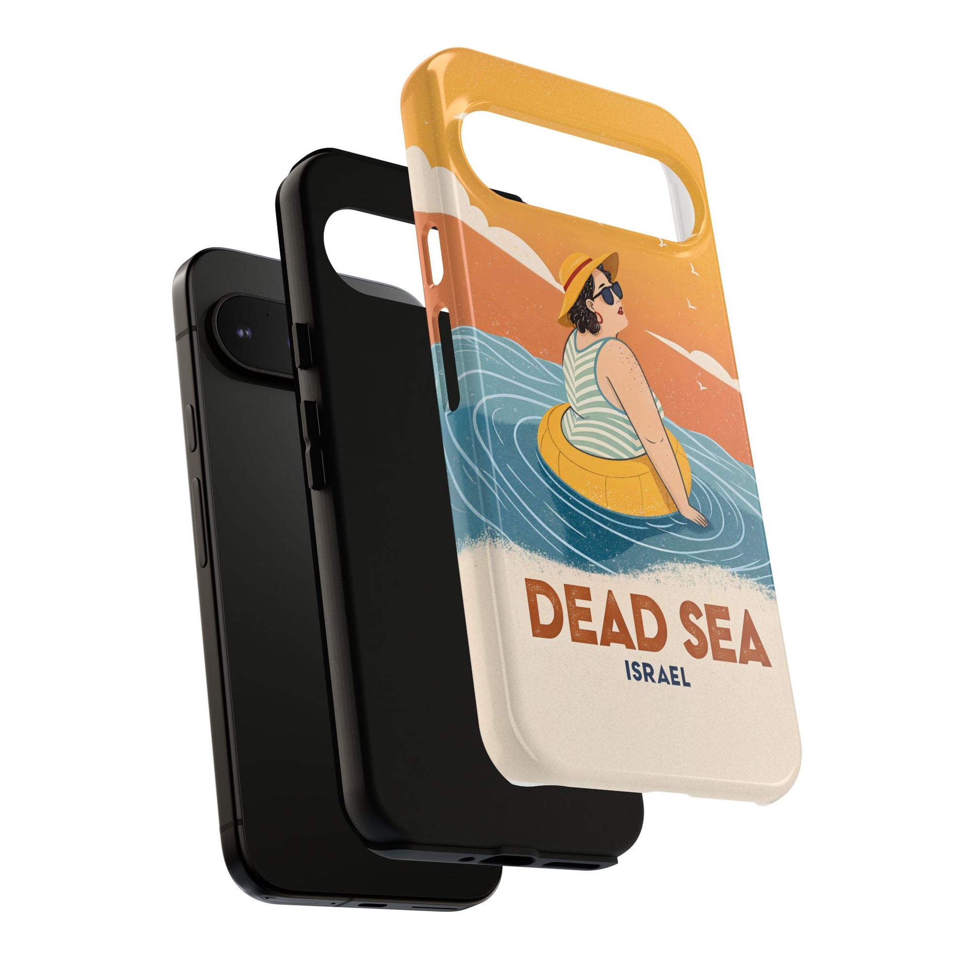 Ta med deg roen, magien og humoren fra Dødehavet med dette flotte retro-inspirerte mobildekselet. Designet viser en avslappet kvinne som flyter på det mineralrike vannet, omringet av myke blå bølger og en varm oransje himmel. Det kunstneriske uttrykket kombinerer vintage feriestemning med den ikoniske opplevelsen av å sveve uten anstrengelse på verdens salteste sjø.