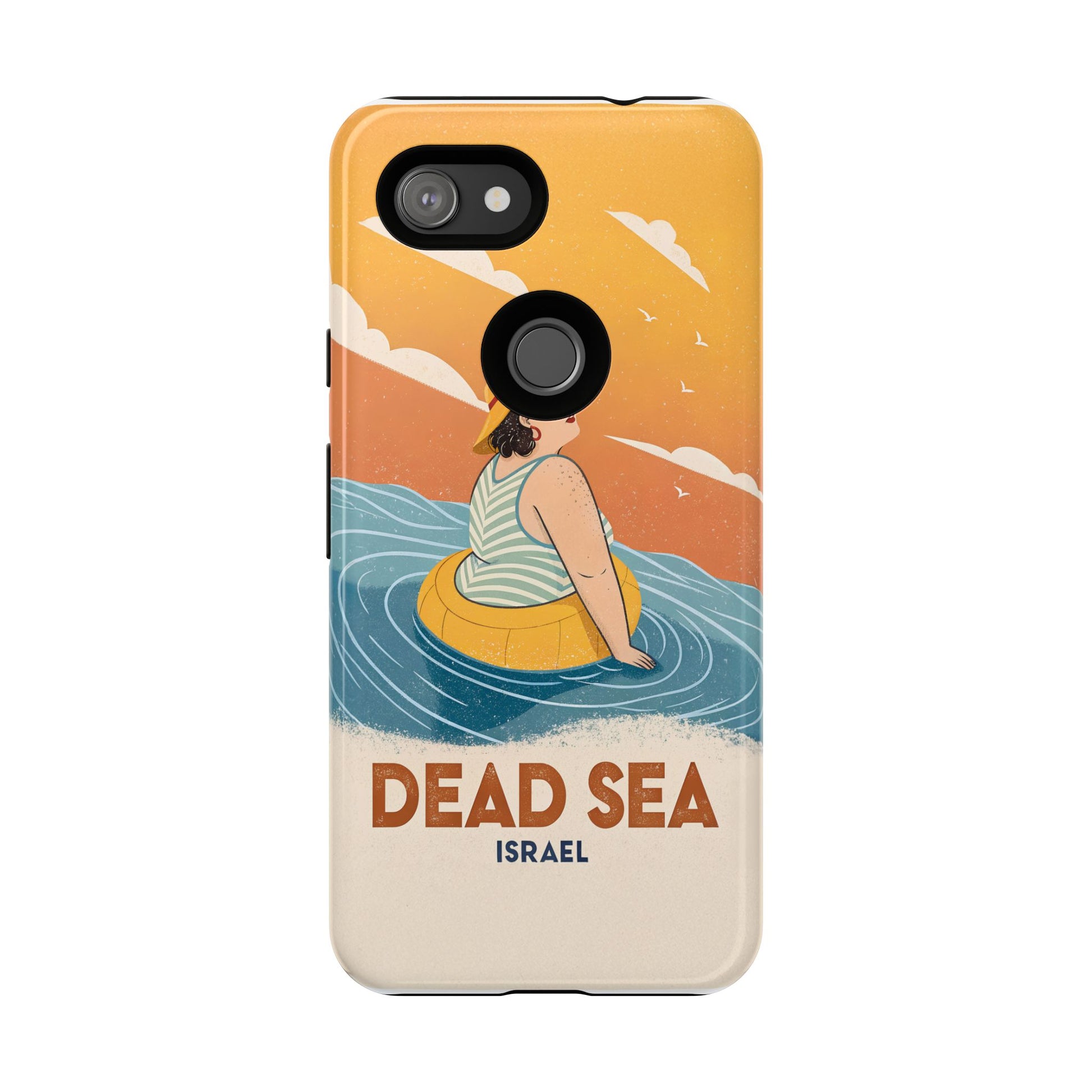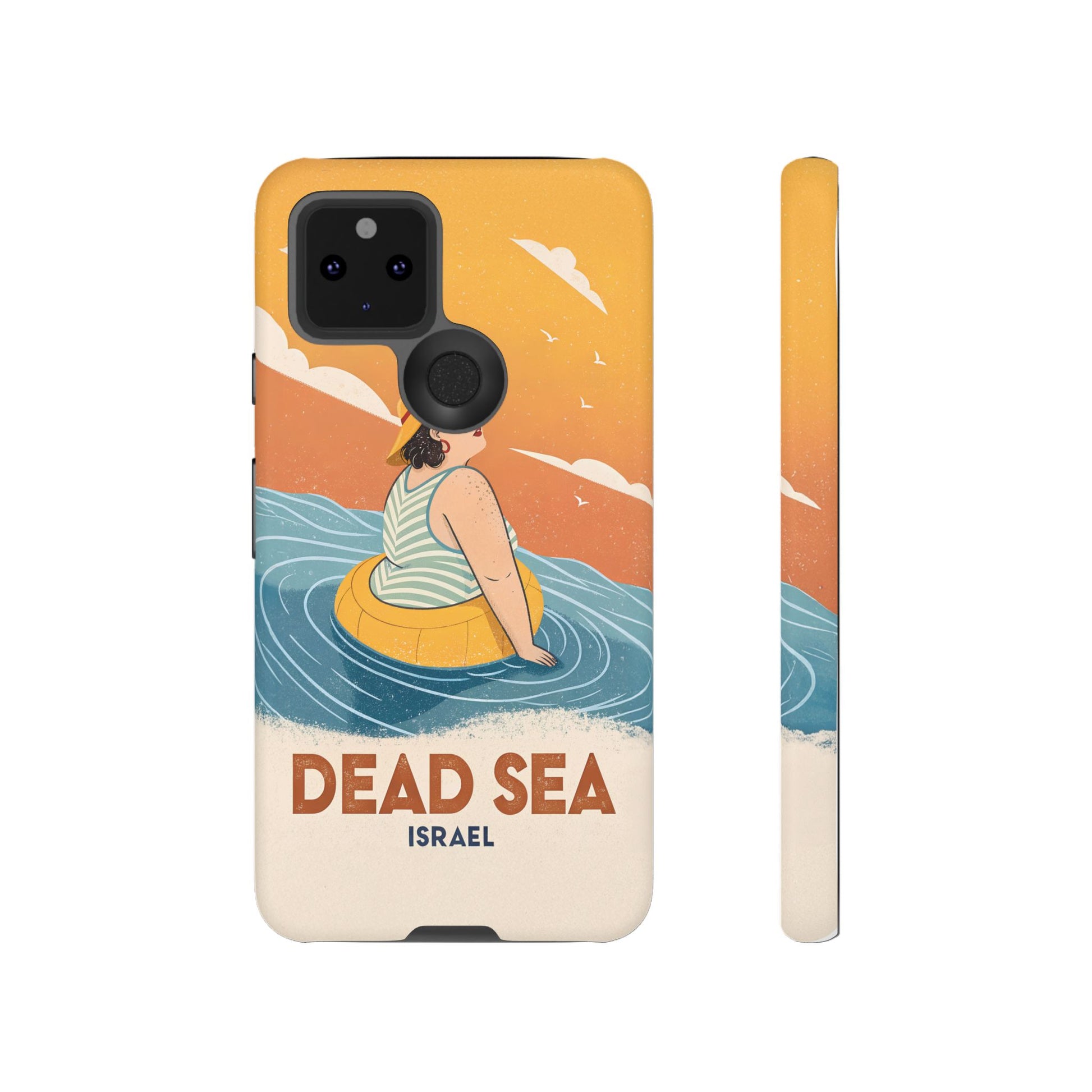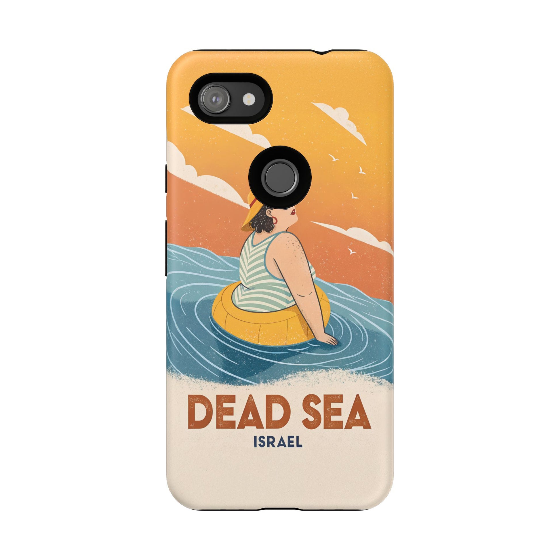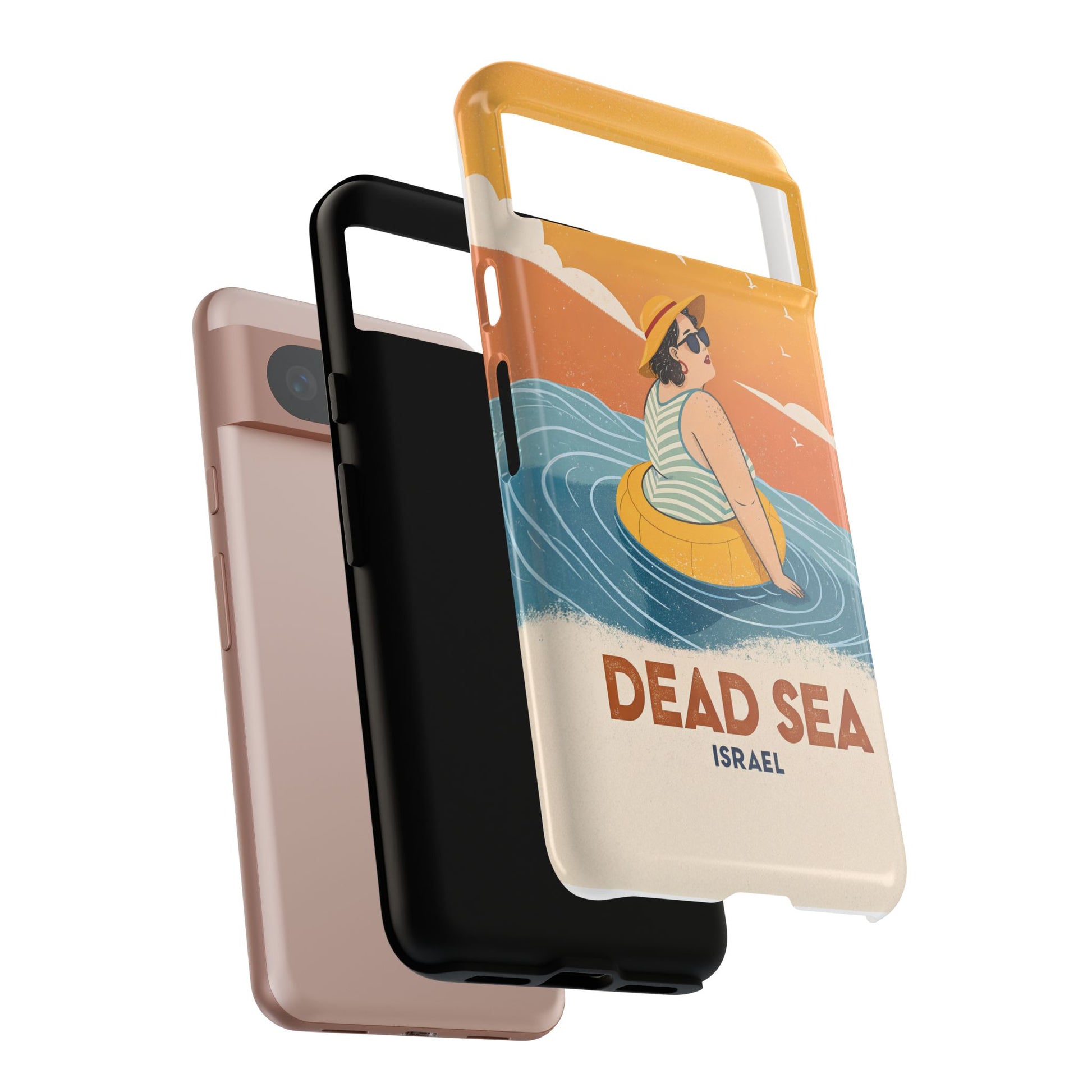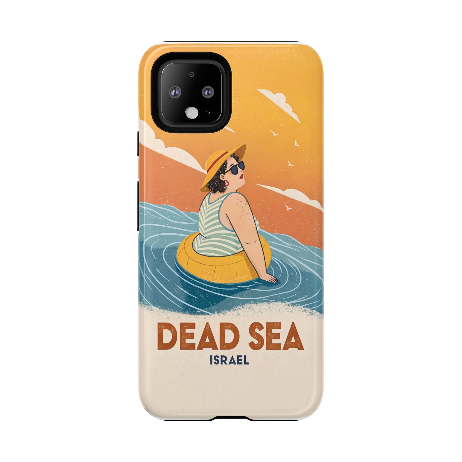 Ta med deg roen, magien og humoren fra Dødehavet med dette flotte retro-inspirerte mobildekselet. Designet viser en avslappet kvinne som flyter på det mineralrike vannet, omringet av myke blå bølger og en varm oransje himmel. Det kunstneriske uttrykket kombinerer vintage feriestemning med den ikoniske opplevelsen av å sveve uten anstrengelse på verdens salteste sjø.