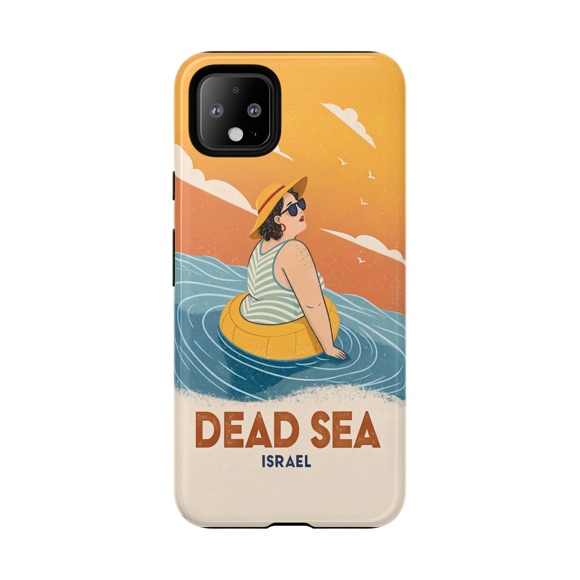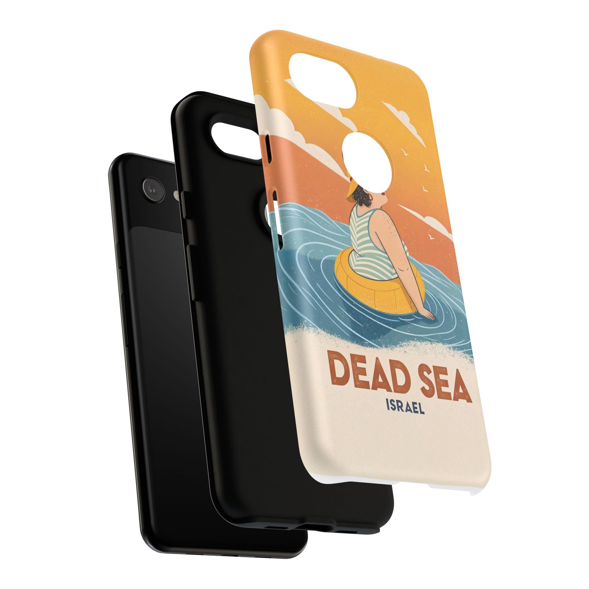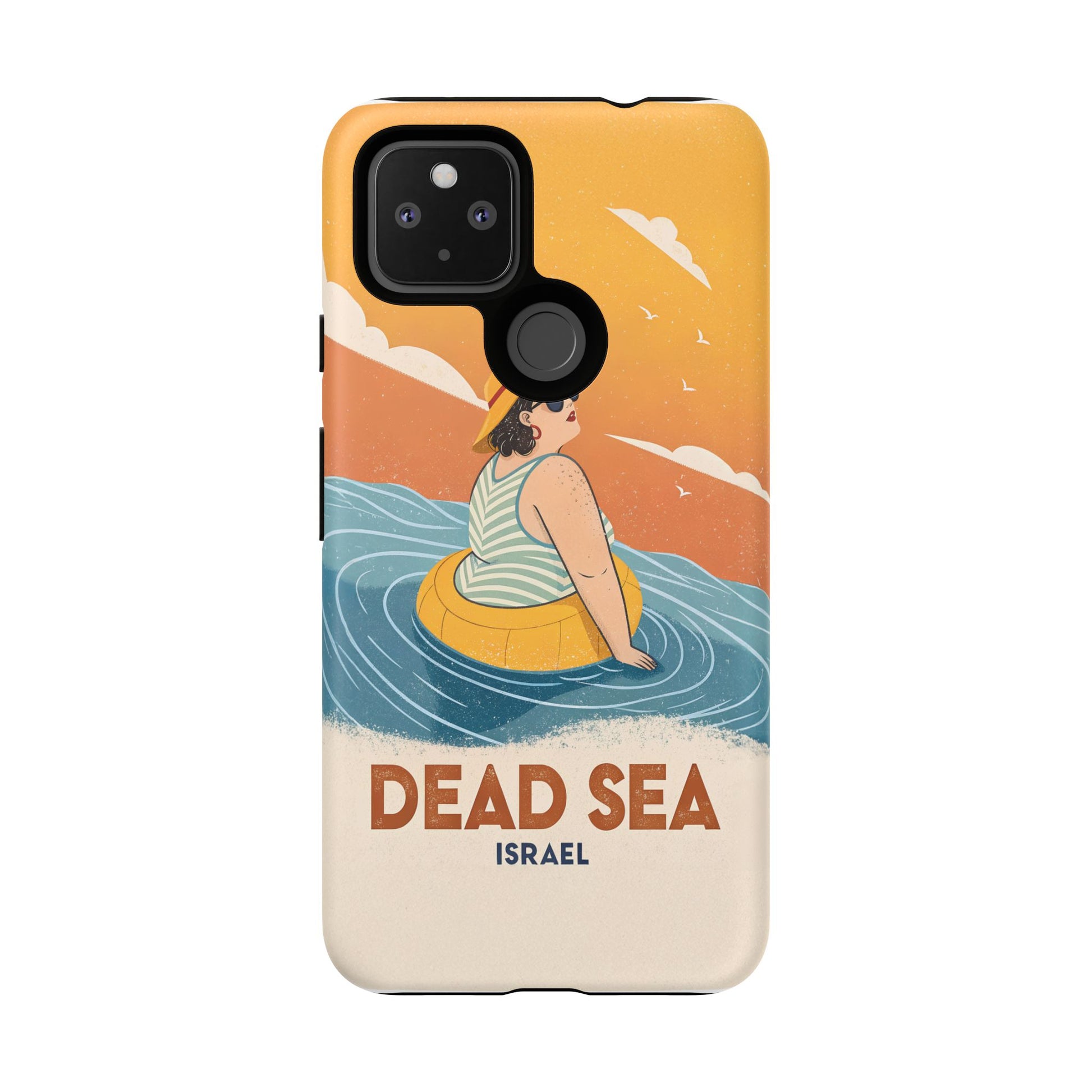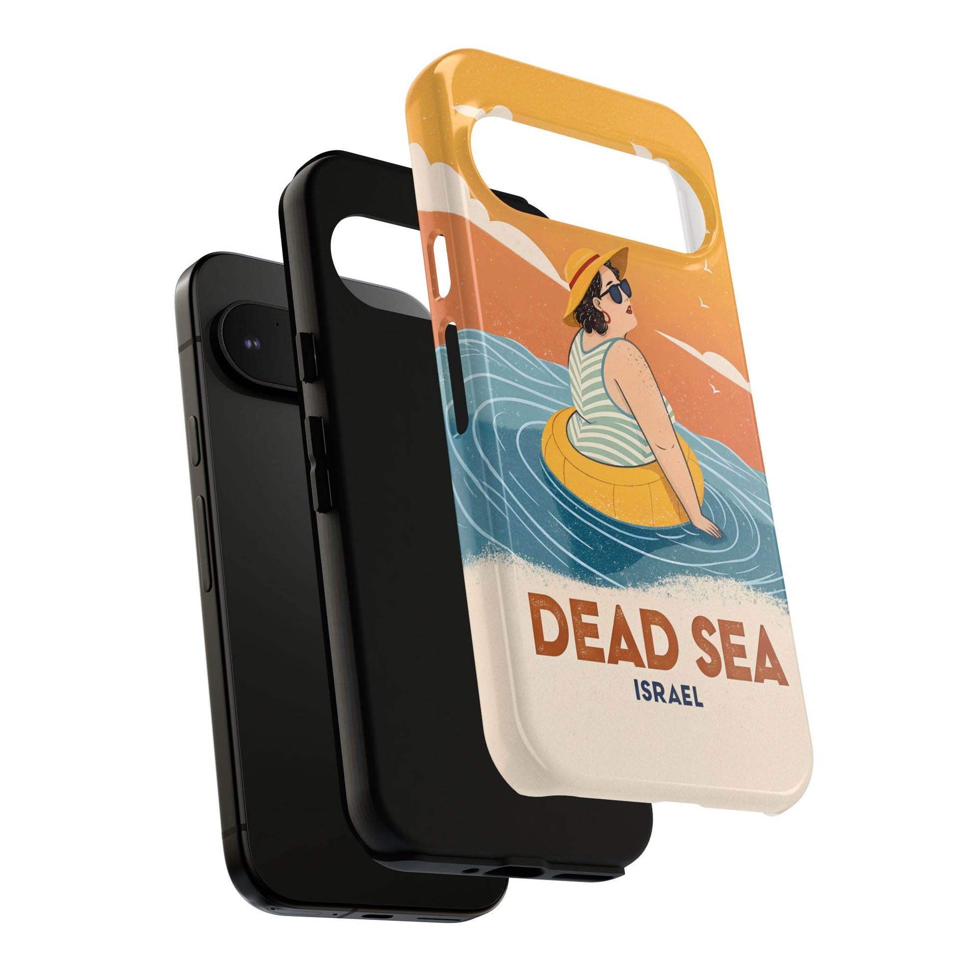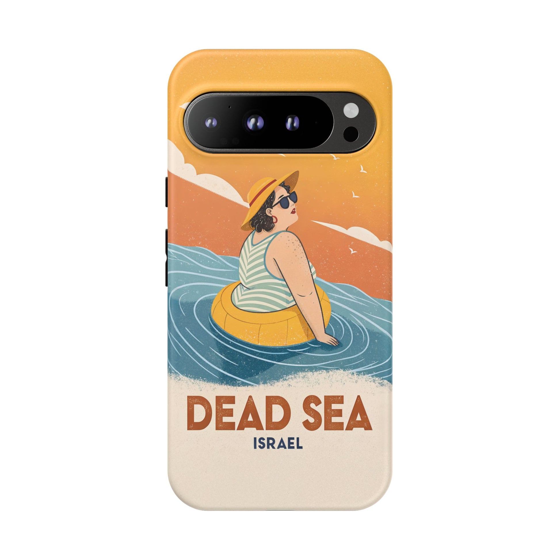 Ta med deg roen, magien og humoren fra Dødehavet med dette flotte retro-inspirerte mobildekselet. Designet viser en avslappet kvinne som flyter på det mineralrike vannet, omringet av myke blå bølger og en varm oransje himmel. Det kunstneriske uttrykket kombinerer vintage feriestemning med den ikoniske opplevelsen av å sveve uten anstrengelse på verdens salteste sjø.