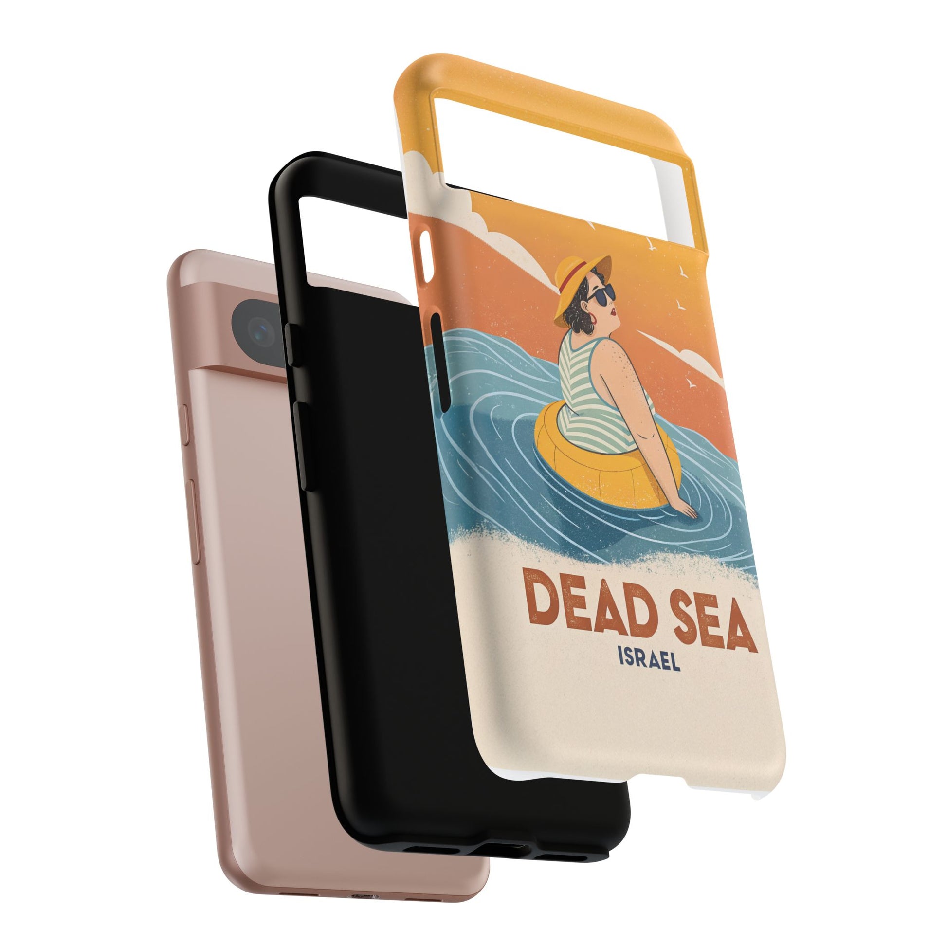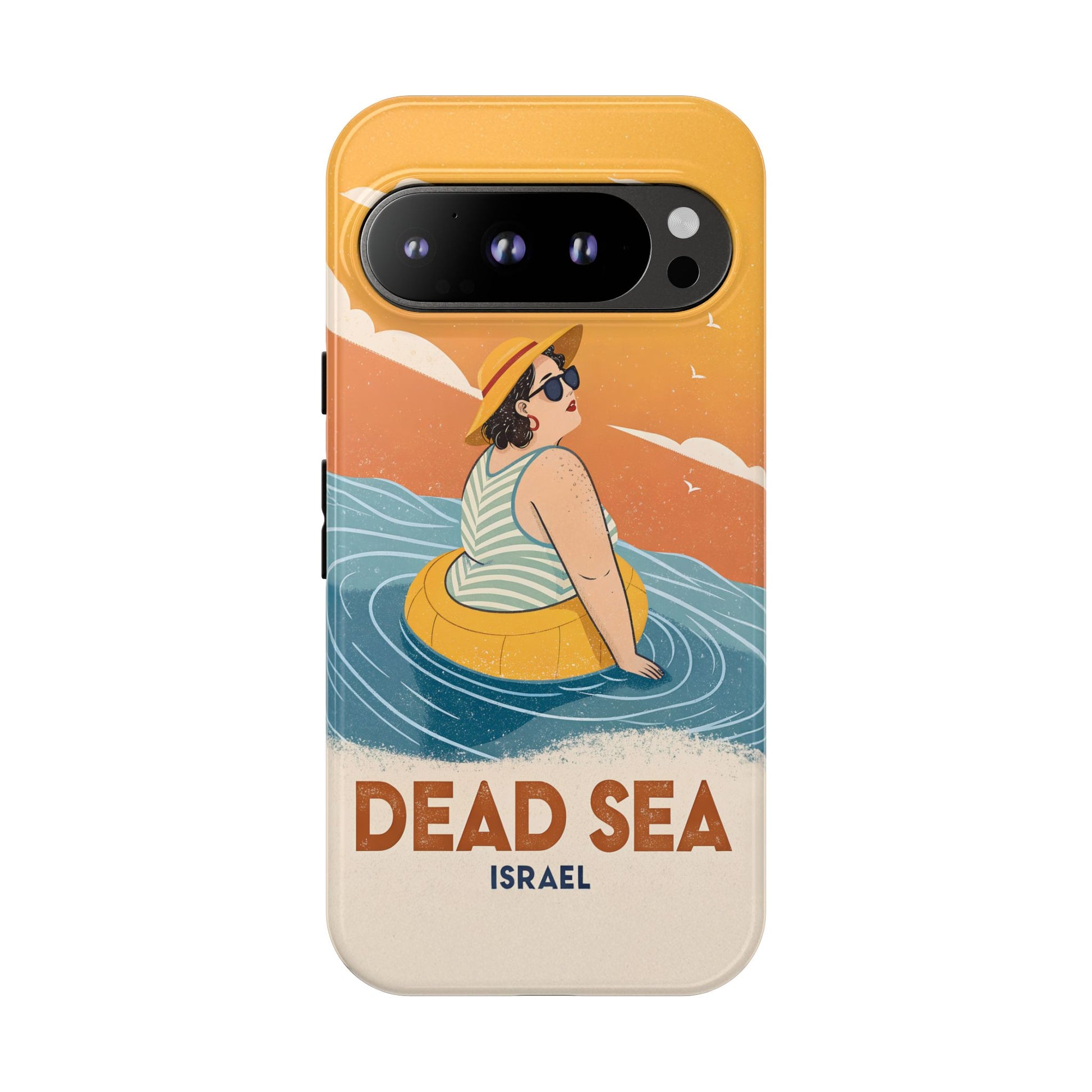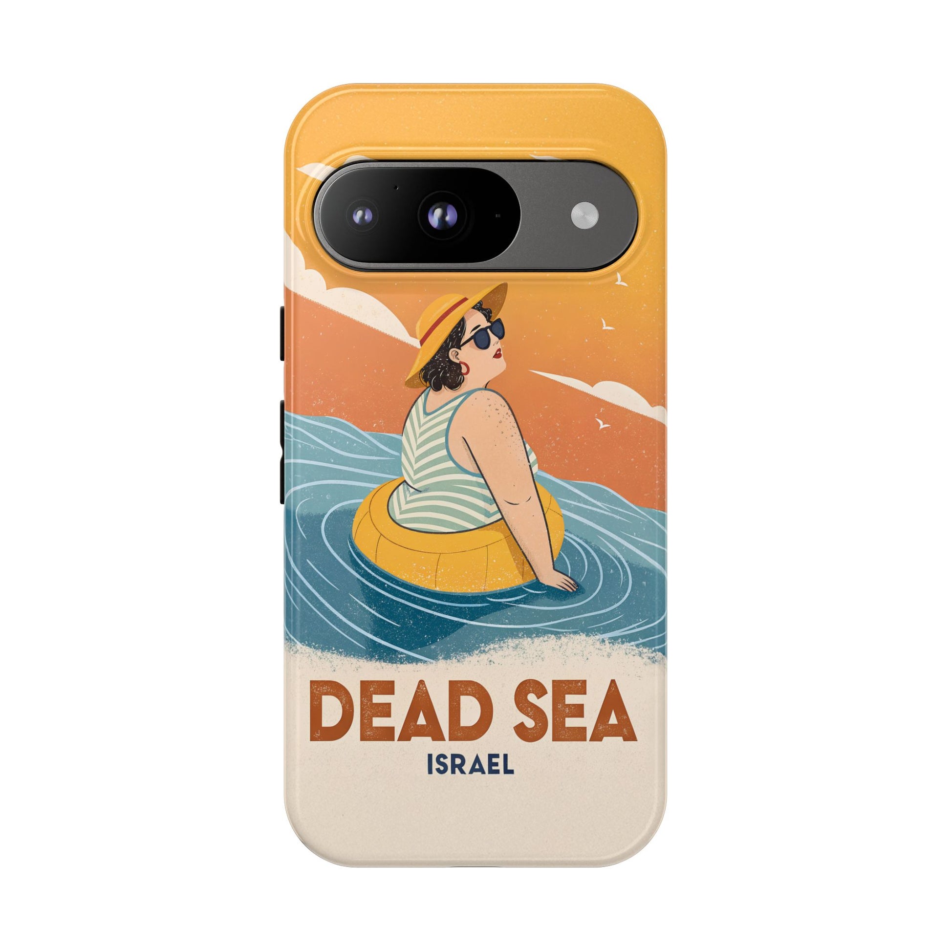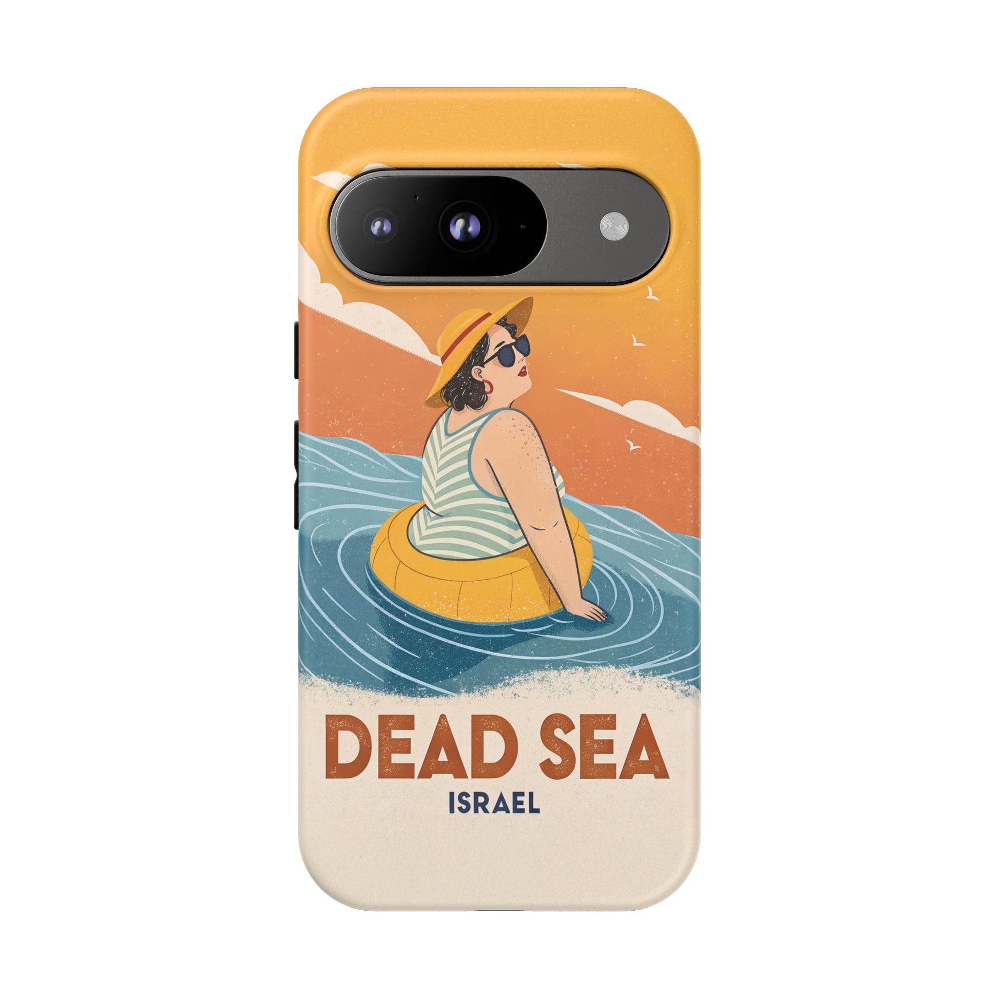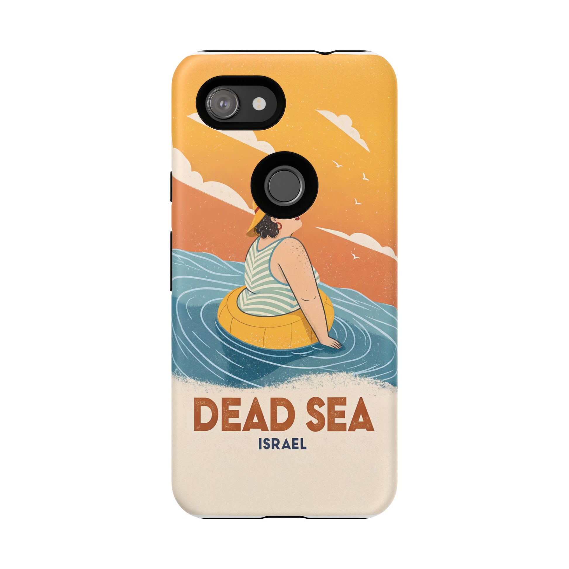 Ta med deg roen, magien og humoren fra Dødehavet med dette flotte retro-inspirerte mobildekselet. Designet viser en avslappet kvinne som flyter på det mineralrike vannet, omringet av myke blå bølger og en varm oransje himmel. Det kunstneriske uttrykket kombinerer vintage feriestemning med den ikoniske opplevelsen av å sveve uten anstrengelse på verdens salteste sjø.