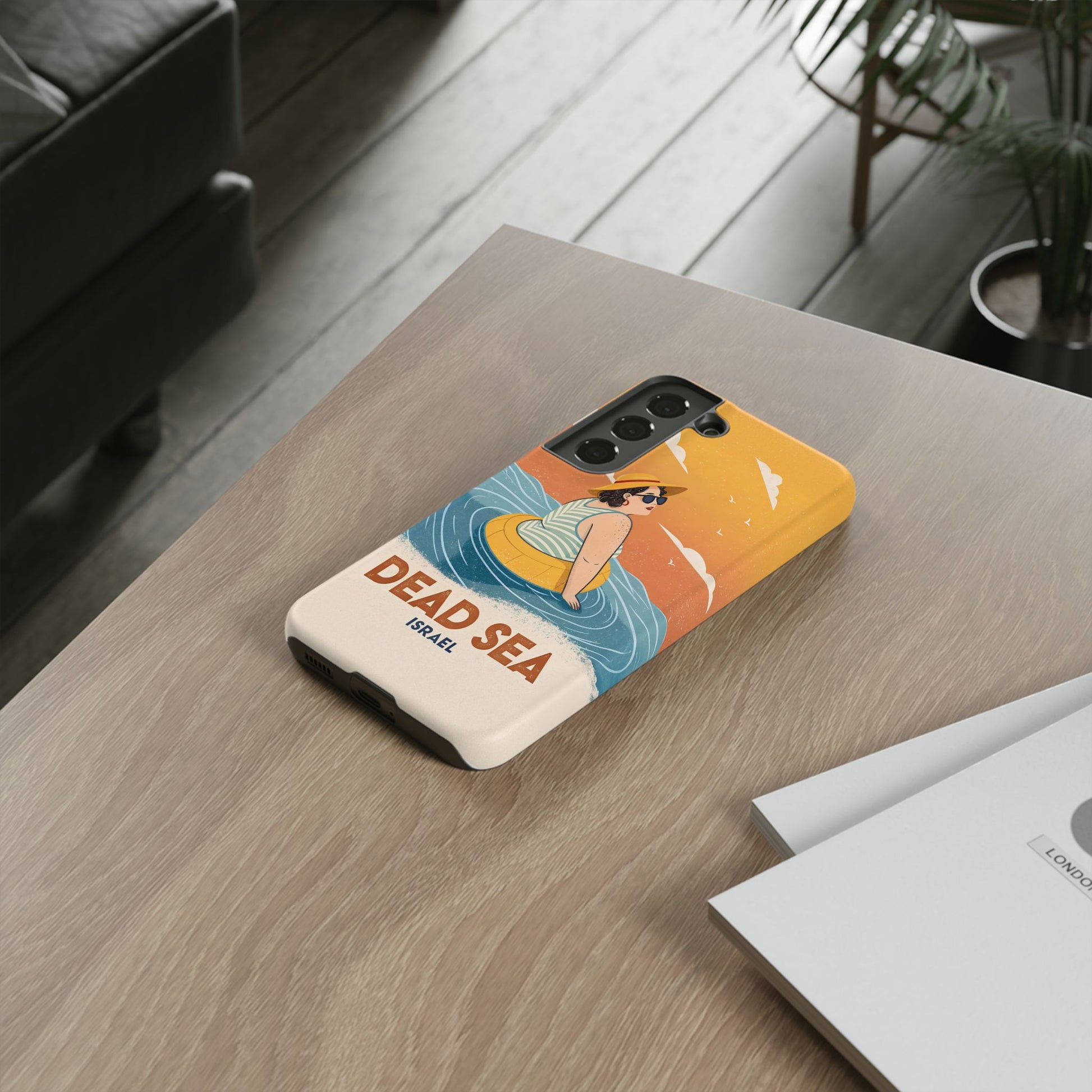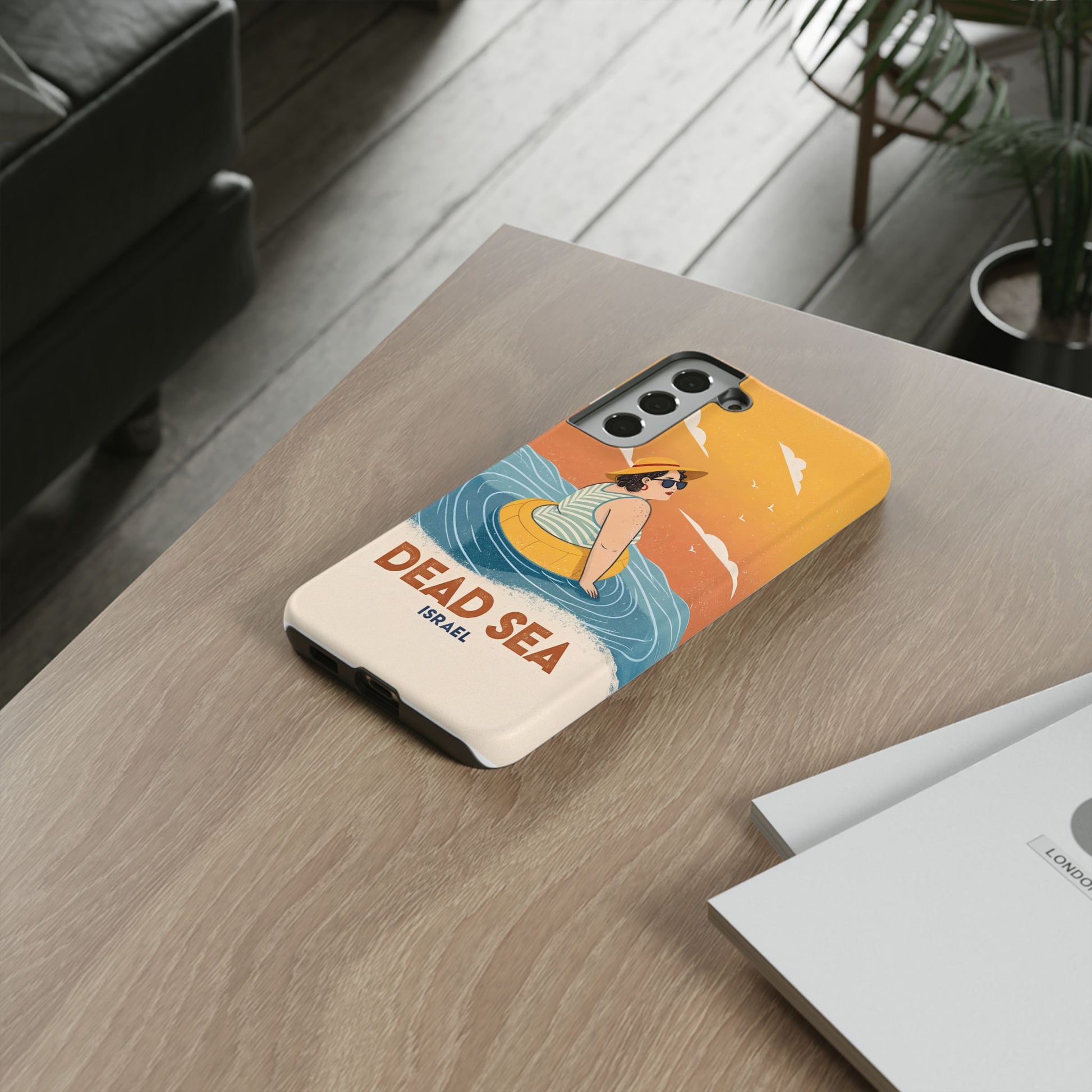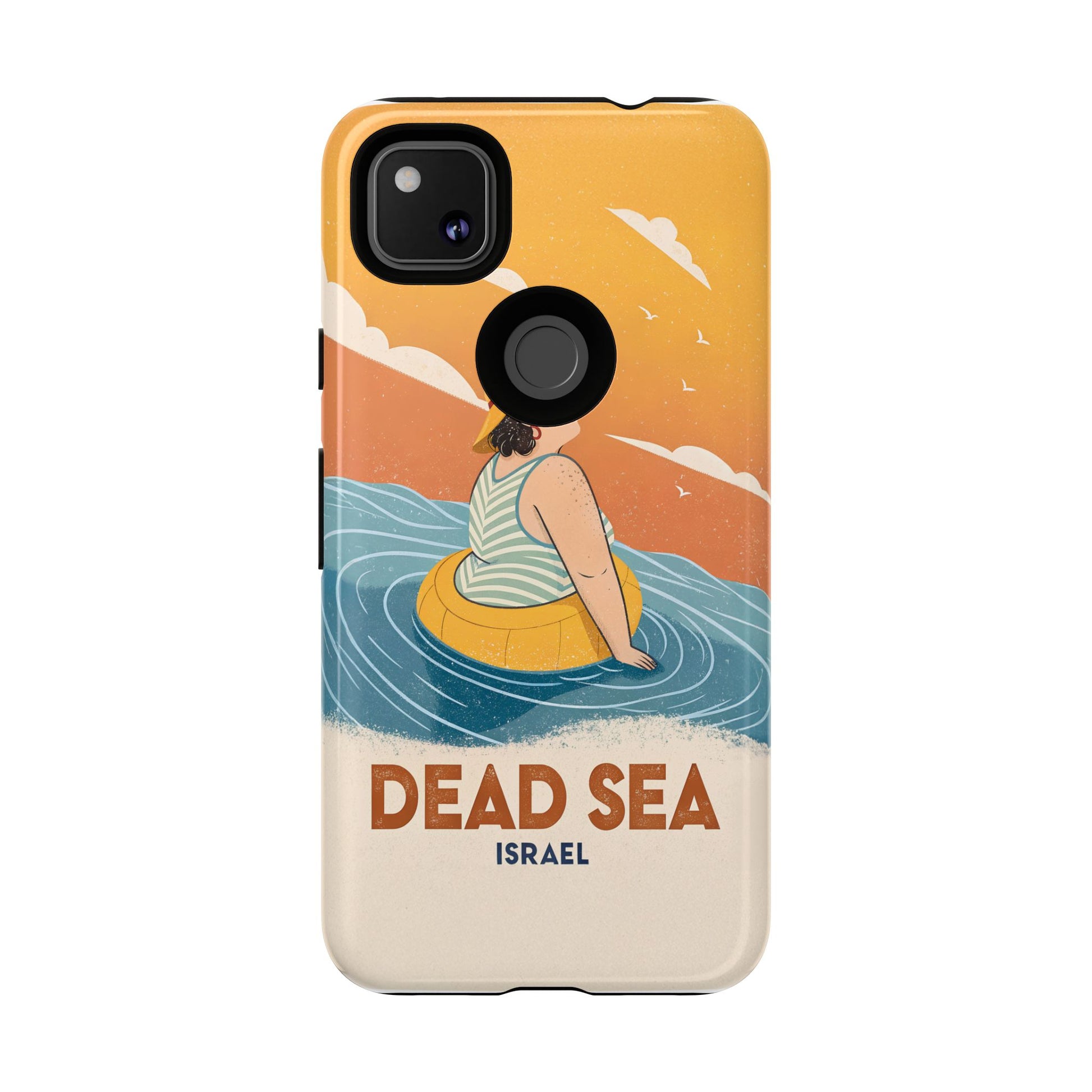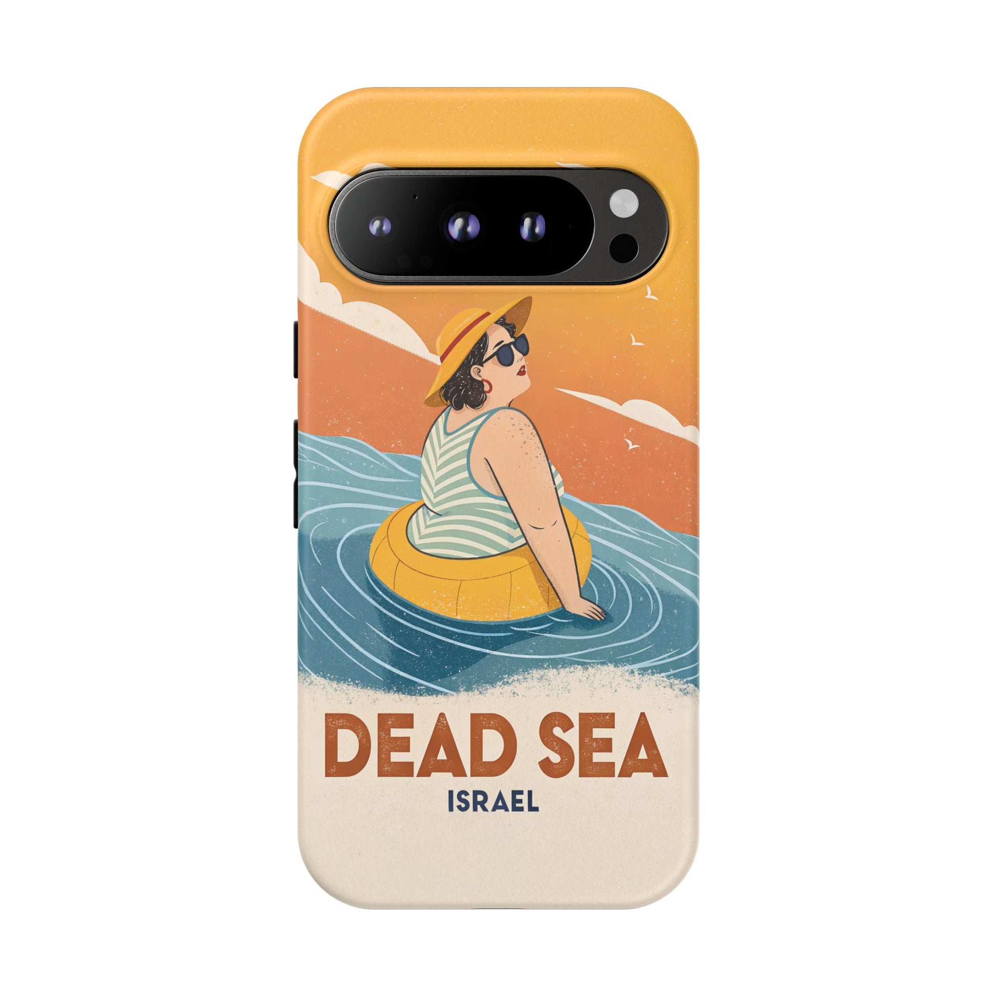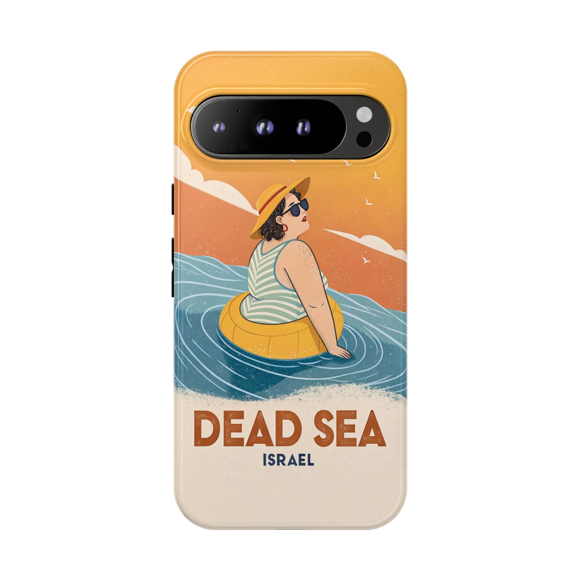 Ta med deg roen, magien og humoren fra Dødehavet med dette flotte retro-inspirerte mobildekselet. Designet viser en avslappet kvinne som flyter på det mineralrike vannet, omringet av myke blå bølger og en varm oransje himmel. Det kunstneriske uttrykket kombinerer vintage feriestemning med den ikoniske opplevelsen av å sveve uten anstrengelse på verdens salteste sjø.