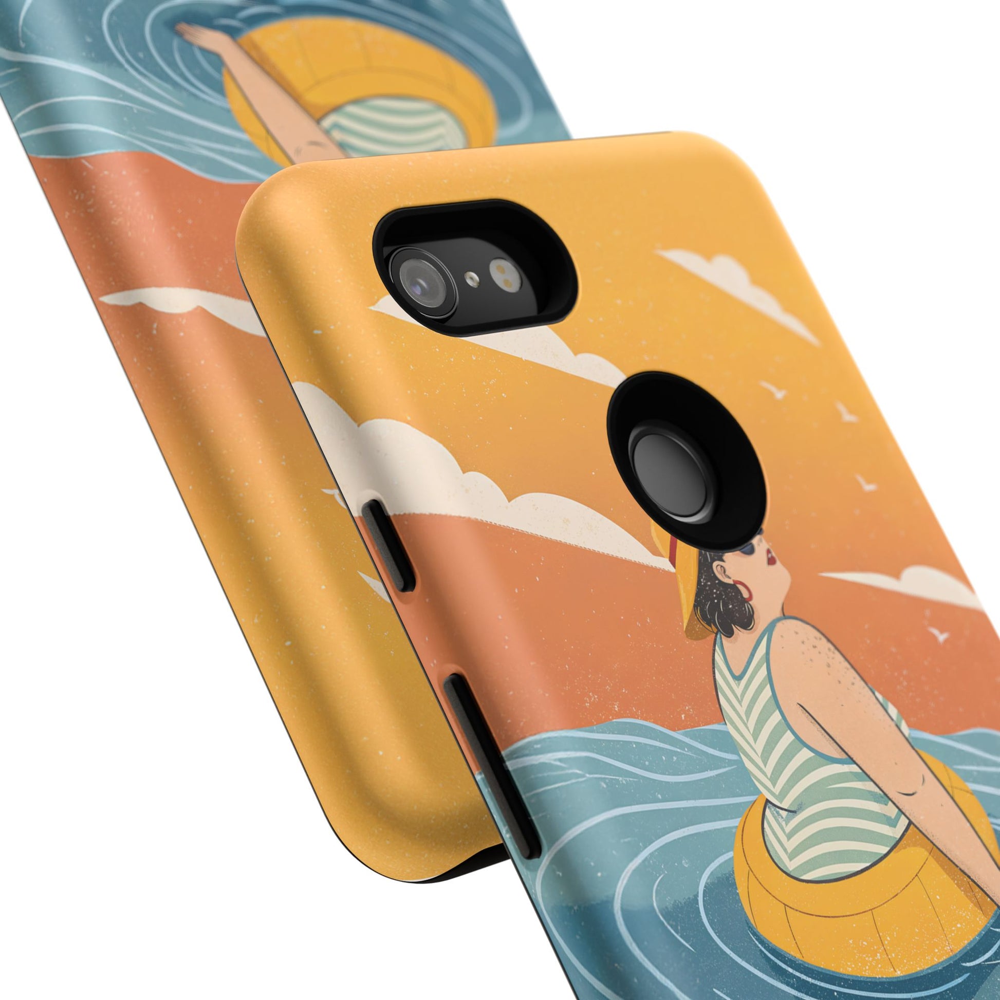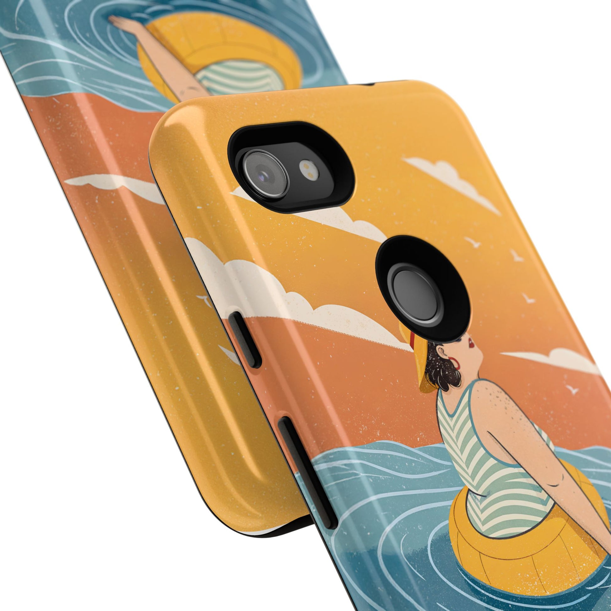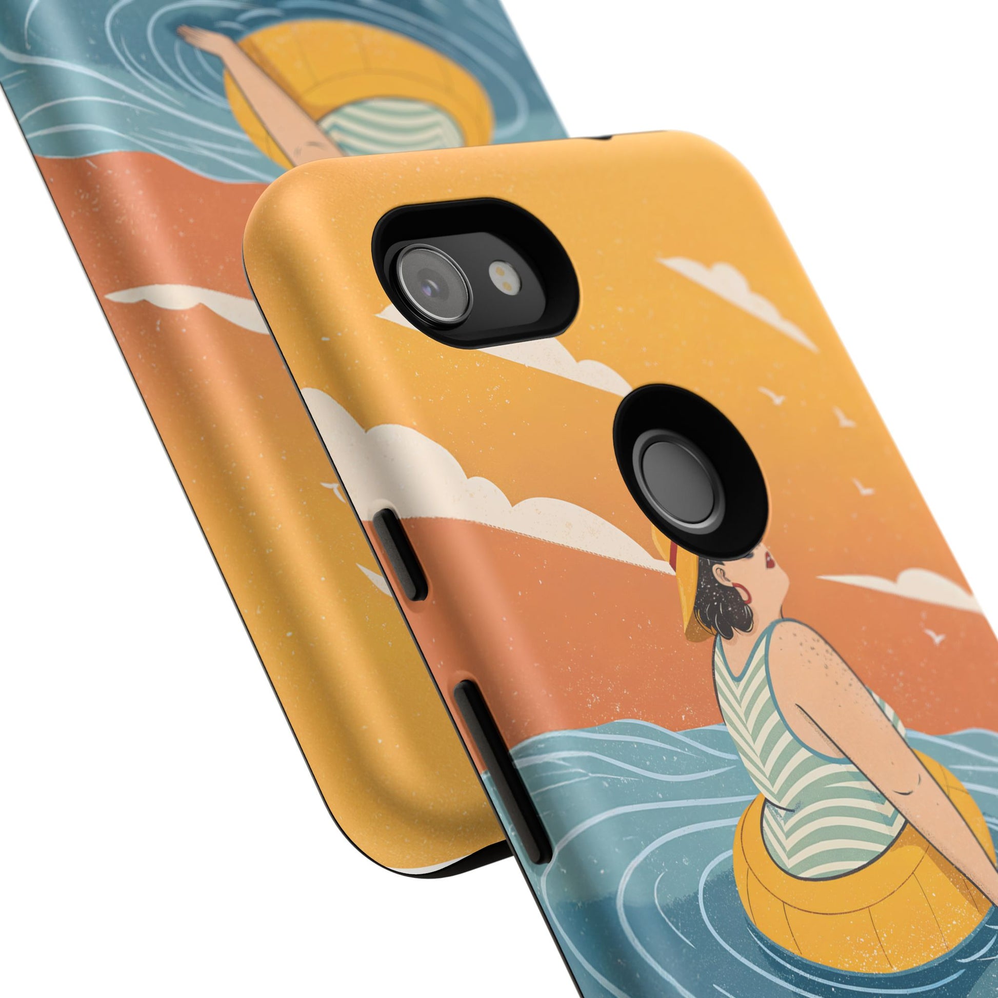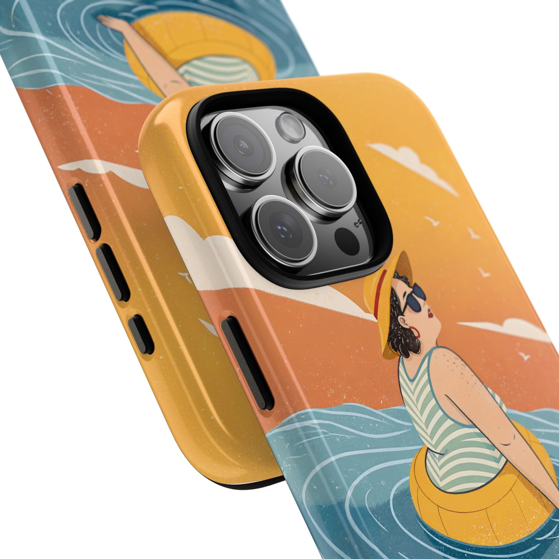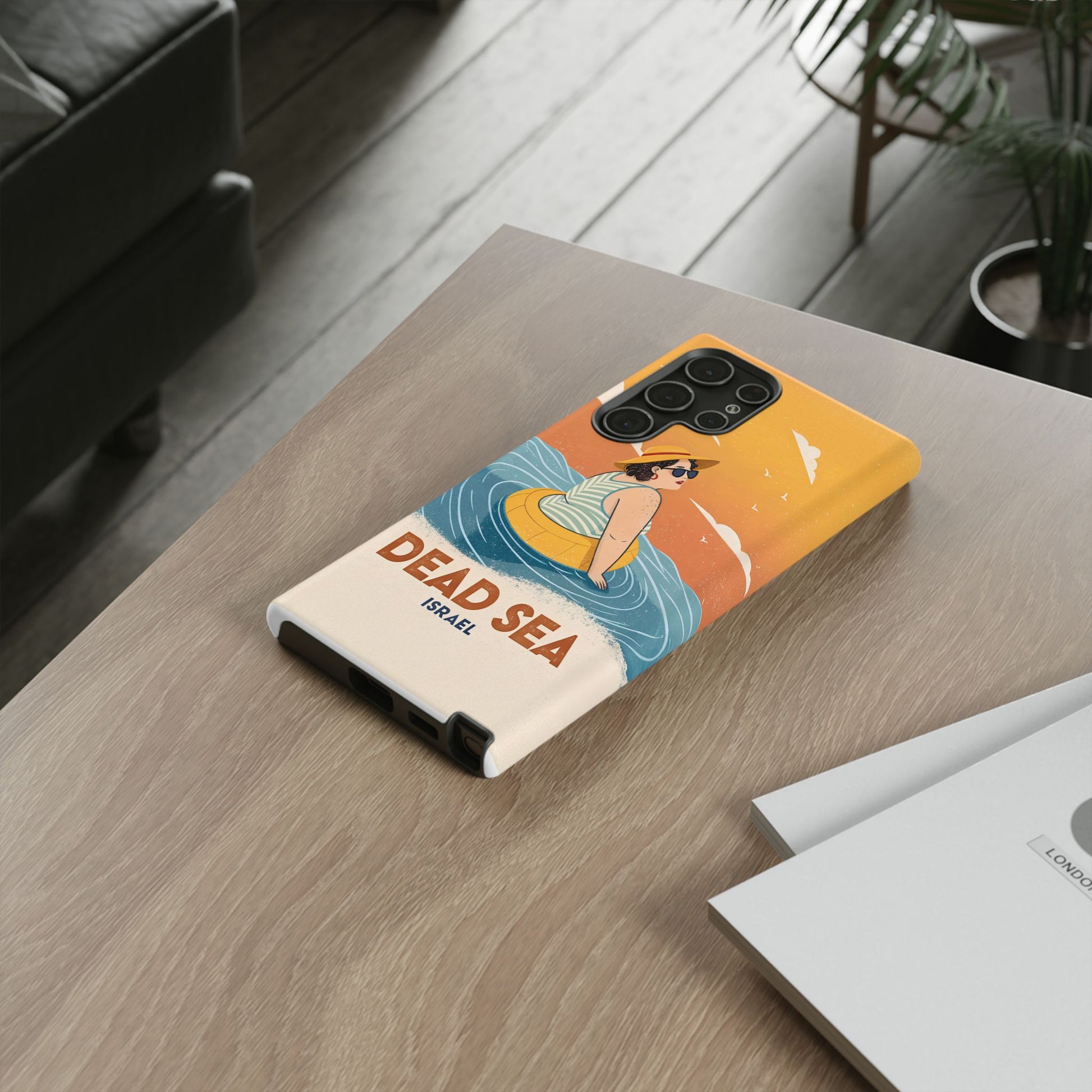 Ta med deg roen, magien og humoren fra Dødehavet med dette flotte retro-inspirerte mobildekselet. Designet viser en avslappet kvinne som flyter på det mineralrike vannet, omringet av myke blå bølger og en varm oransje himmel. Det kunstneriske uttrykket kombinerer vintage feriestemning med den ikoniske opplevelsen av å sveve uten anstrengelse på verdens salteste sjø.