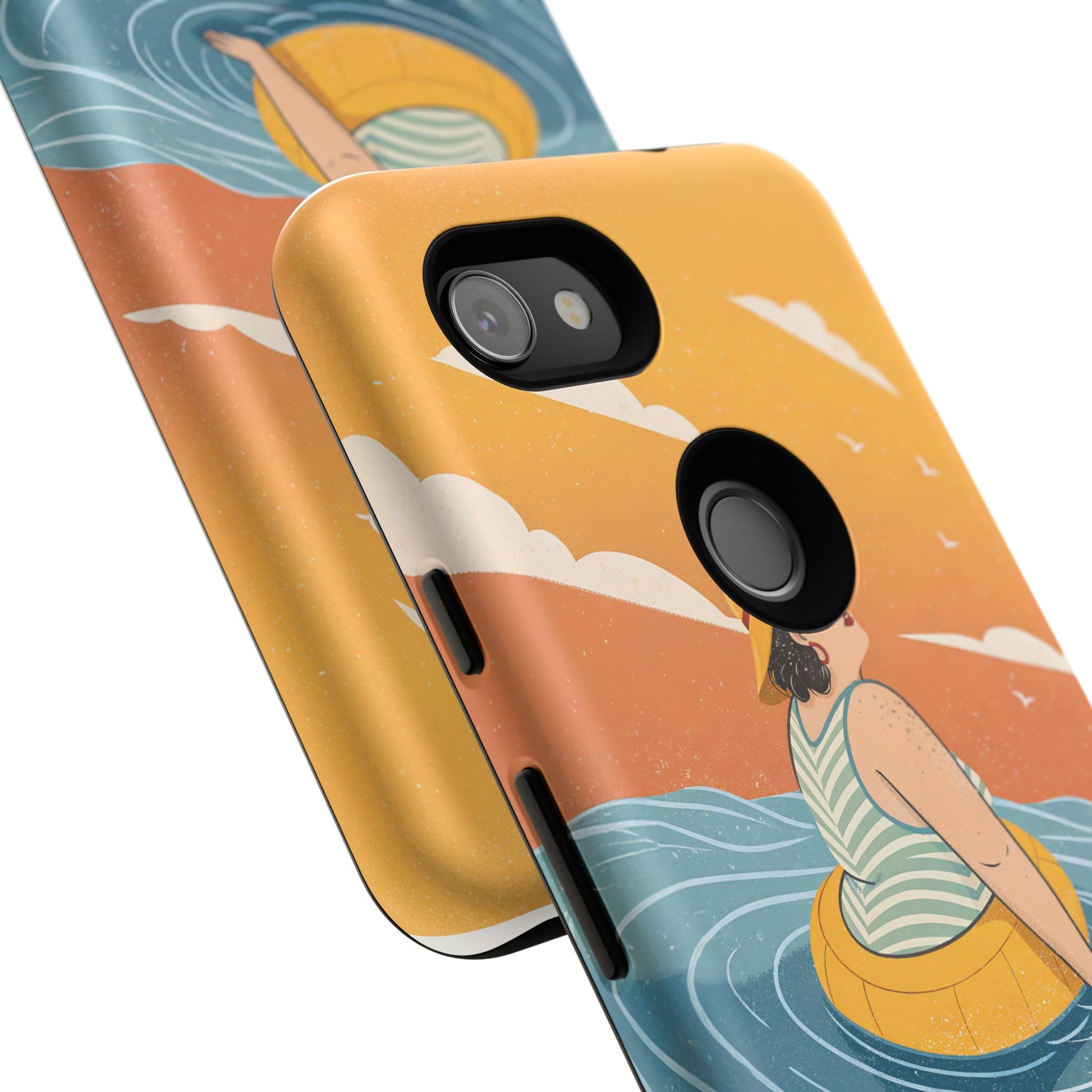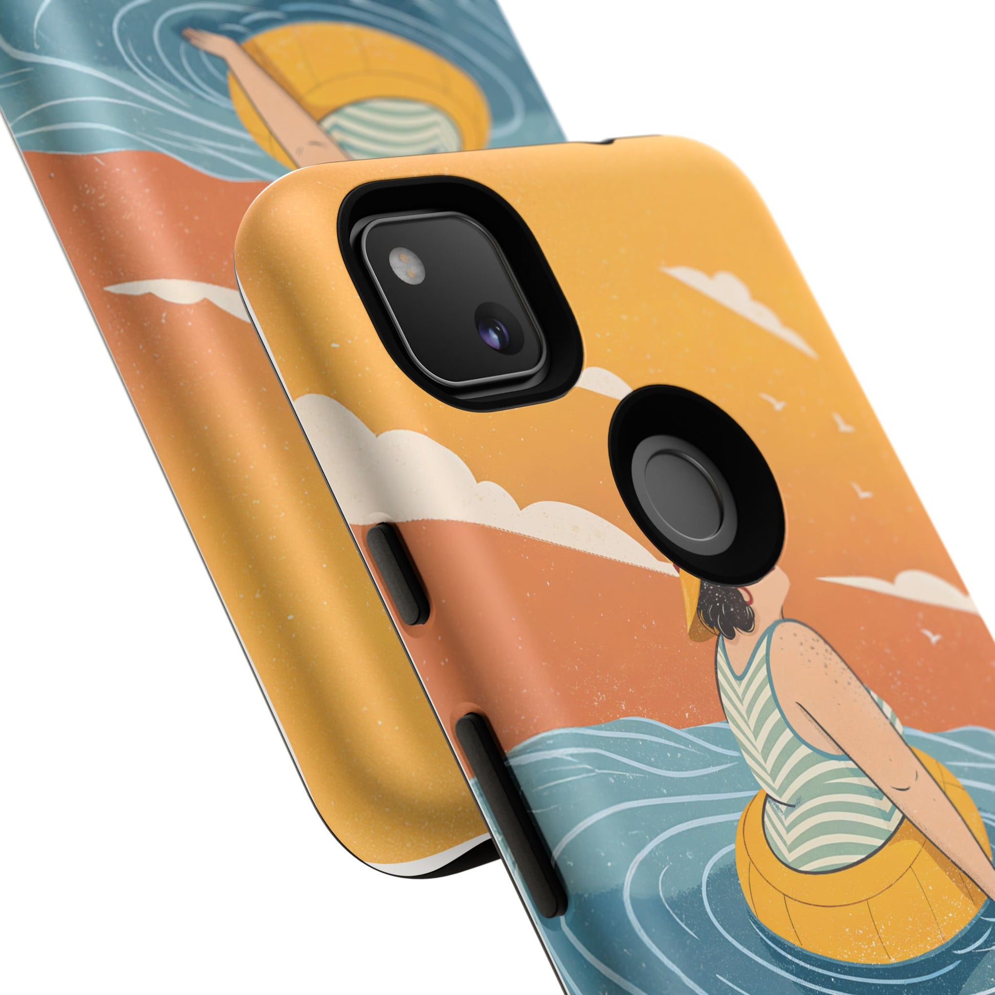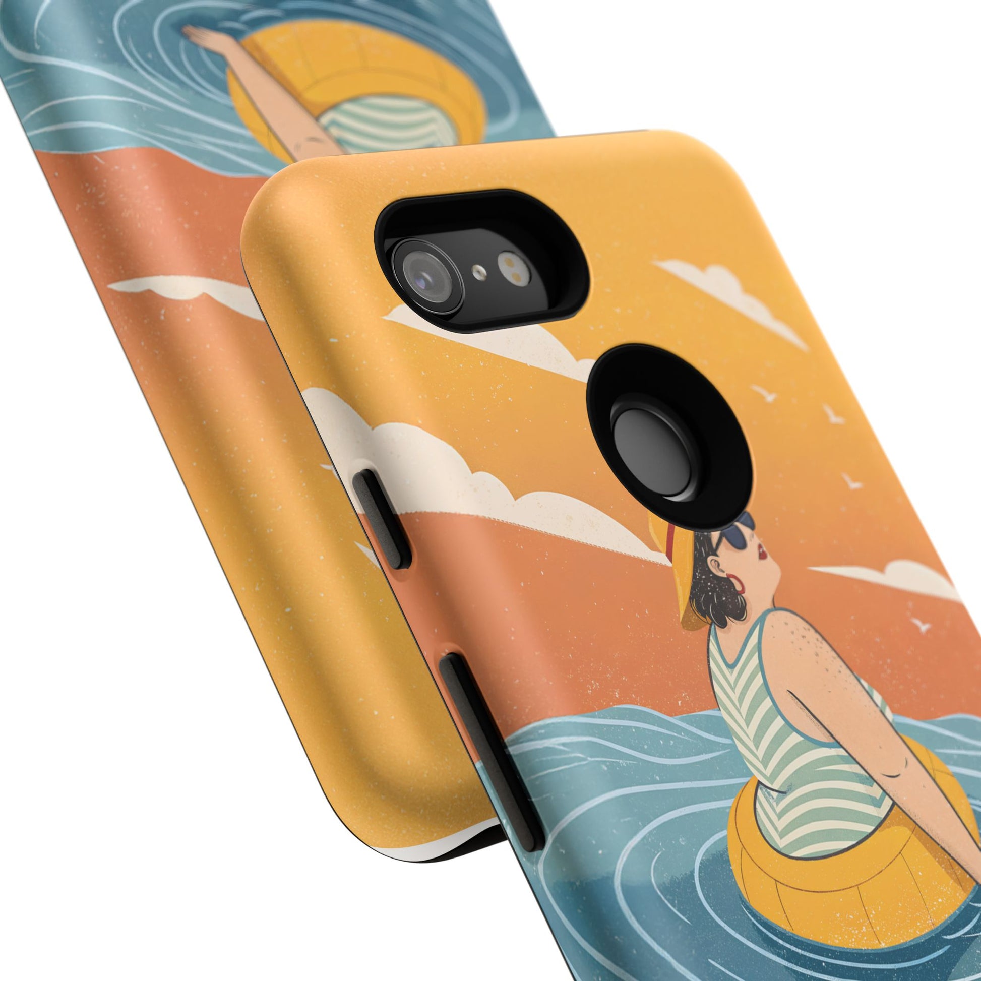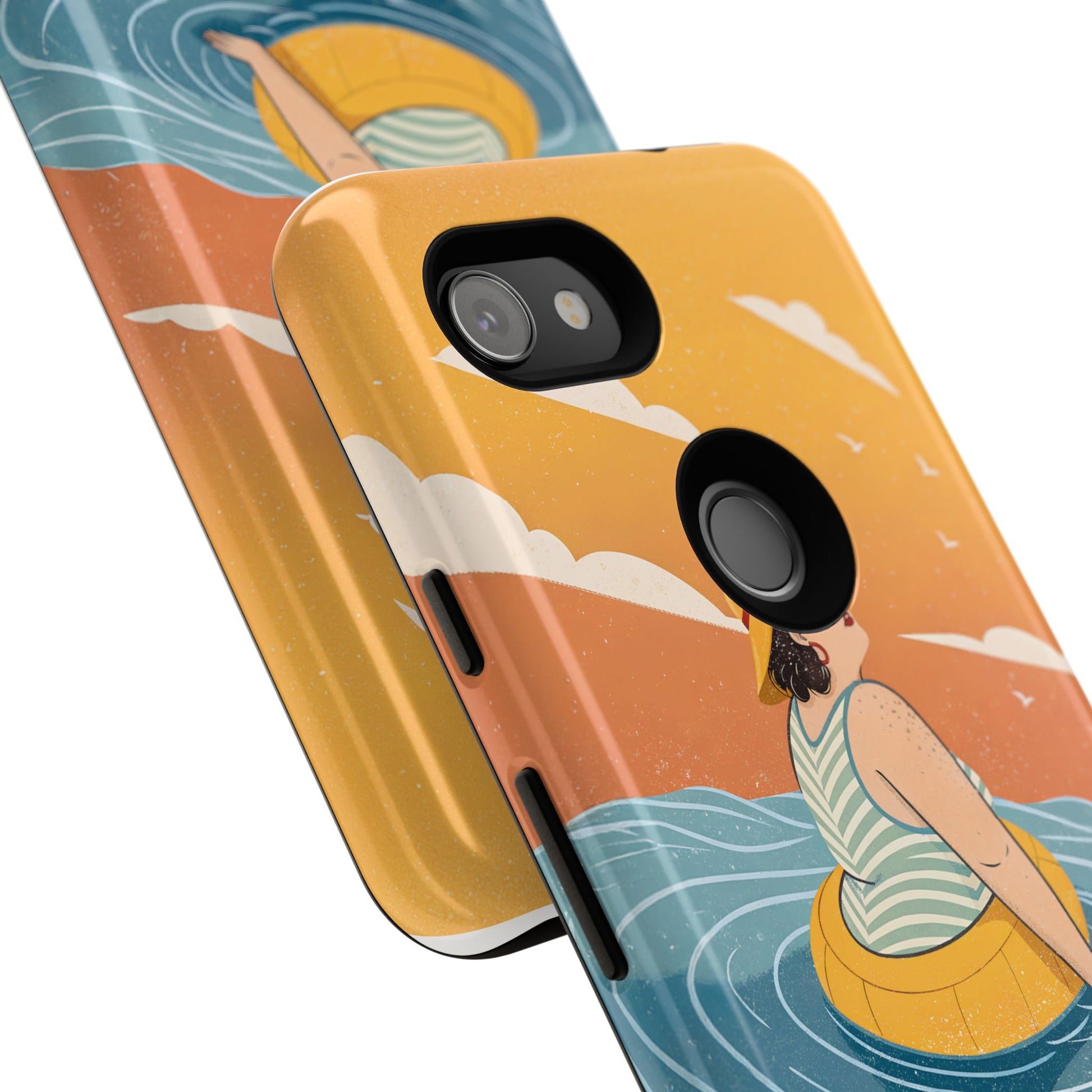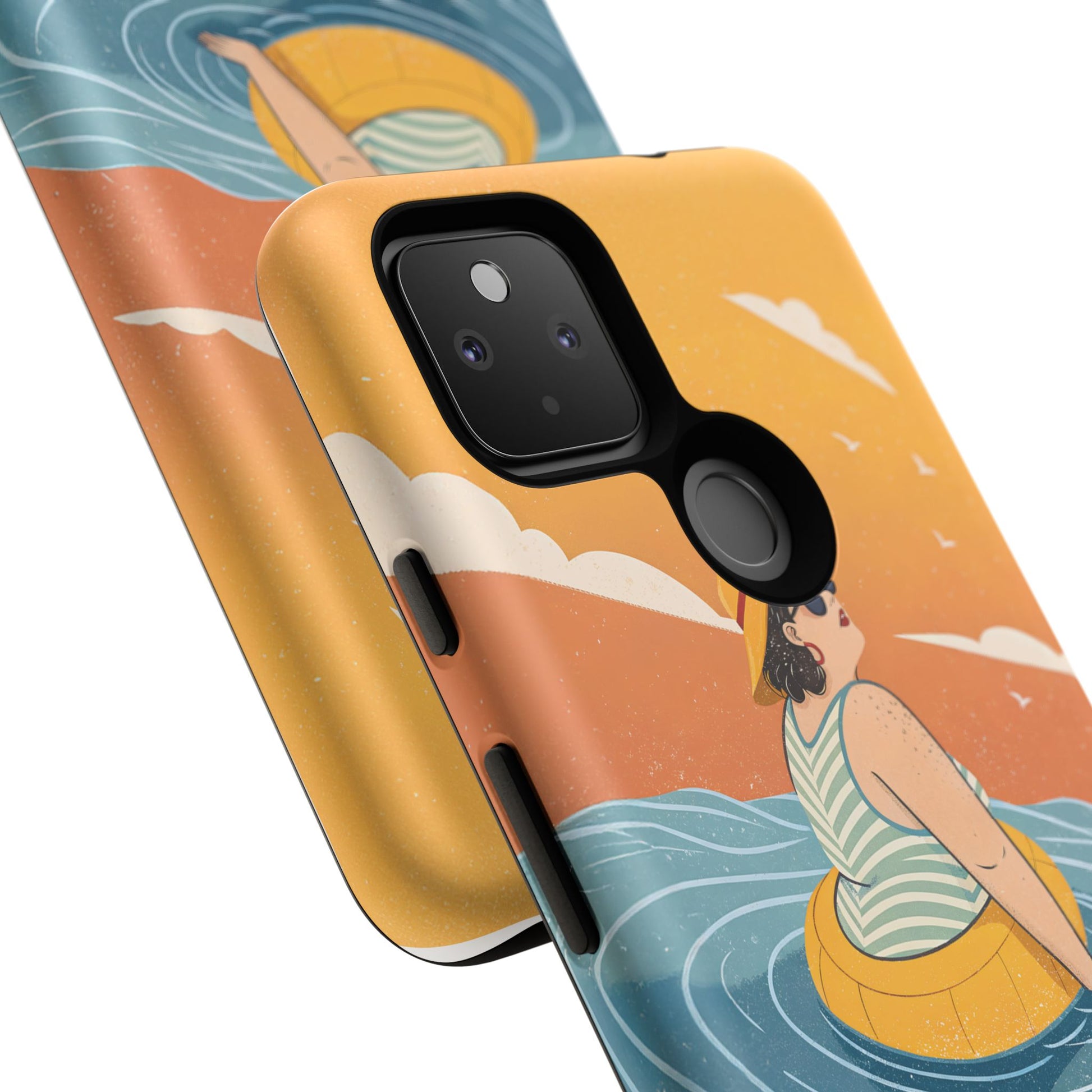 Ta med deg roen, magien og humoren fra Dødehavet med dette flotte retro-inspirerte mobildekselet. Designet viser en avslappet kvinne som flyter på det mineralrike vannet, omringet av myke blå bølger og en varm oransje himmel. Det kunstneriske uttrykket kombinerer vintage feriestemning med den ikoniske opplevelsen av å sveve uten anstrengelse på verdens salteste sjø.