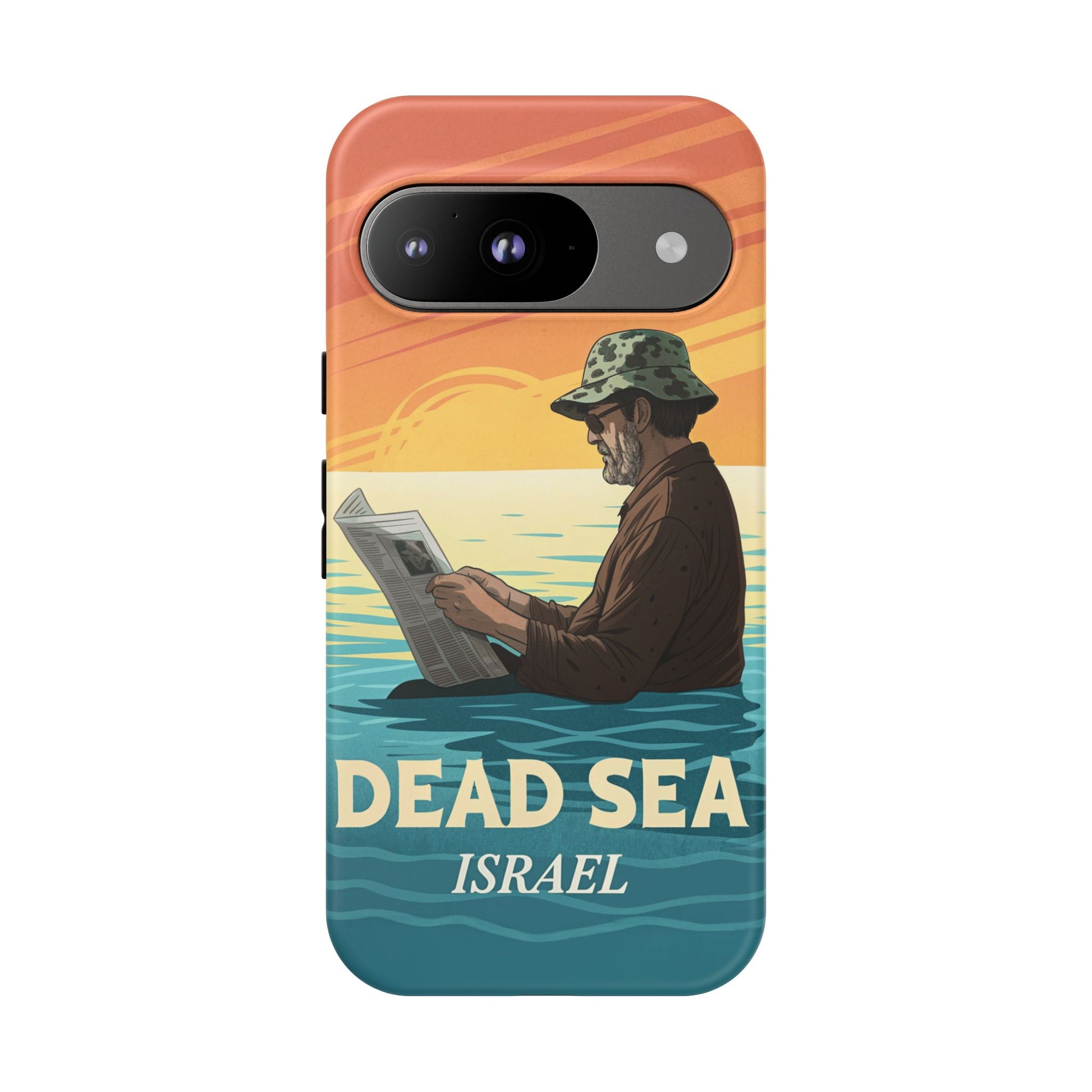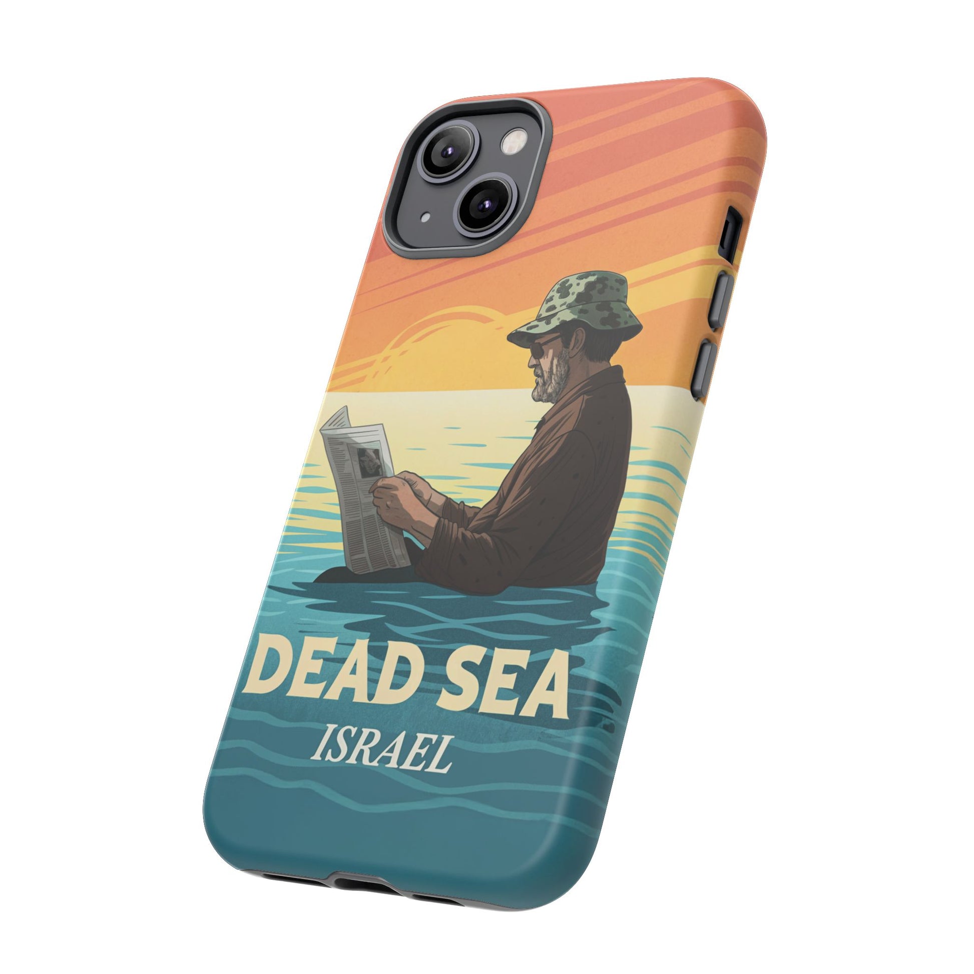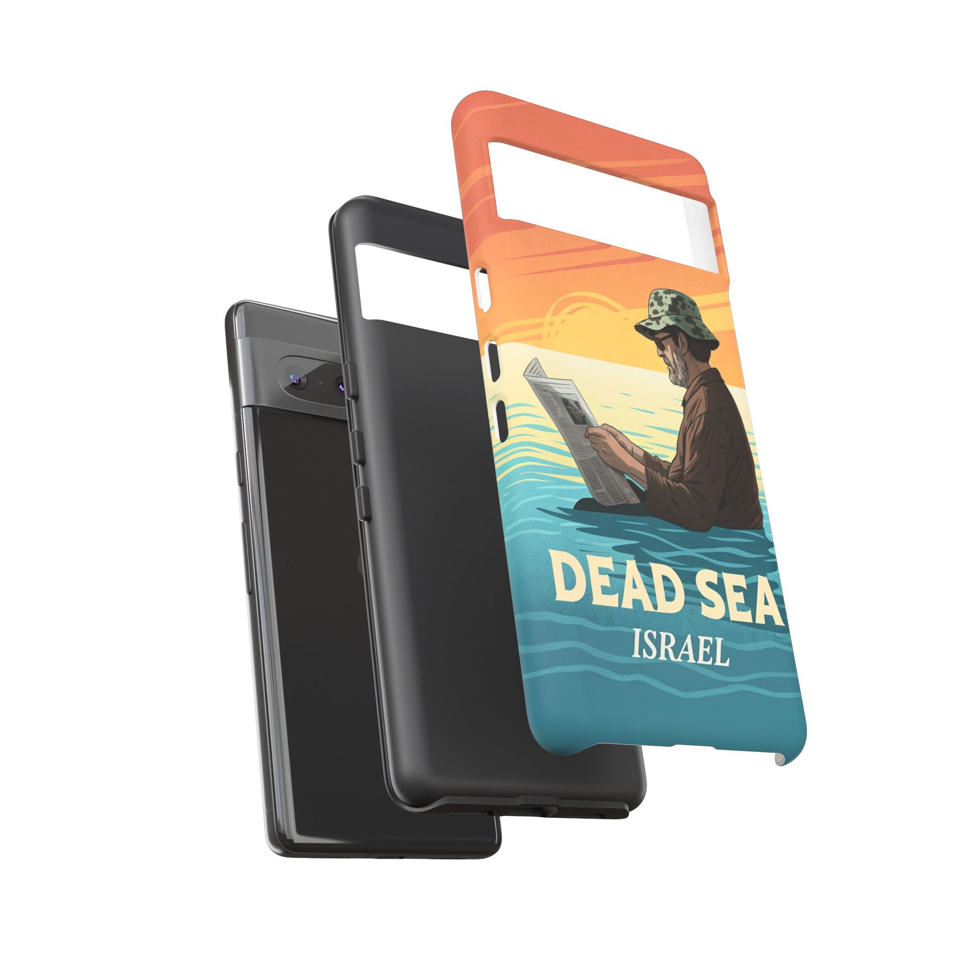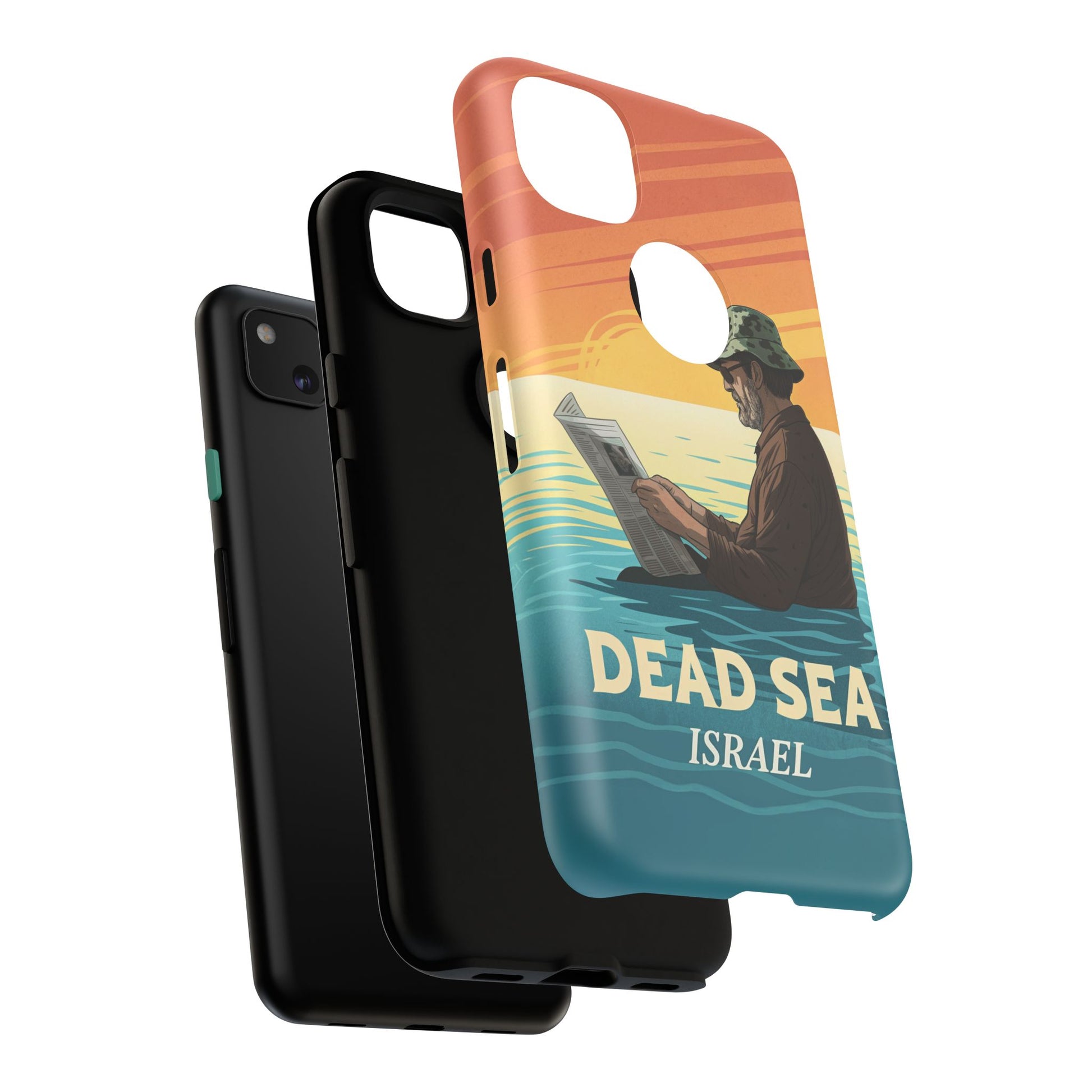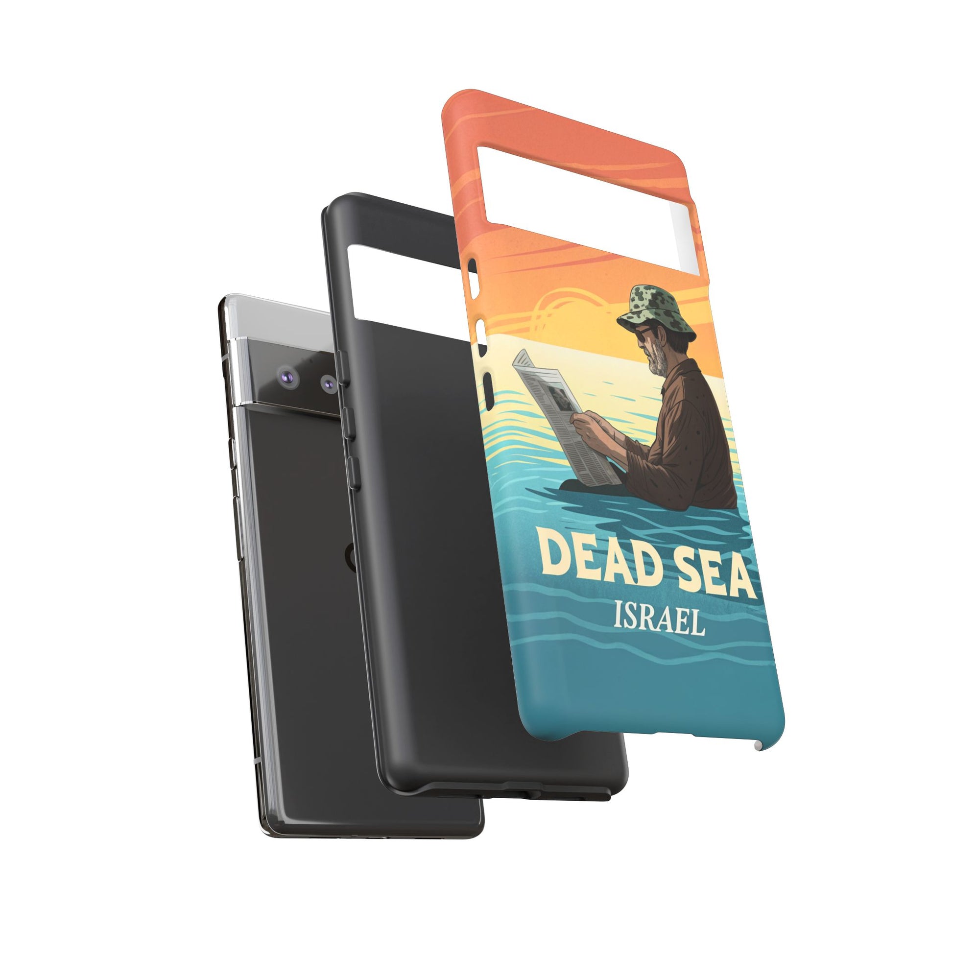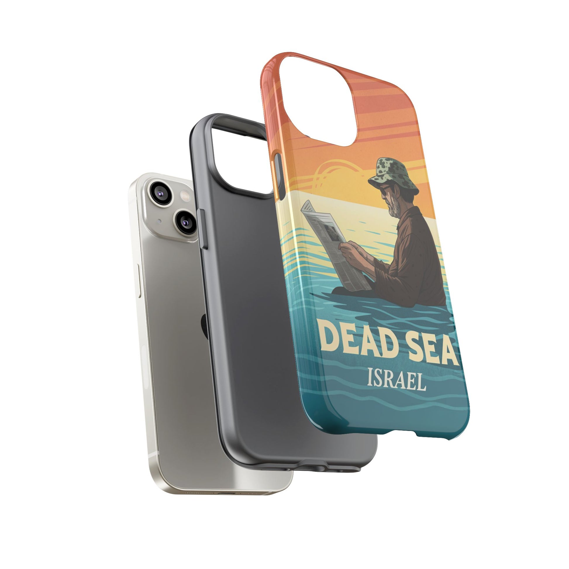 Ta med deg den rolige og ikoniske stemningen fra Dødehavet med dette kunstneriske mobildekselet. Designet viser en mann som sitter avslappet i det mineralrike vannet mens han leser avis – helt vektløs slik bare Dødehavet kan tilby. Den varme himmelen i oransje og gyldne toner gir motivet en vakker solnedgangsfølelse, mens de rolige blå bølgene skaper en perfekt kontrast. Et motiv som kombinerer humor, ro og tidløs reiselivssjarm fra Israel.