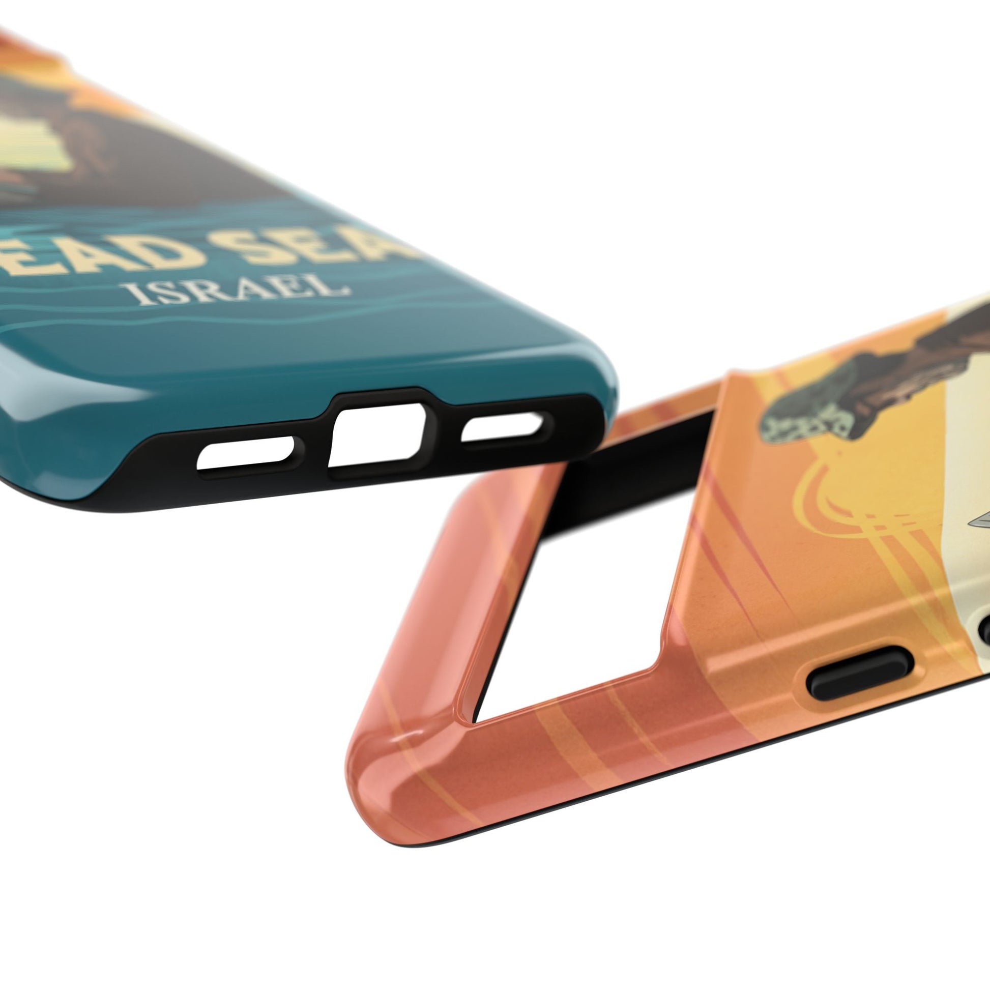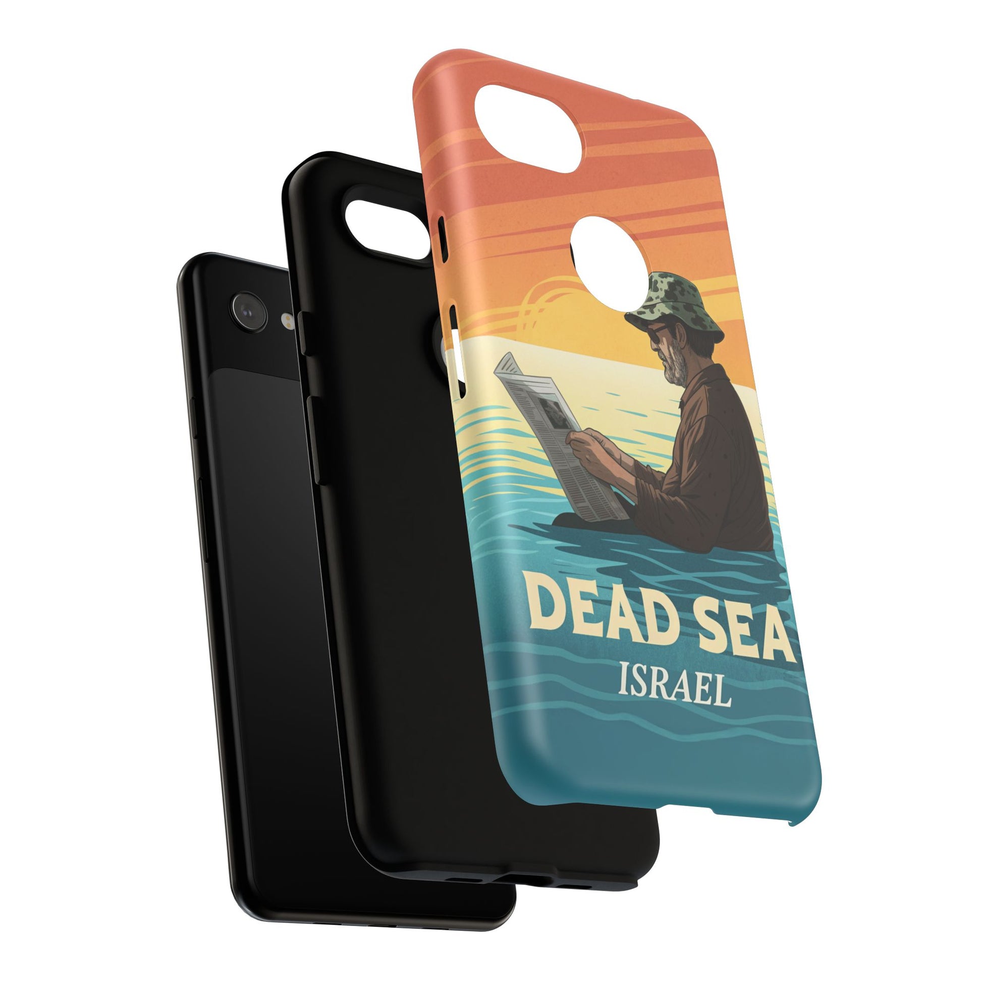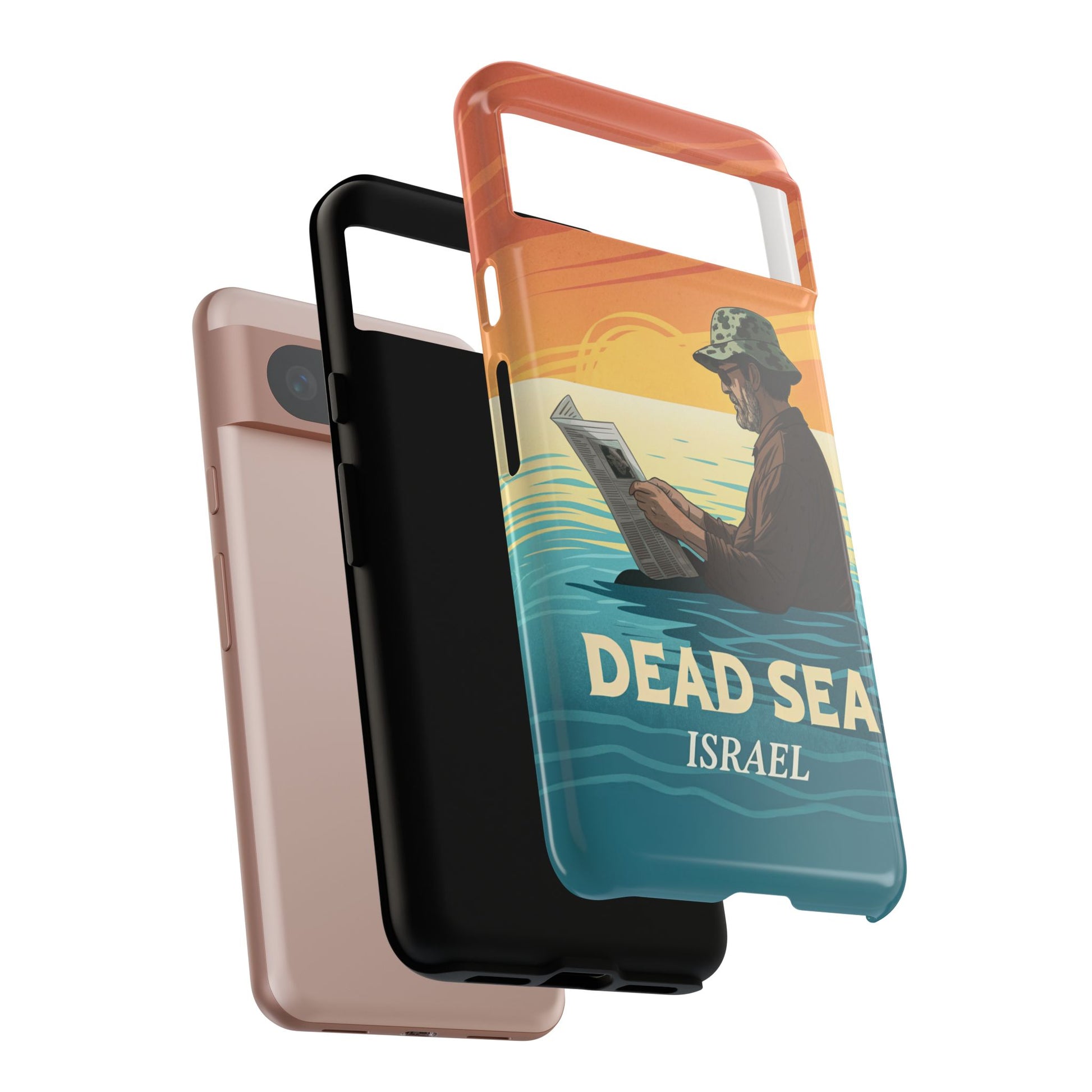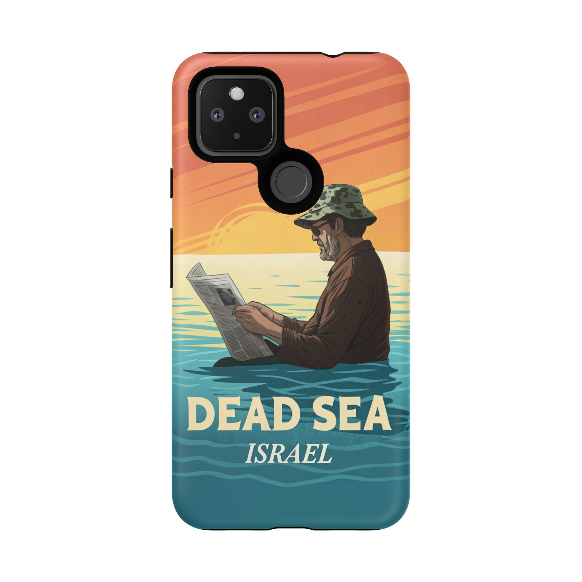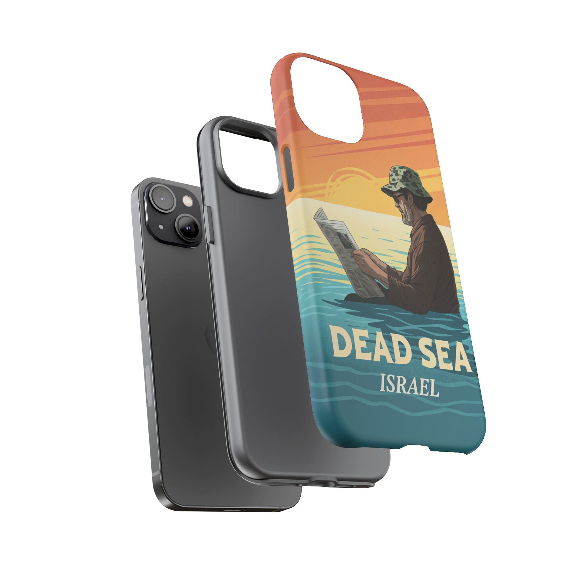 Ta med deg den rolige og ikoniske stemningen fra Dødehavet med dette kunstneriske mobildekselet. Designet viser en mann som sitter avslappet i det mineralrike vannet mens han leser avis – helt vektløs slik bare Dødehavet kan tilby. Den varme himmelen i oransje og gyldne toner gir motivet en vakker solnedgangsfølelse, mens de rolige blå bølgene skaper en perfekt kontrast. Et motiv som kombinerer humor, ro og tidløs reiselivssjarm fra Israel.