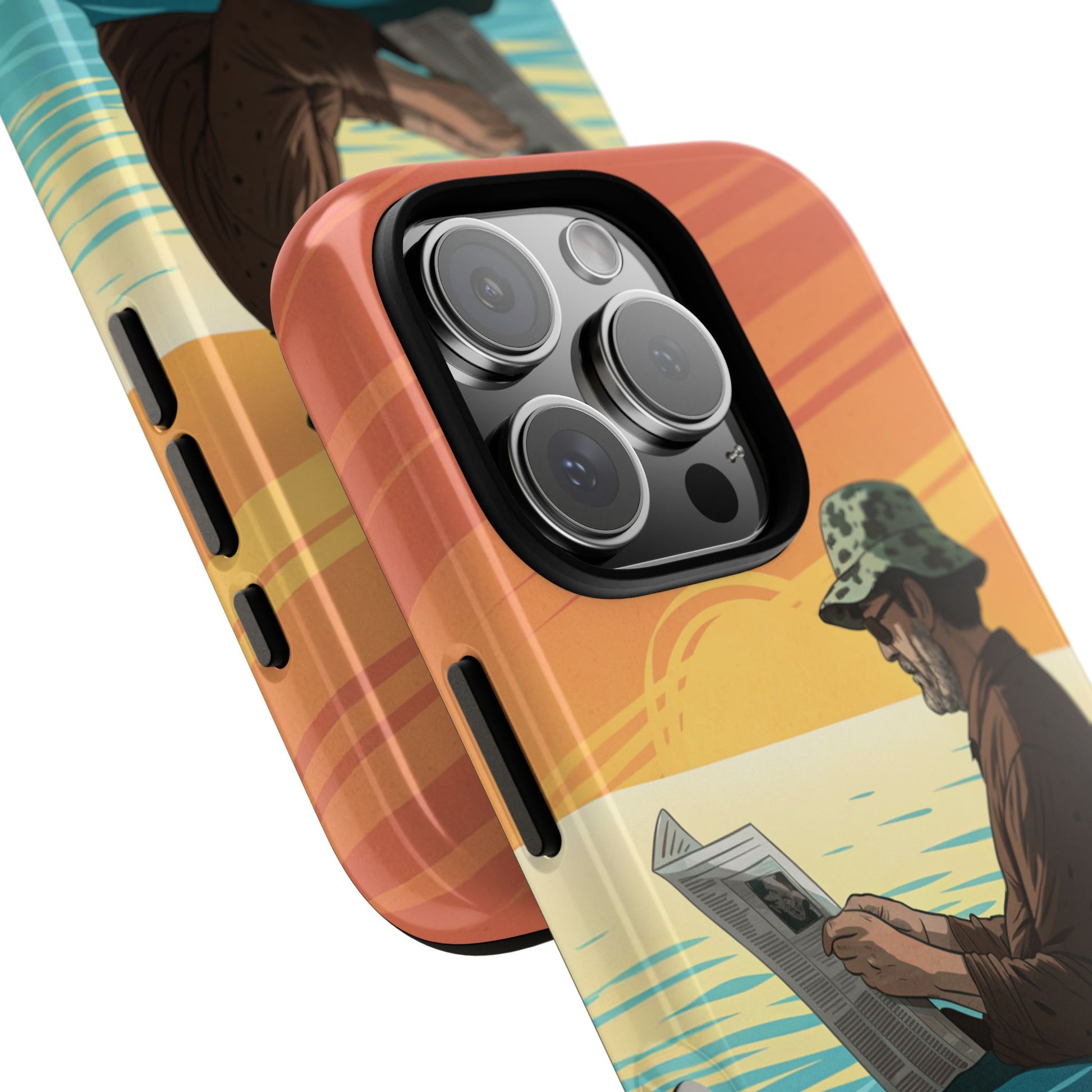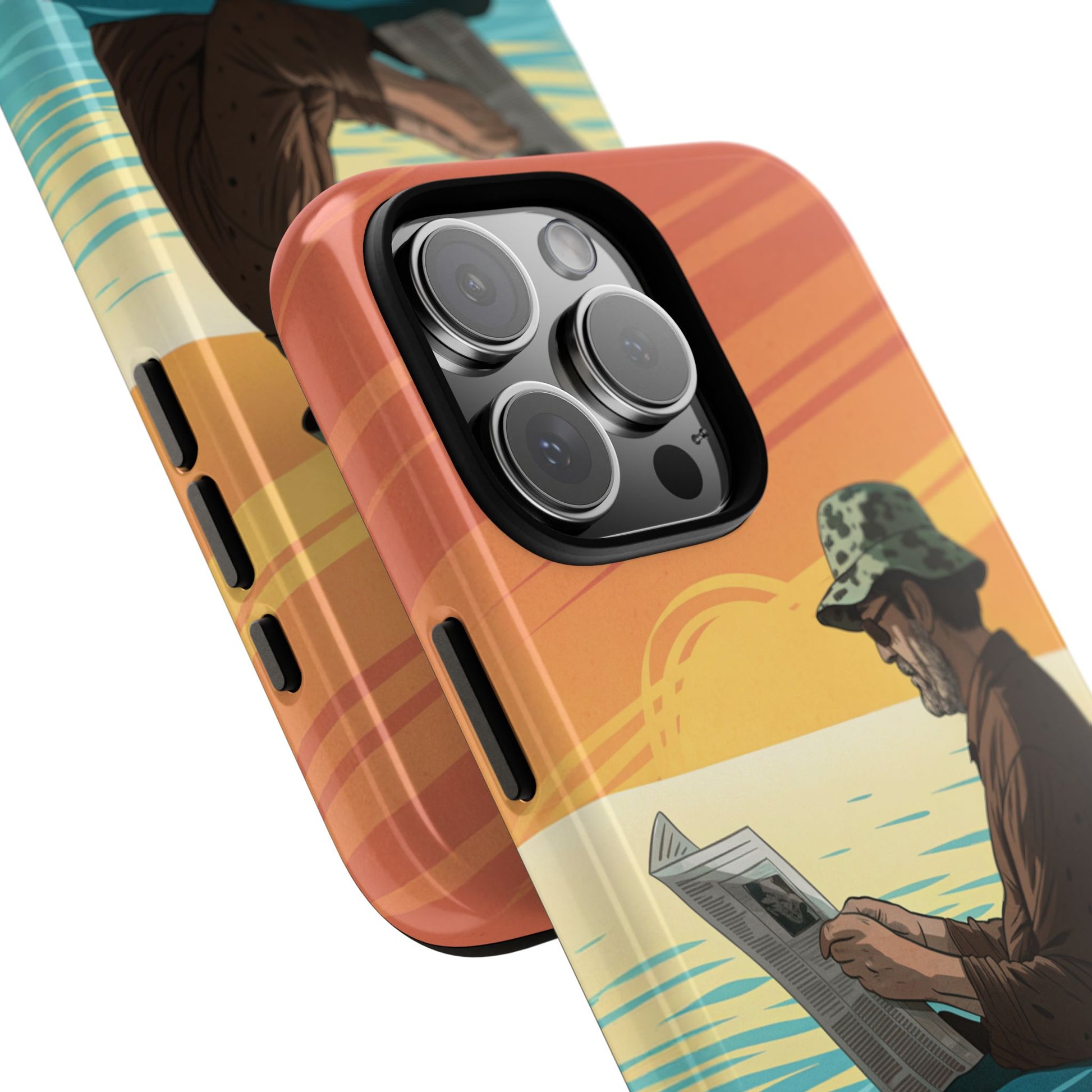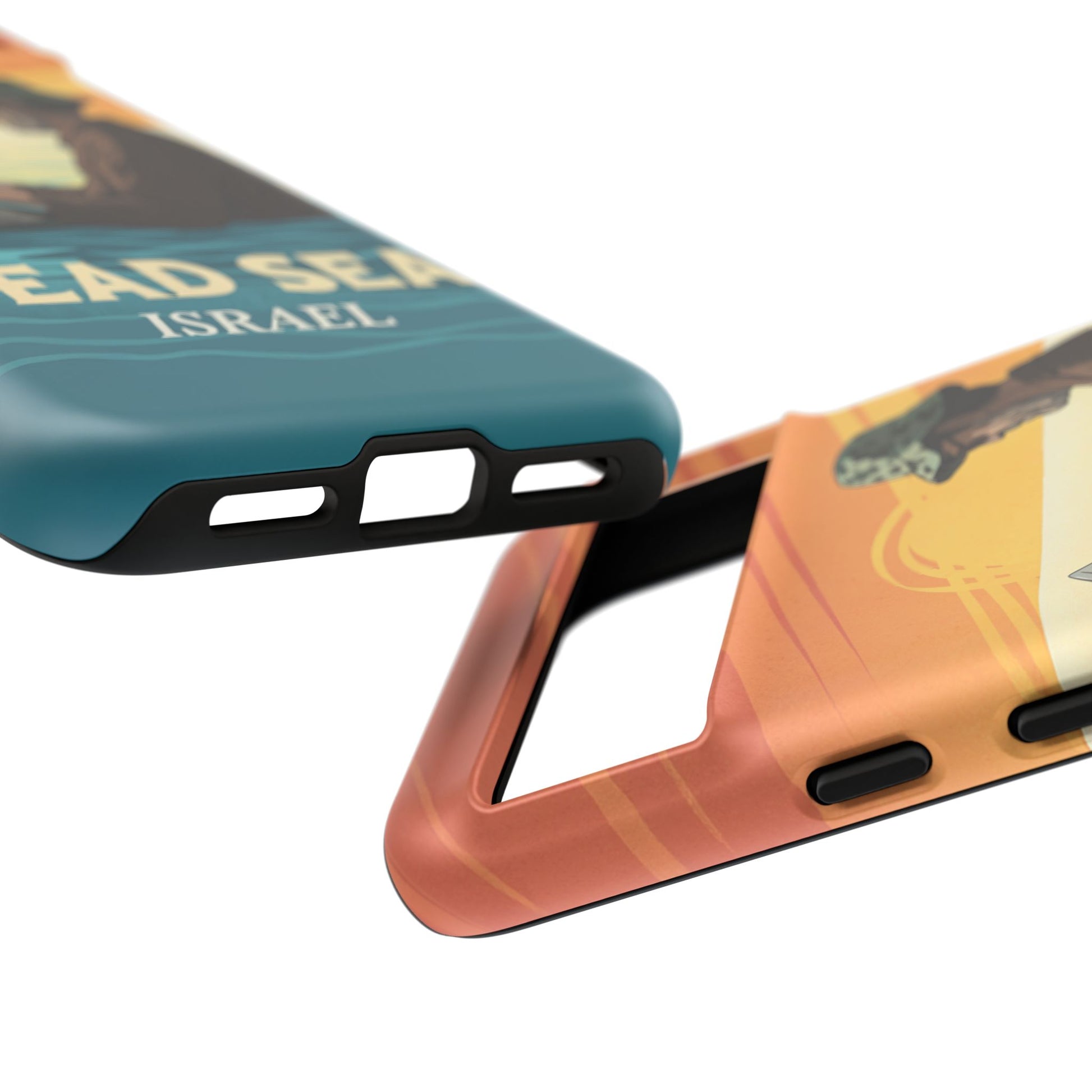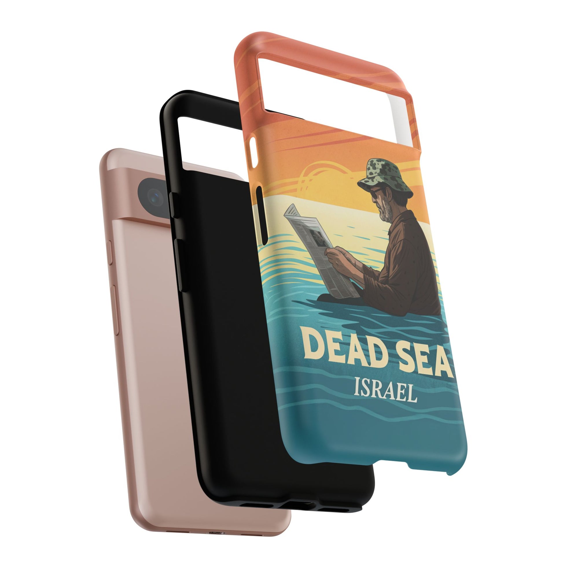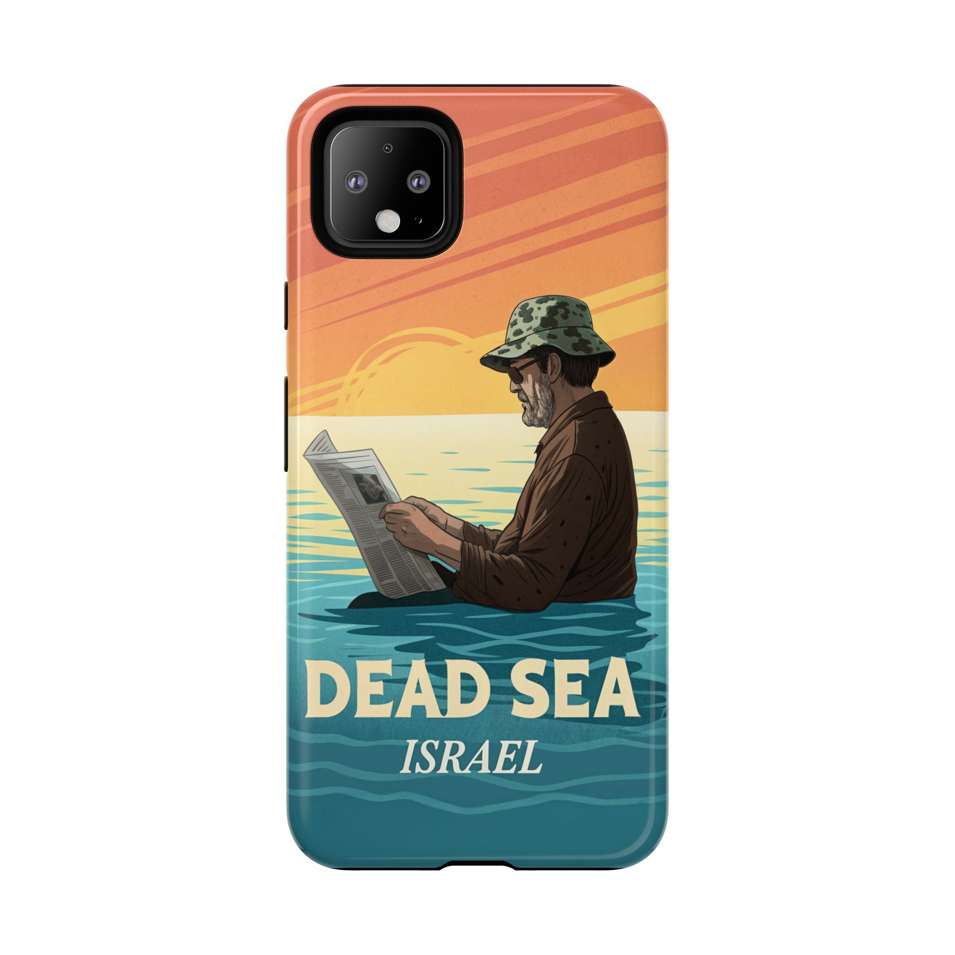 Ta med deg den rolige og ikoniske stemningen fra Dødehavet med dette kunstneriske mobildekselet. Designet viser en mann som sitter avslappet i det mineralrike vannet mens han leser avis – helt vektløs slik bare Dødehavet kan tilby. Den varme himmelen i oransje og gyldne toner gir motivet en vakker solnedgangsfølelse, mens de rolige blå bølgene skaper en perfekt kontrast. Et motiv som kombinerer humor, ro og tidløs reiselivssjarm fra Israel.