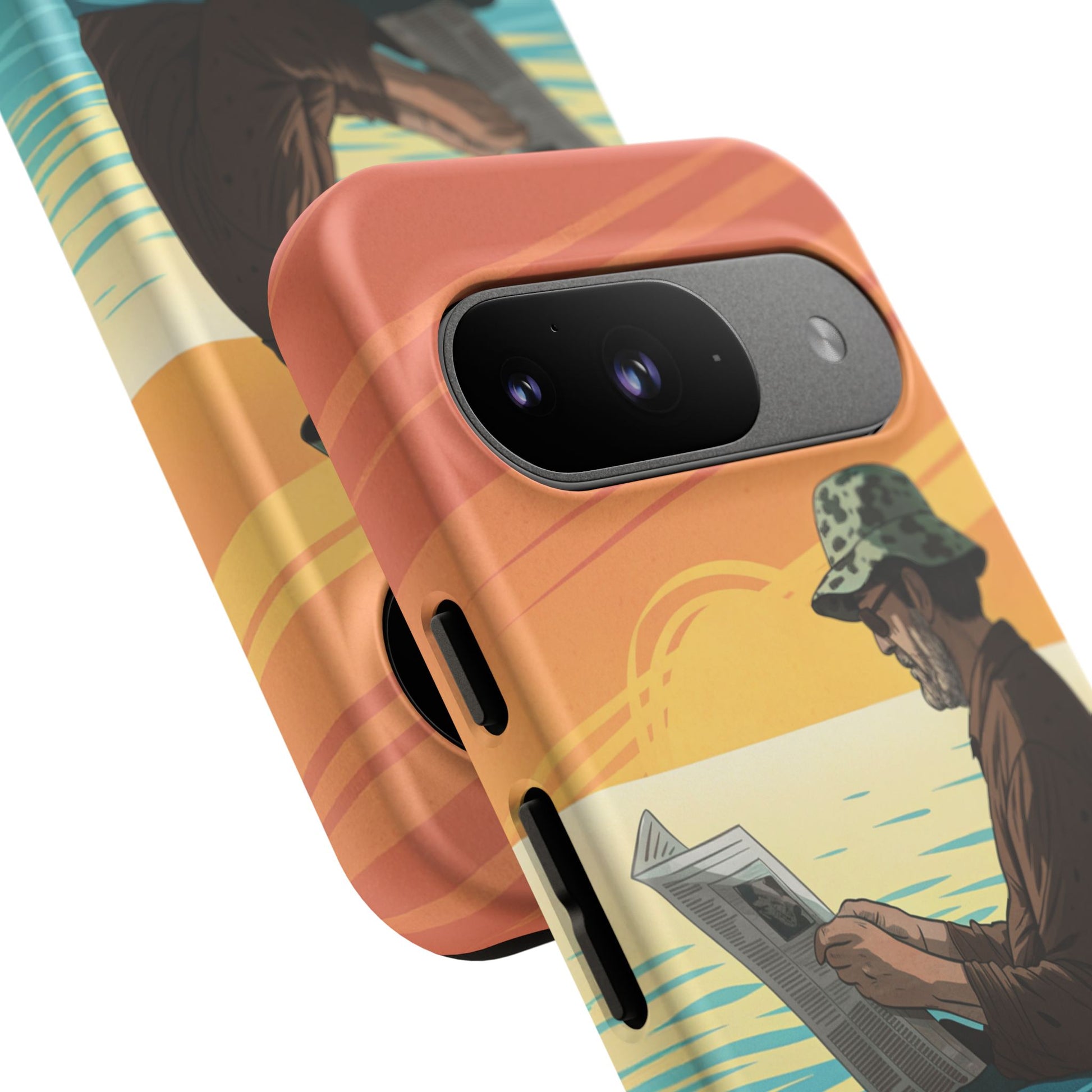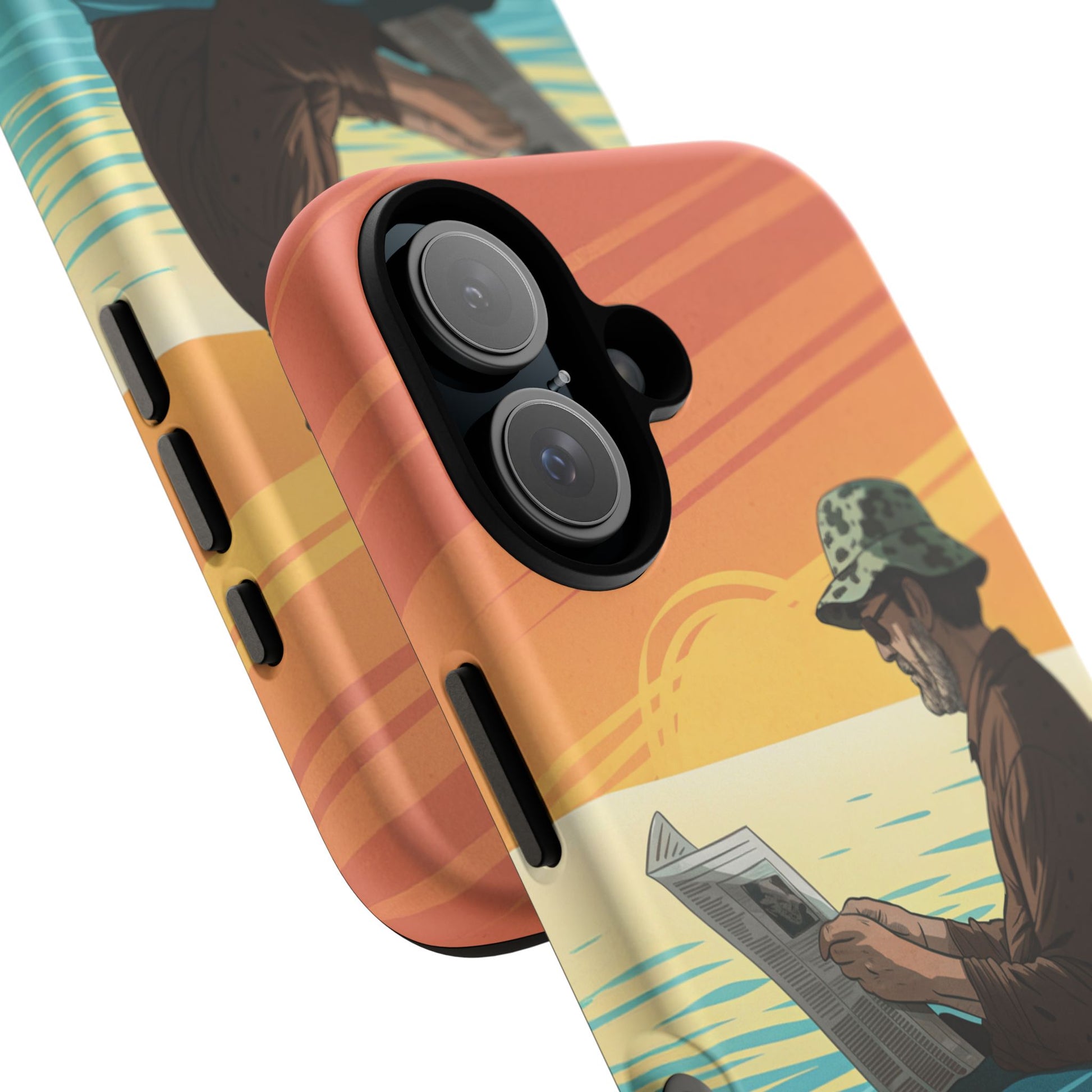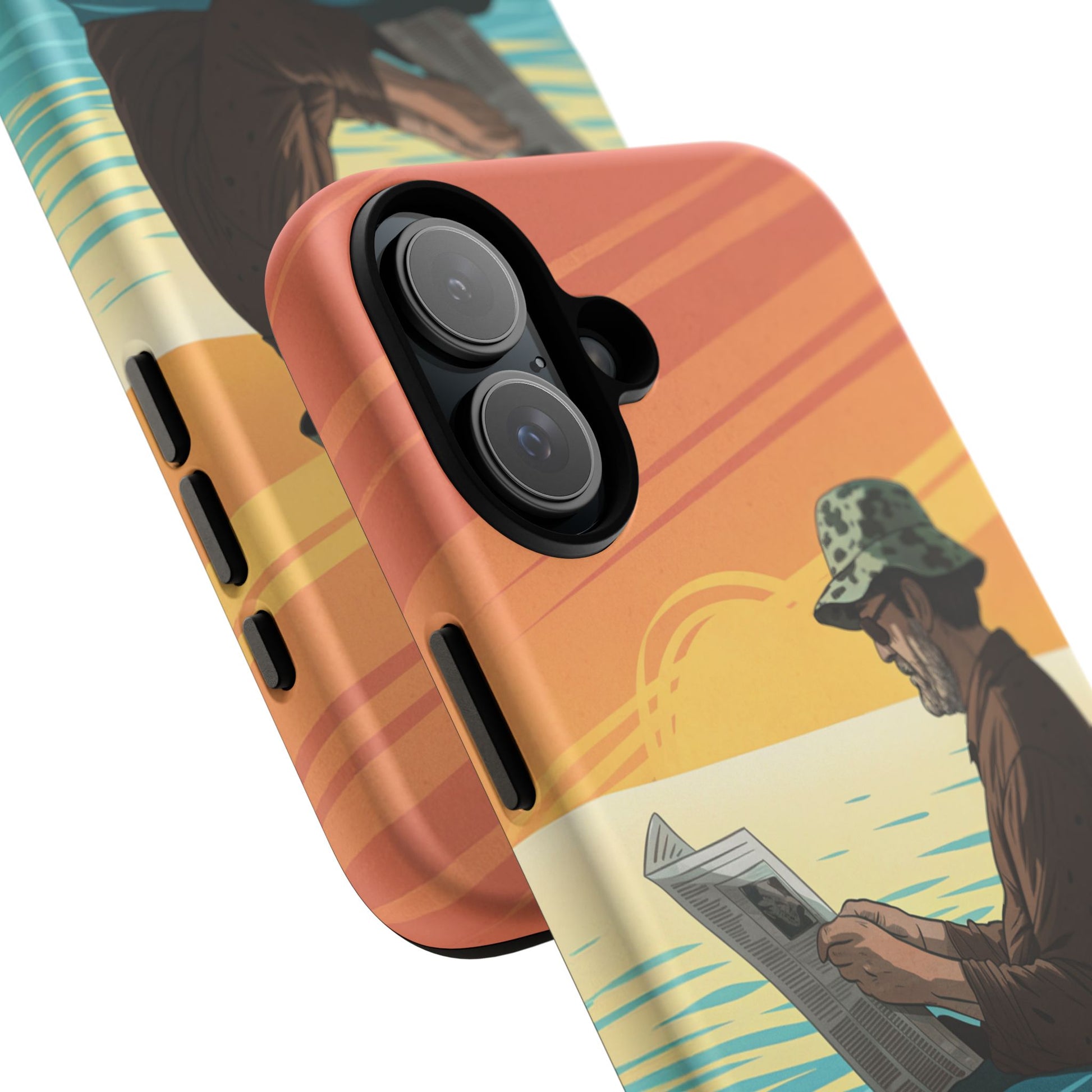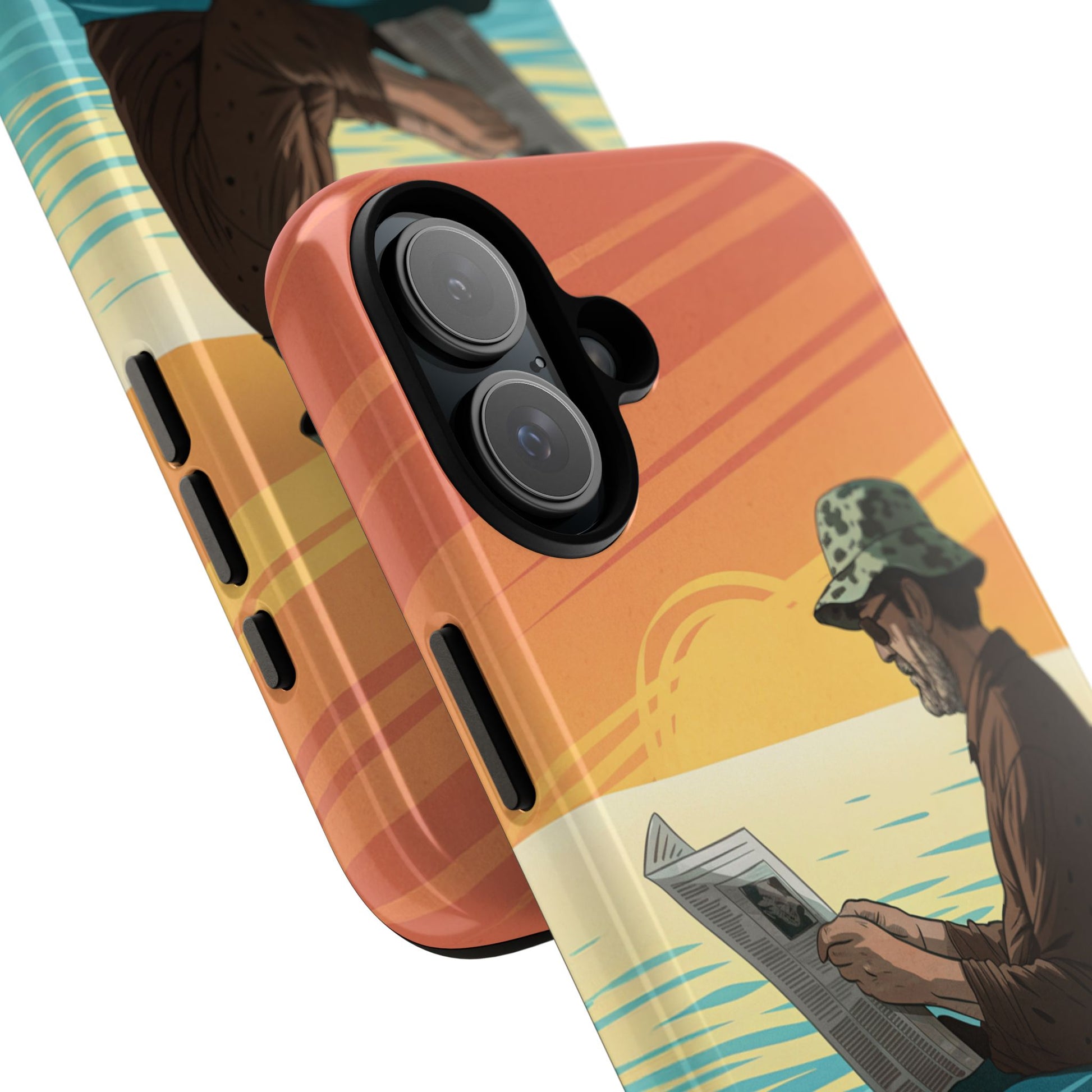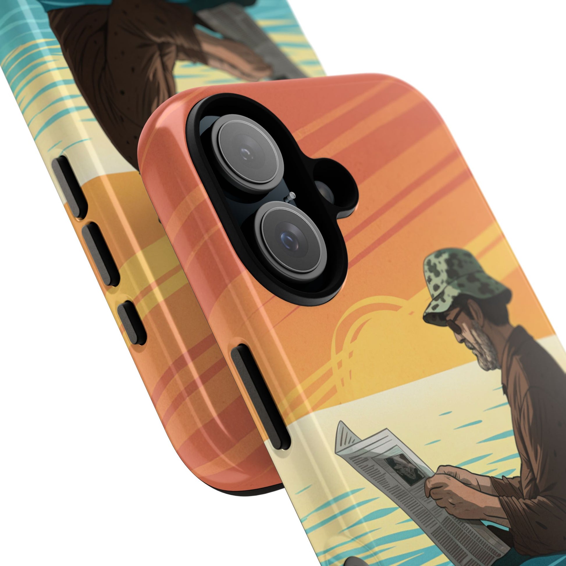 Ta med deg den rolige og ikoniske stemningen fra Dødehavet med dette kunstneriske mobildekselet. Designet viser en mann som sitter avslappet i det mineralrike vannet mens han leser avis – helt vektløs slik bare Dødehavet kan tilby. Den varme himmelen i oransje og gyldne toner gir motivet en vakker solnedgangsfølelse, mens de rolige blå bølgene skaper en perfekt kontrast. Et motiv som kombinerer humor, ro og tidløs reiselivssjarm fra Israel.