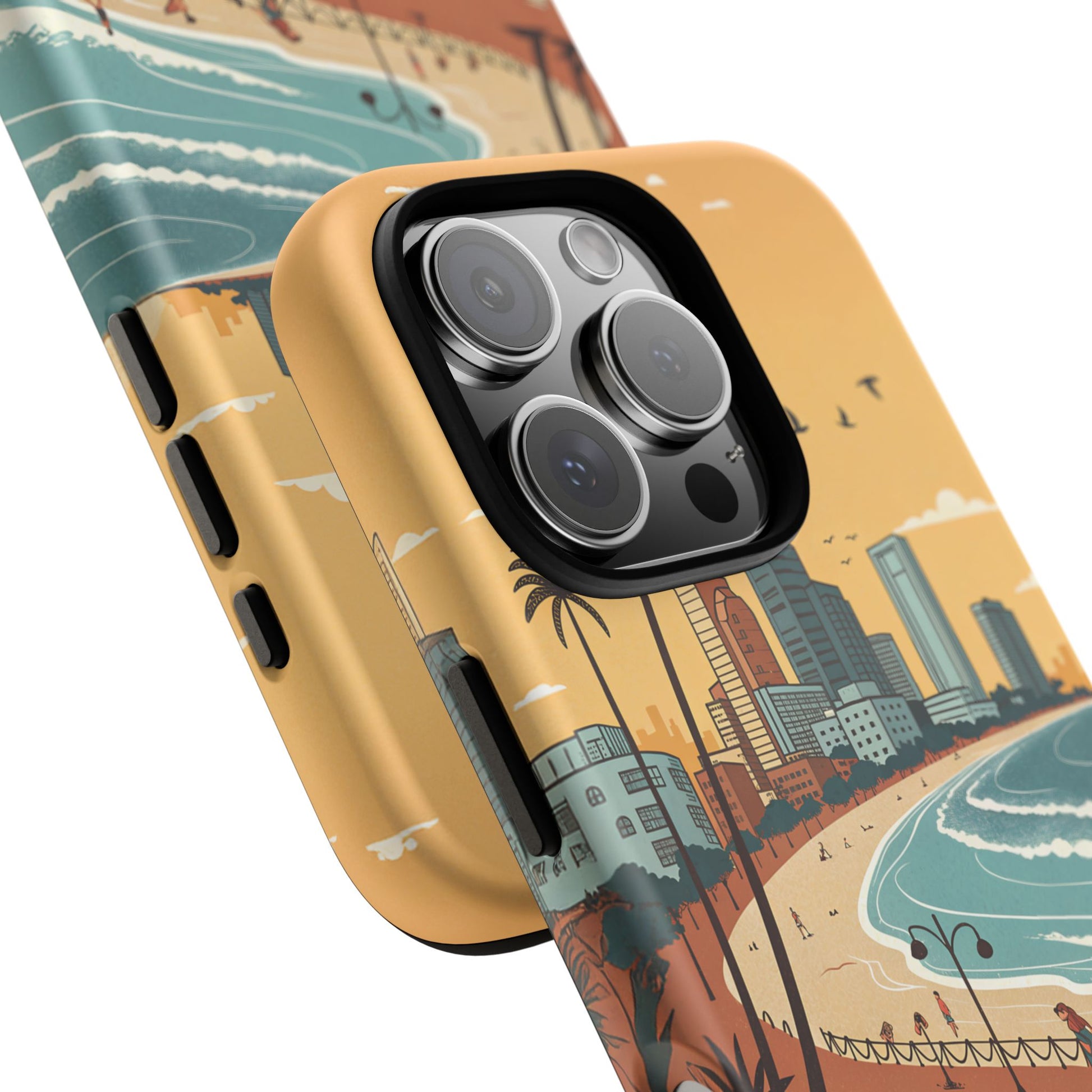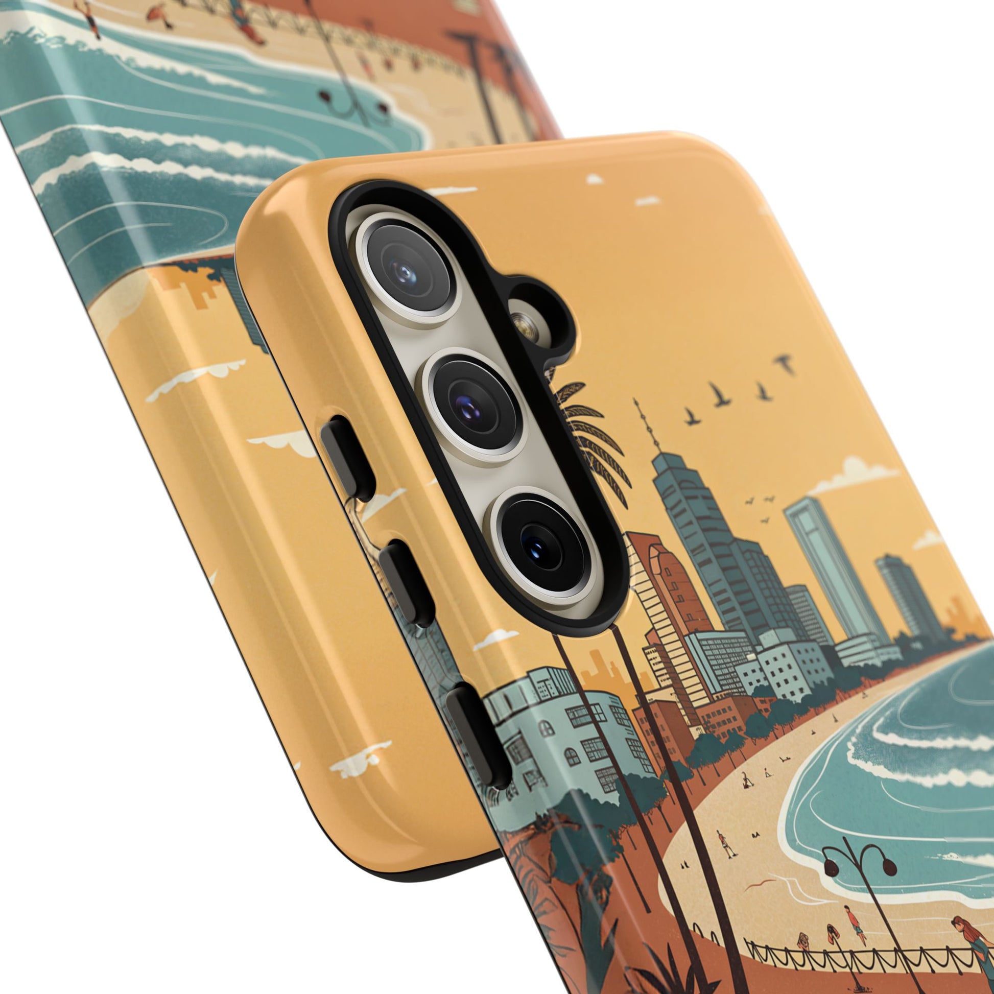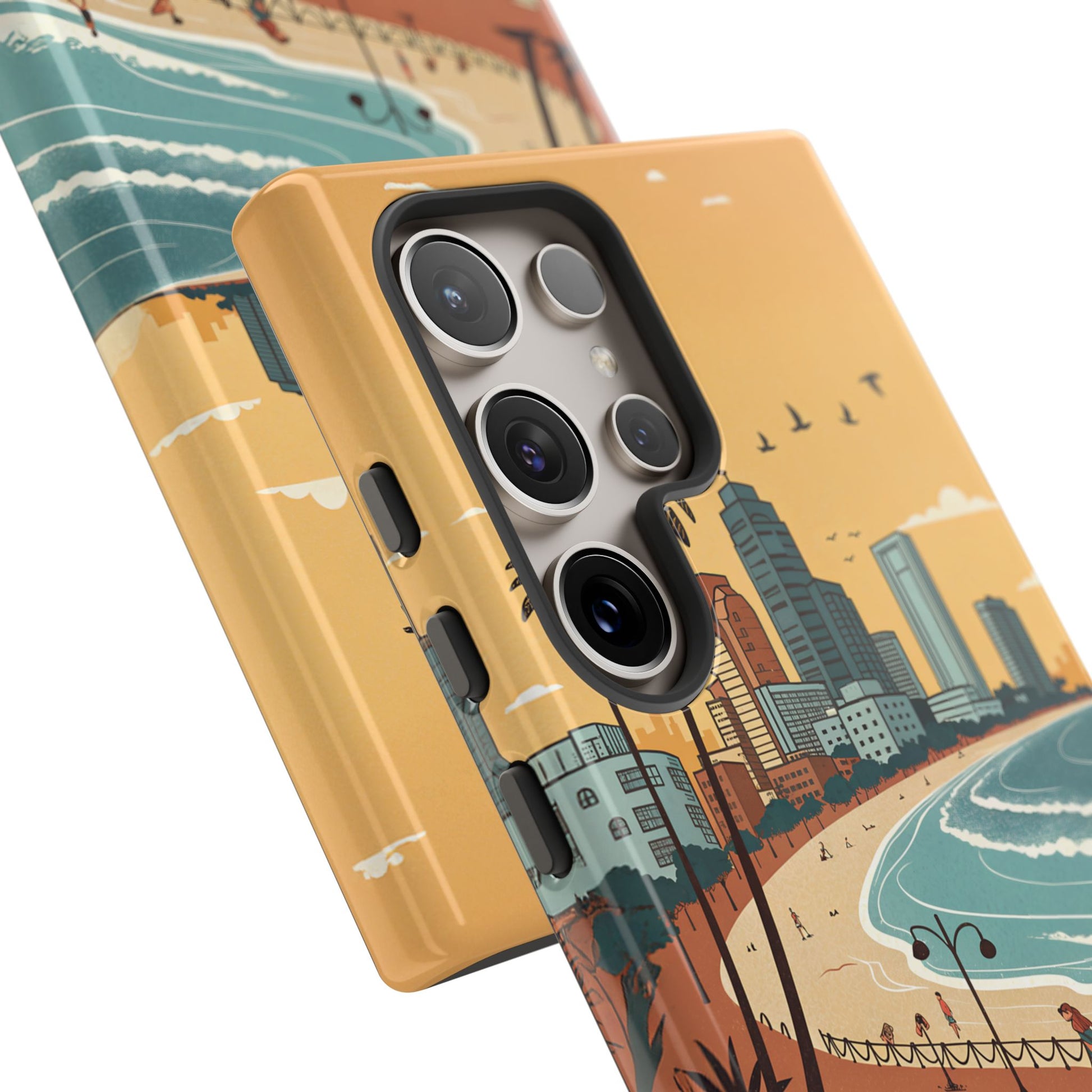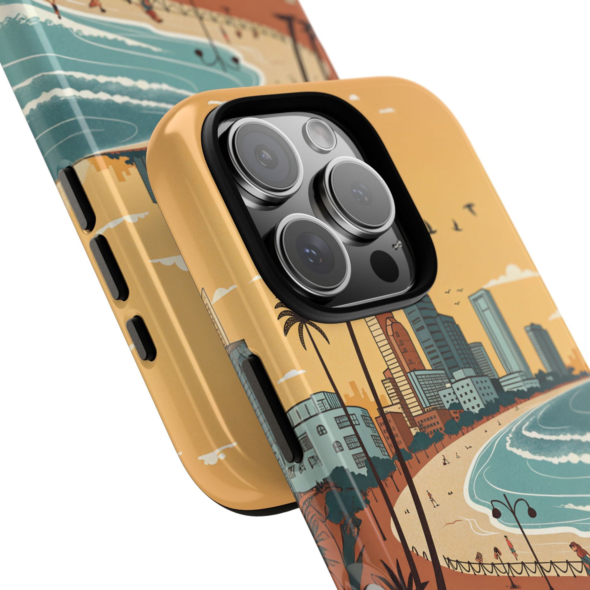 Ta med energien, varmen og livsgleden fra Israels middelhavskyst rett i hånden din med dette retro-inspirerte Tel Aviv-mobildekselet. Designet viser den ikoniske strandlinjen, moderne skyline, palmer og bølger i et varmt og kunstnerisk uttrykk. De myke oransje og blåtonene gir en nostalgisk, solfylt plakatstil som fanger essensen av Tel Aviv – frihet, kreativitet og pulserende byliv.